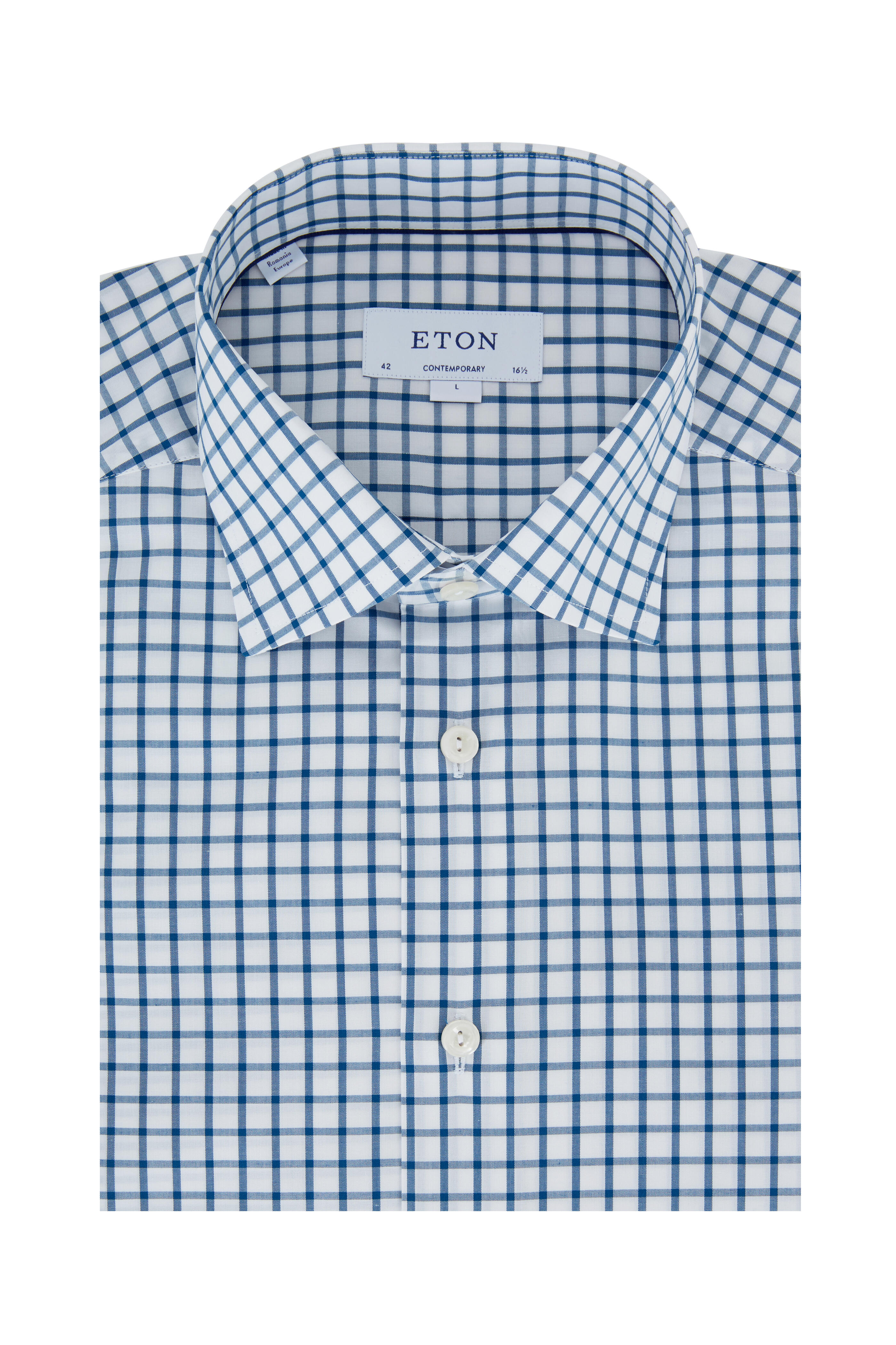 Petro Blue Tatersall Contemporary Fit Dress Shirt