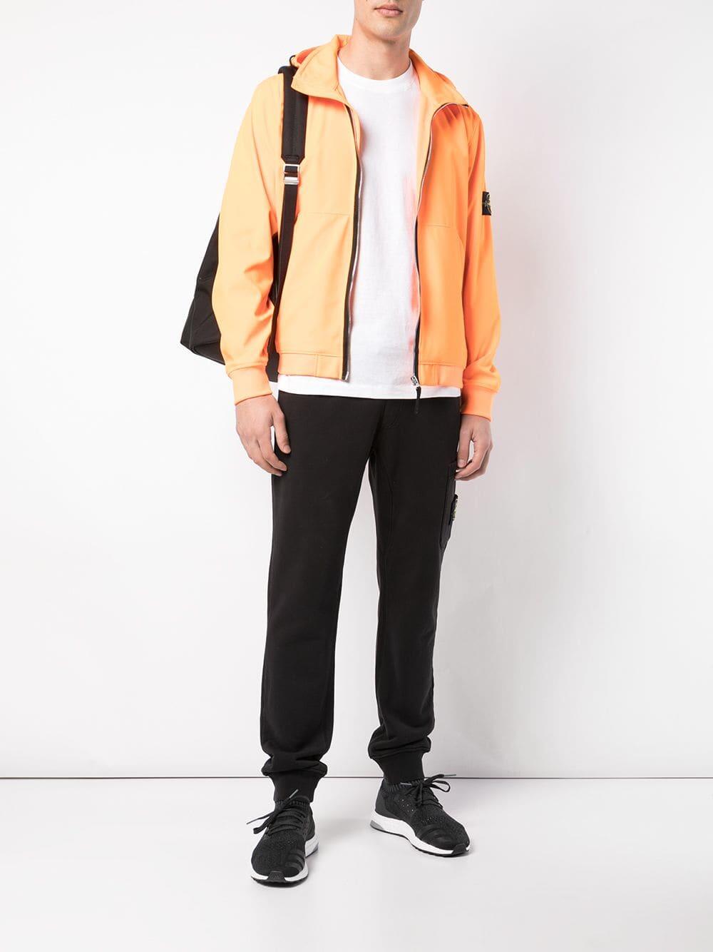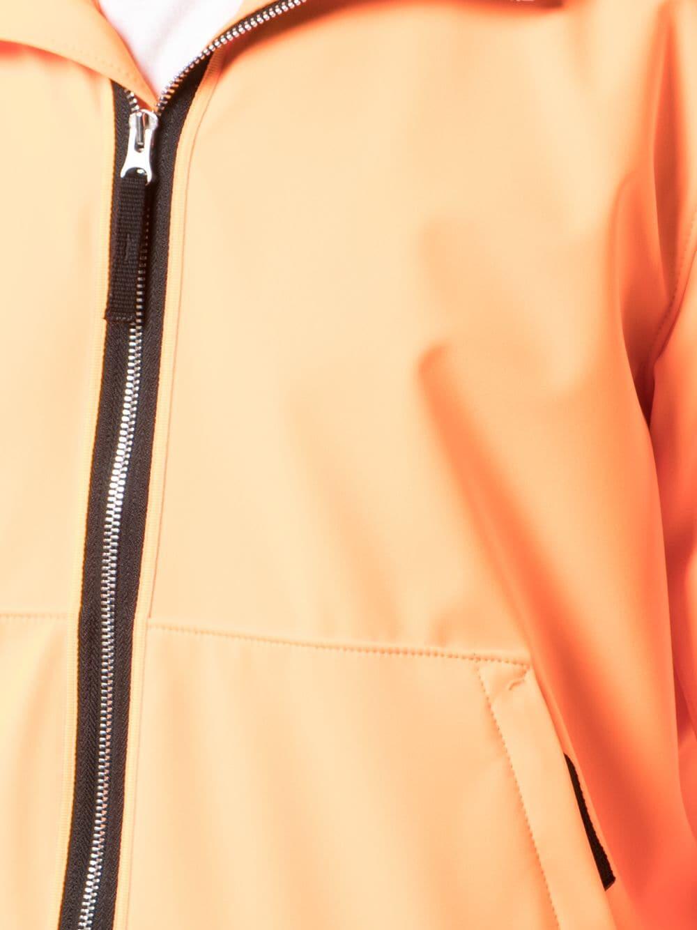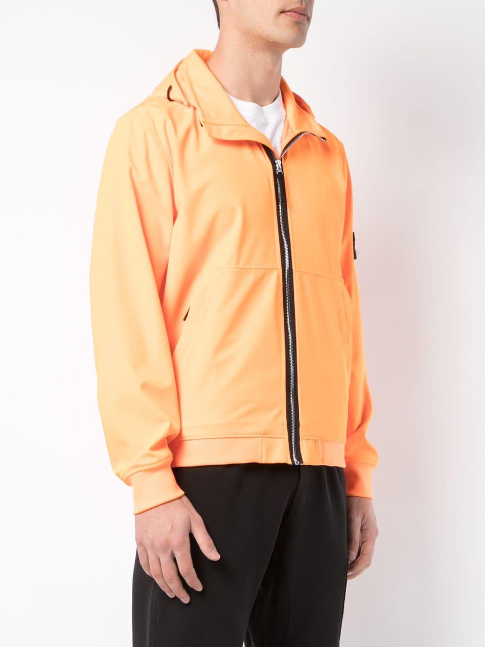 Adjustable hood. Front zip closure. Side slip pockets. Elastic trim. Imported. 94% polyester, 6% elastane. Machine wash.
