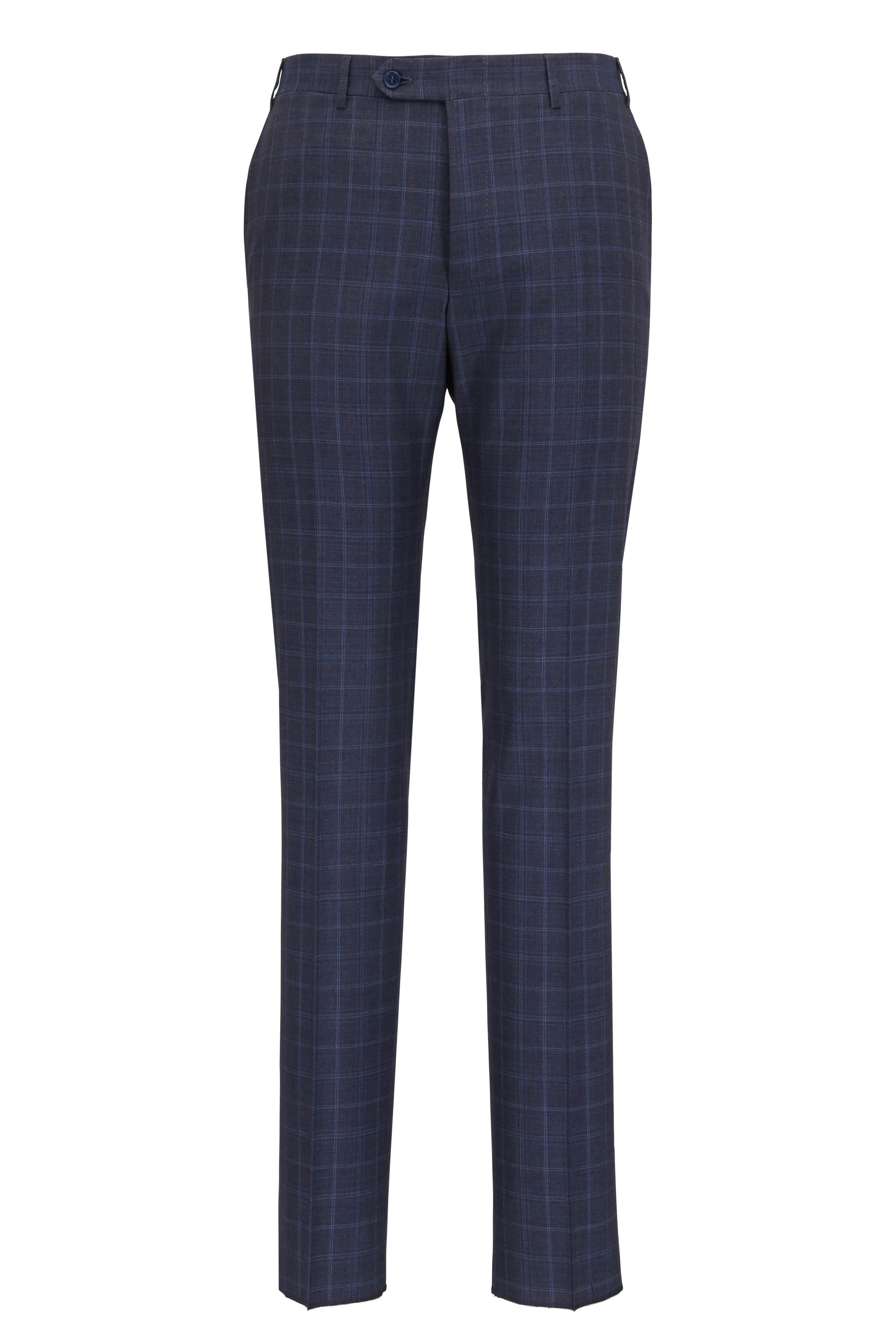 Made in Italy. Jacket: Fully lined. Notched lapels. Two button front closure. Chest welt pocket, lower flap pockets. Double vent. Pants: Side slash pockets, ticket pocket, back besom pockets. Unfinished hem. 100% wool. Dry clean.