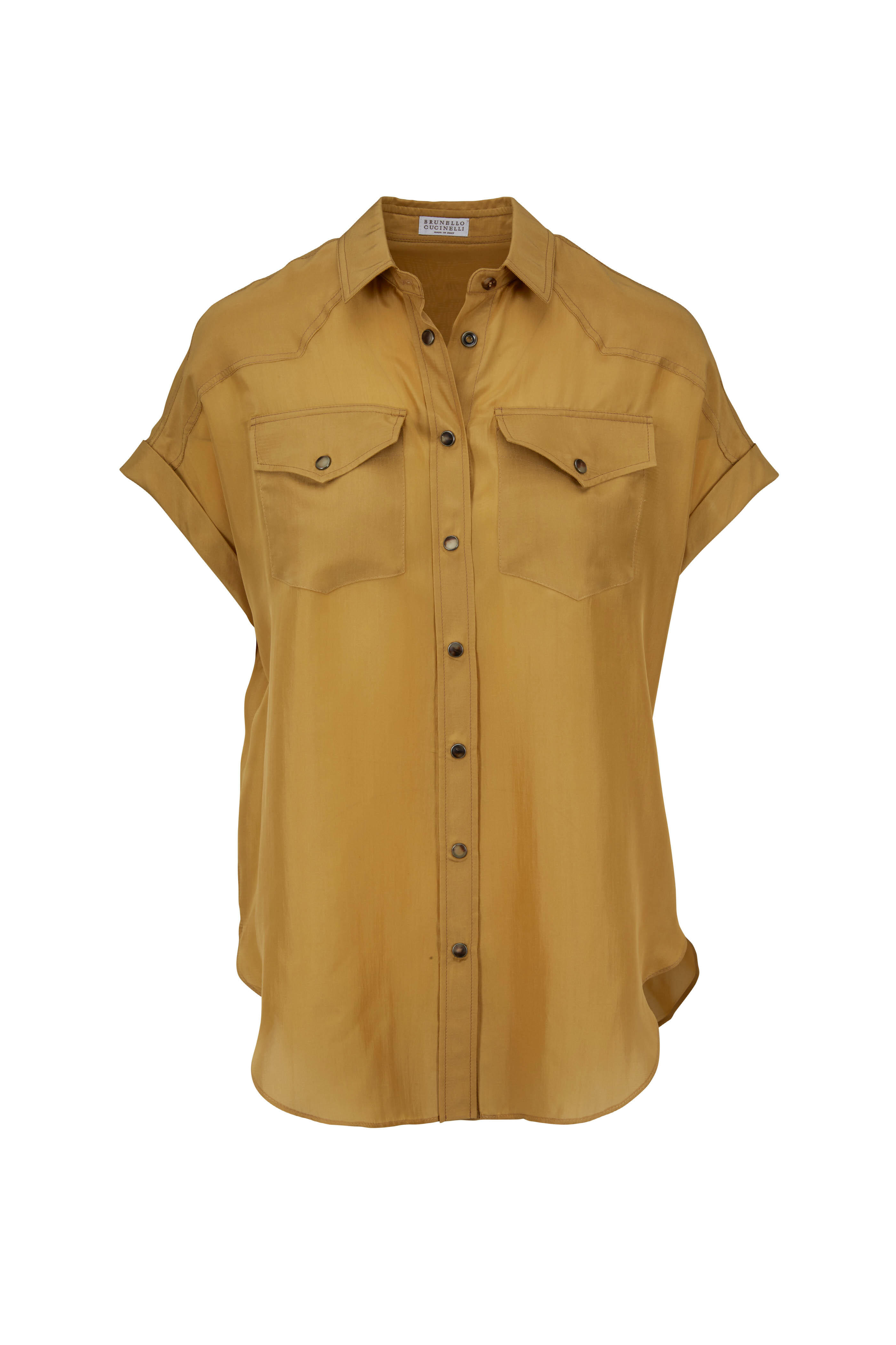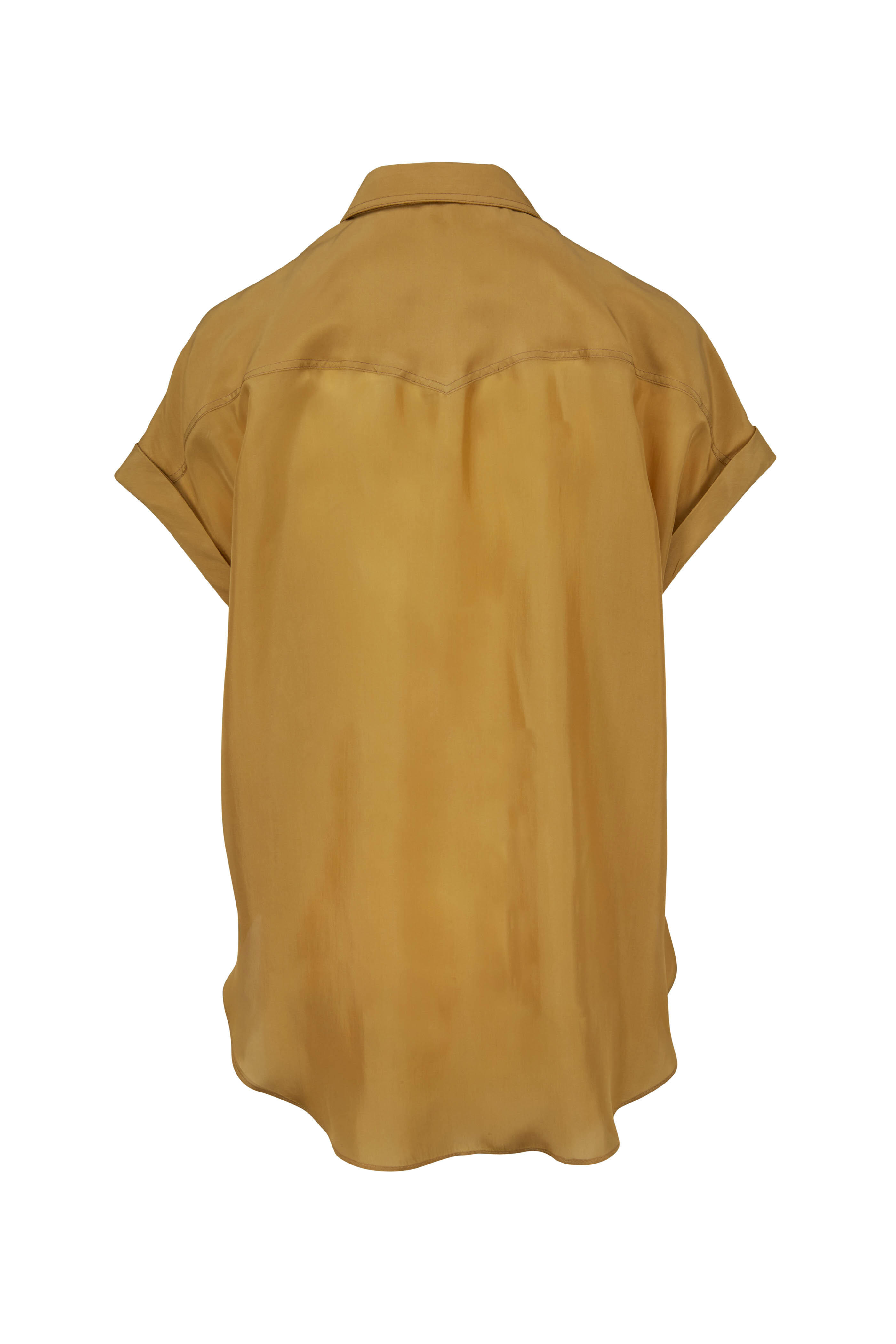 Marigold Silk Cuffed Short Sleeve Western Blouse