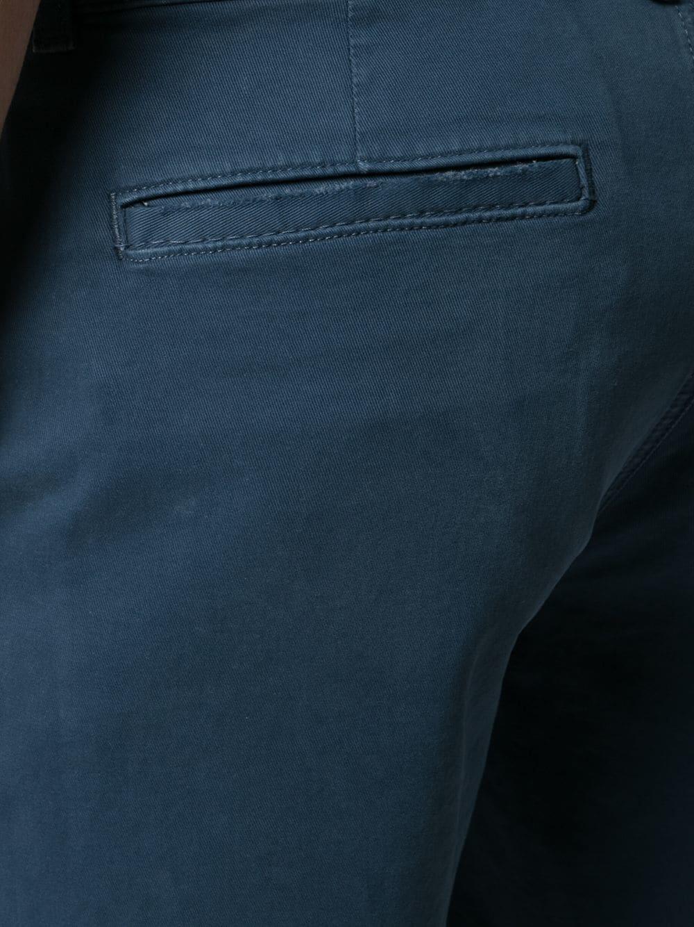 Banded waist; belt loops. Front slip pockets; side seam pocket; one back besom pocket; one back welt pocket. Tonal stitching. Imported. 9" inseam. 87% cotton, 11% elastomultiester, 2% elastane. Machine wash.