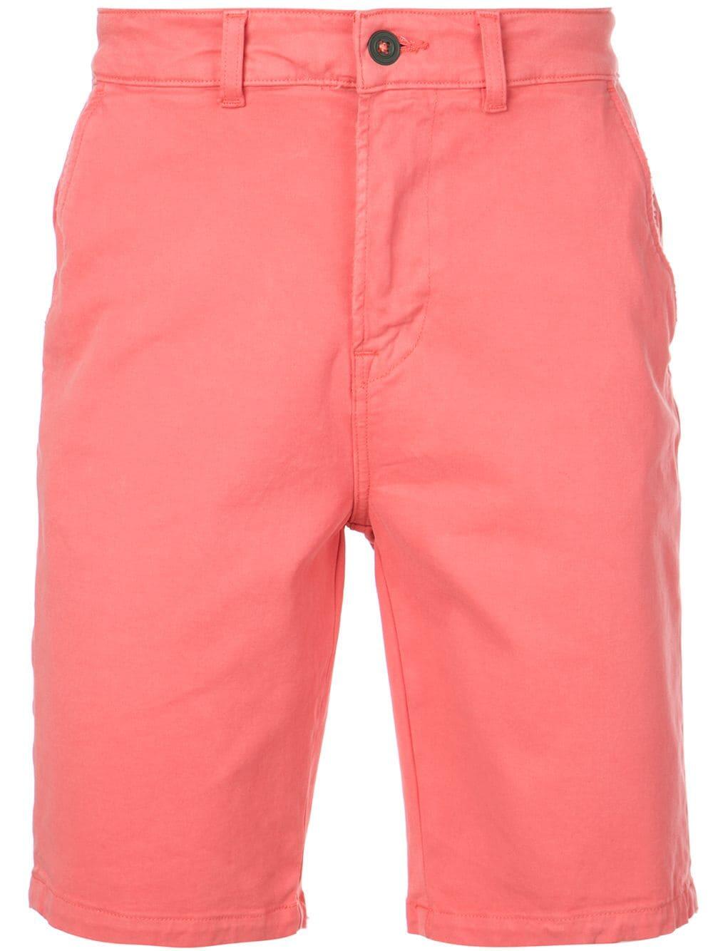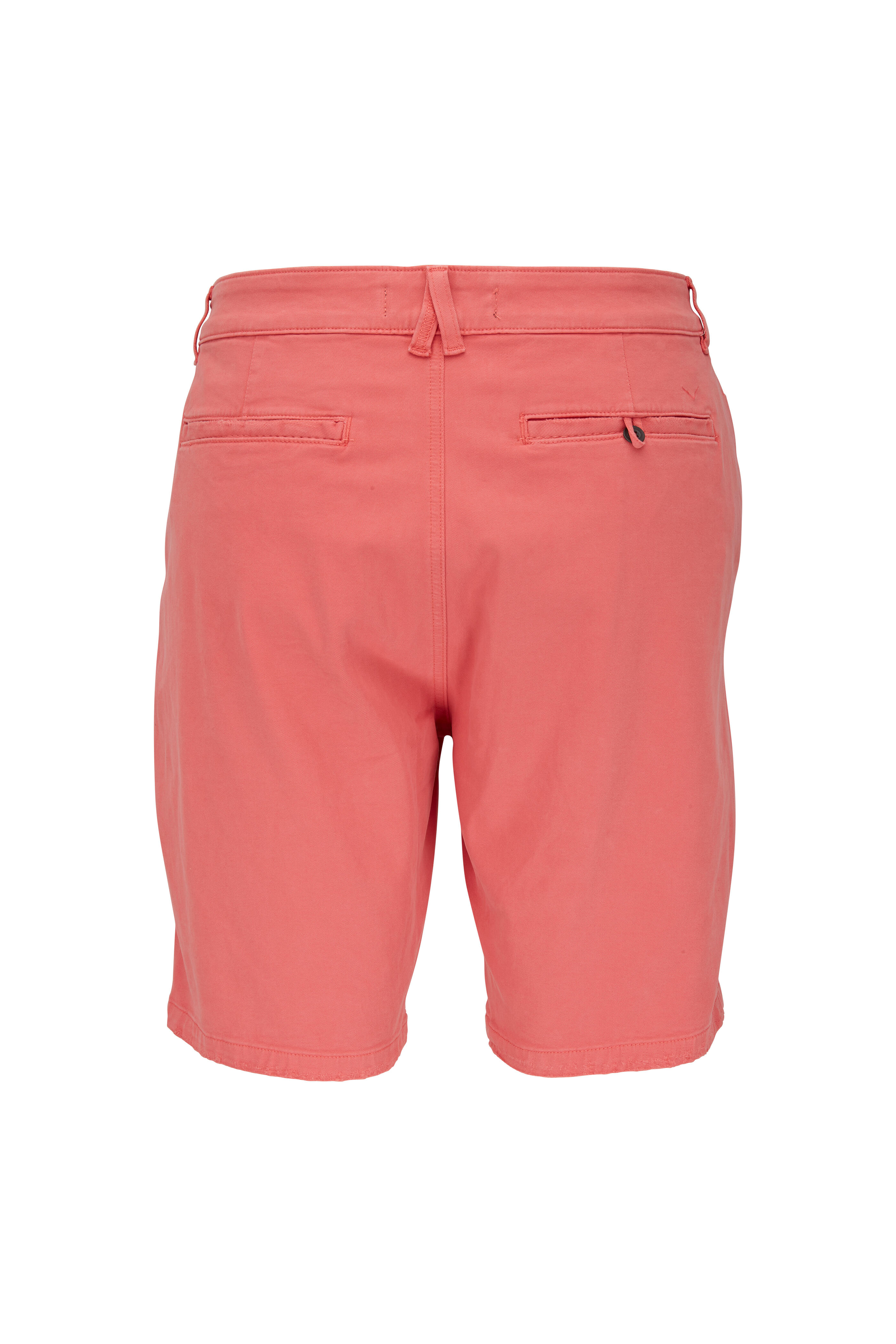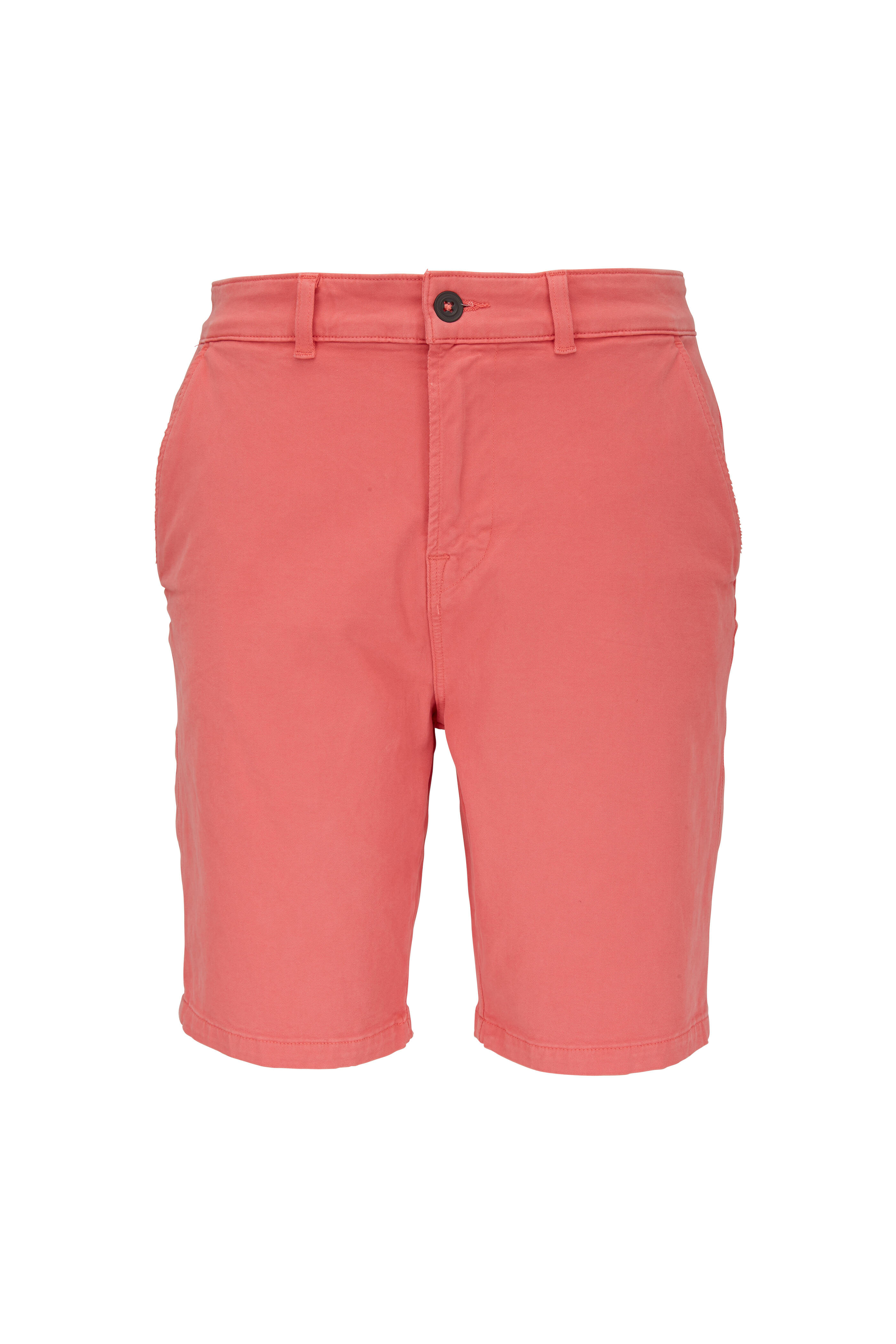 Banded waist; belt loops. Front slip pockets; side seam pocket; one back besom pocket; one back welt pocket. Tonal stitching. Imported. 9" inseam. 87% cotton, 11% elastomultiester, 2% elastane. Machine wash.