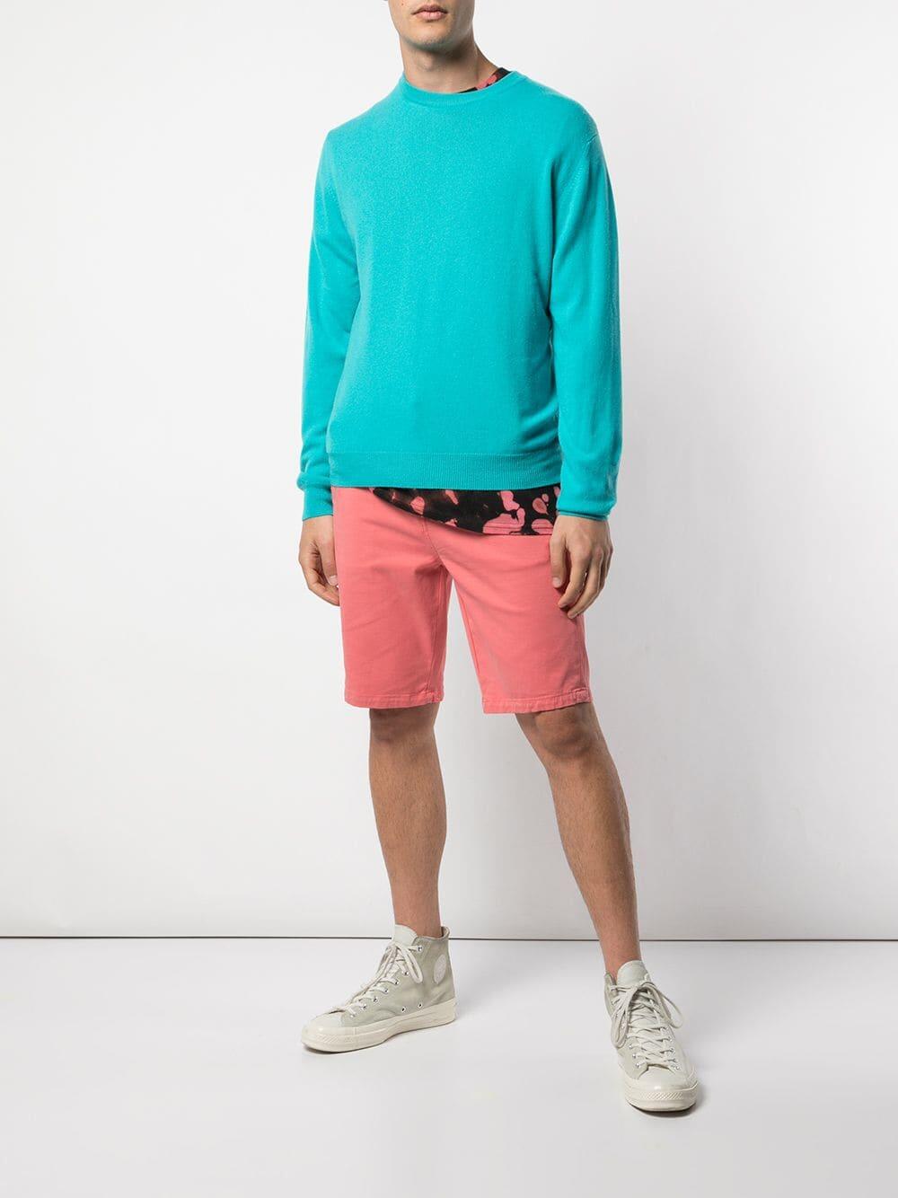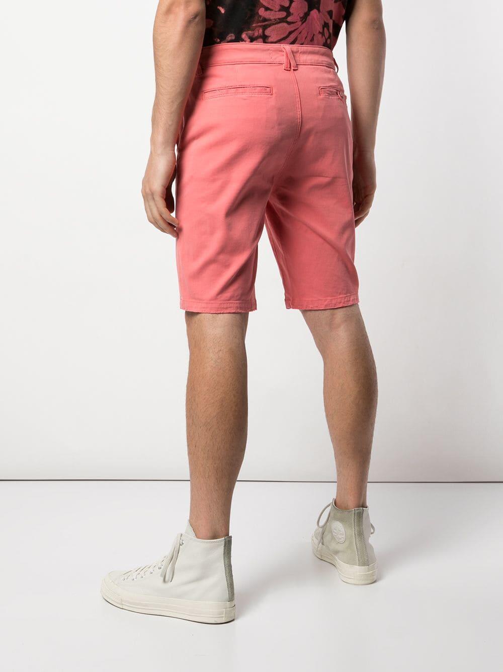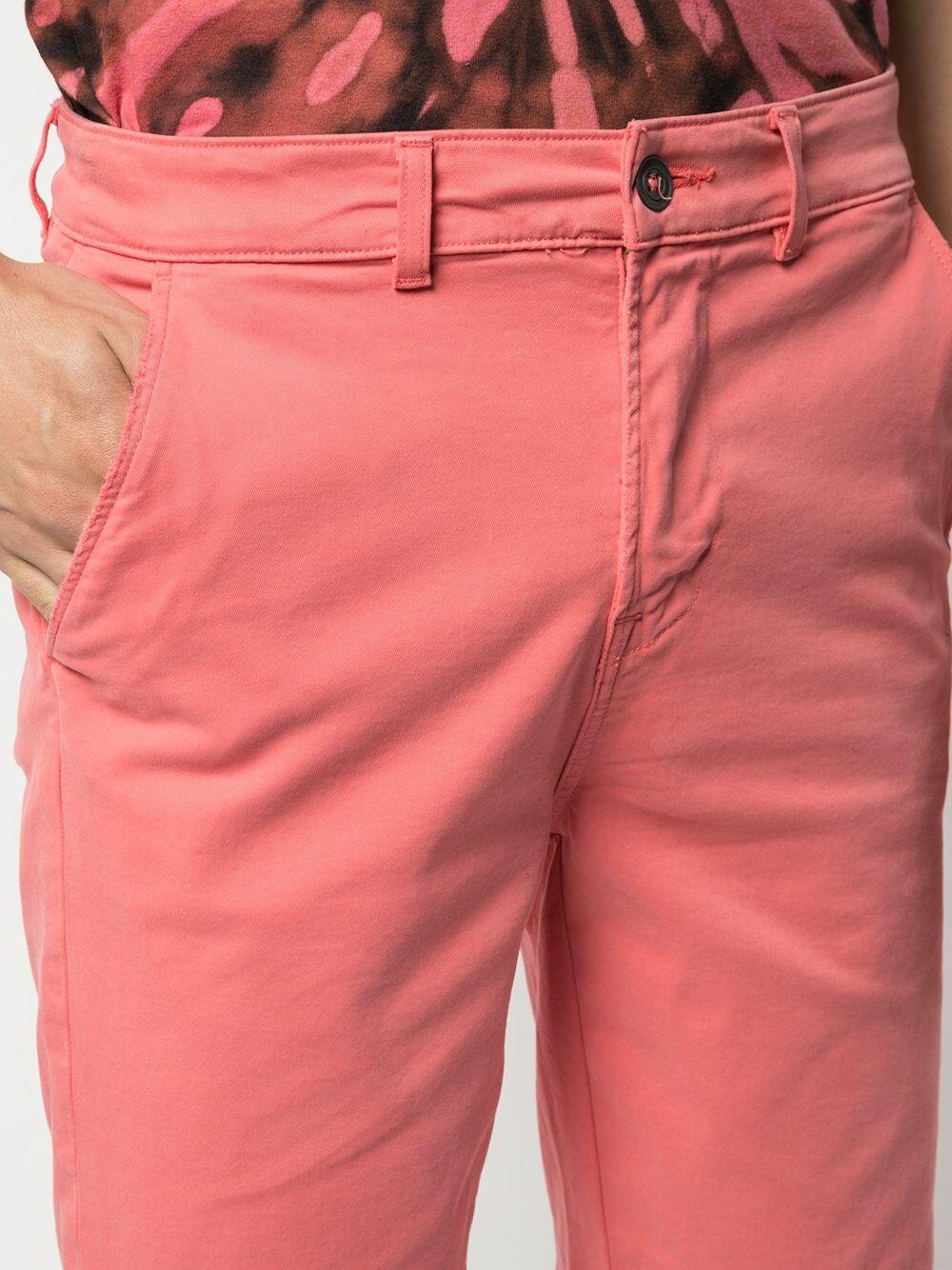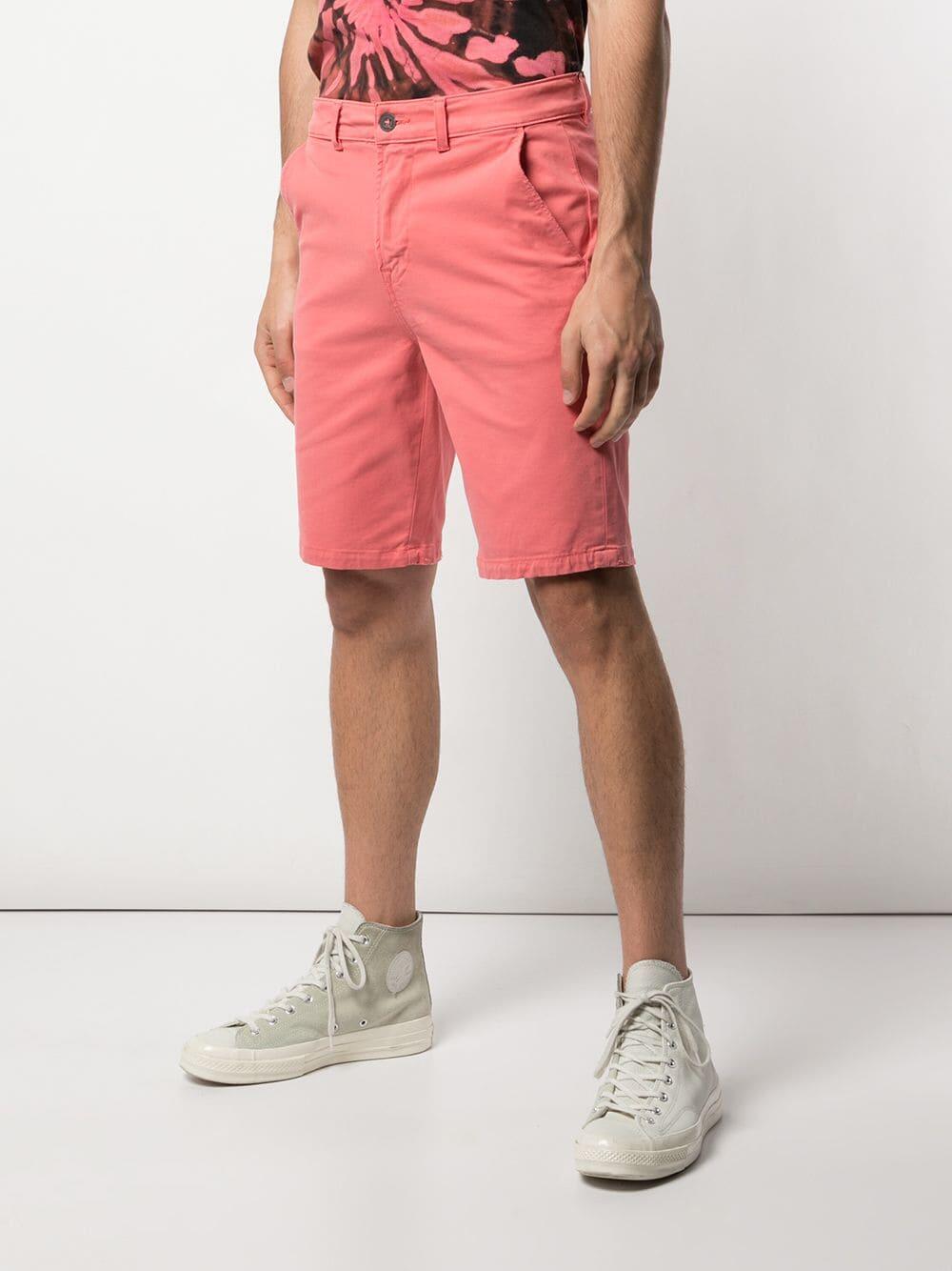 Banded waist; belt loops. Front slip pockets; side seam pocket; one back besom pocket; one back welt pocket. Tonal stitching. Imported. 9" inseam. 87% cotton, 11% elastomultiester, 2% elastane. Machine wash.