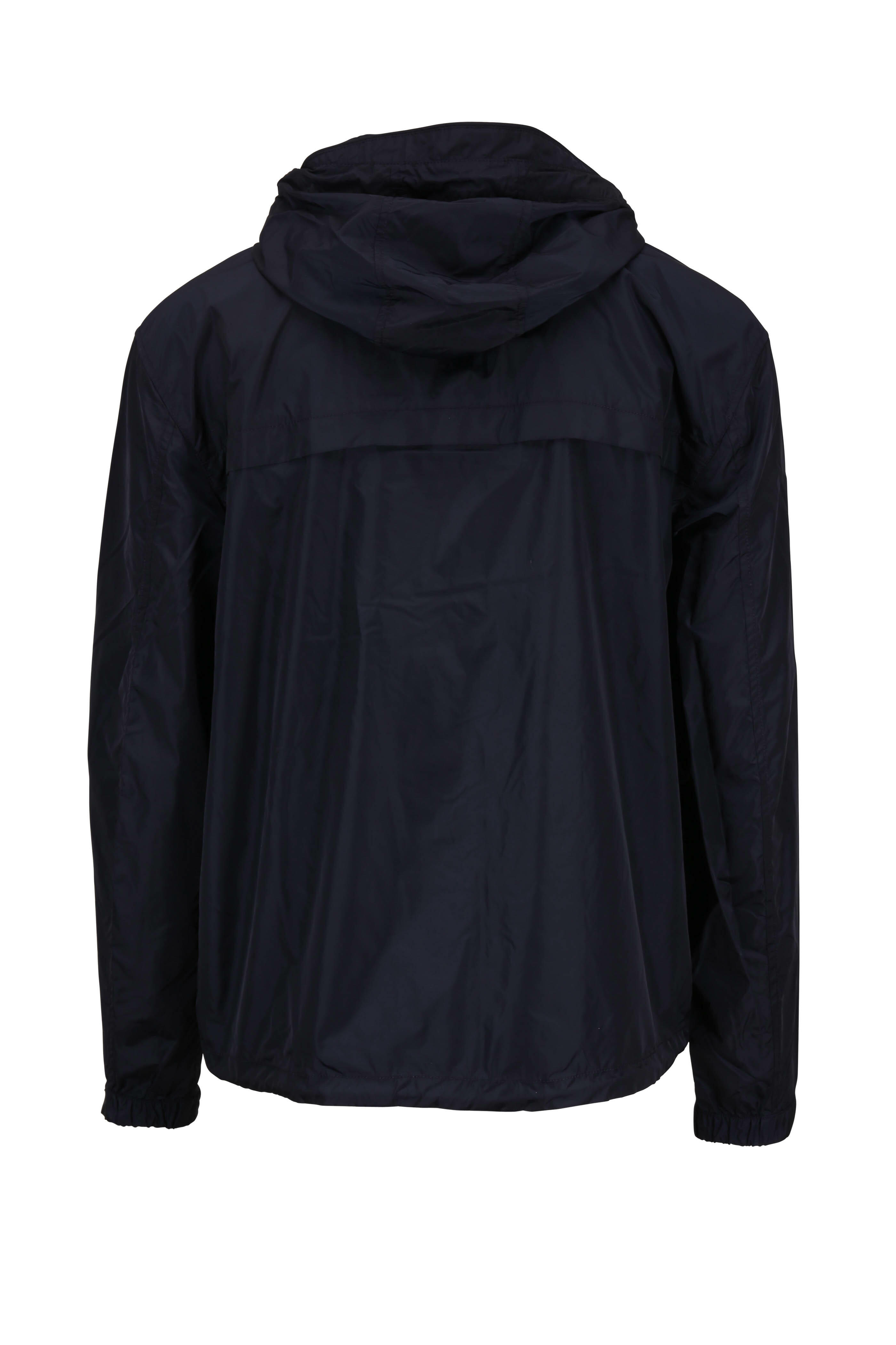 Anorak Navy Nylon Contrast Placket Hooded Jacket
