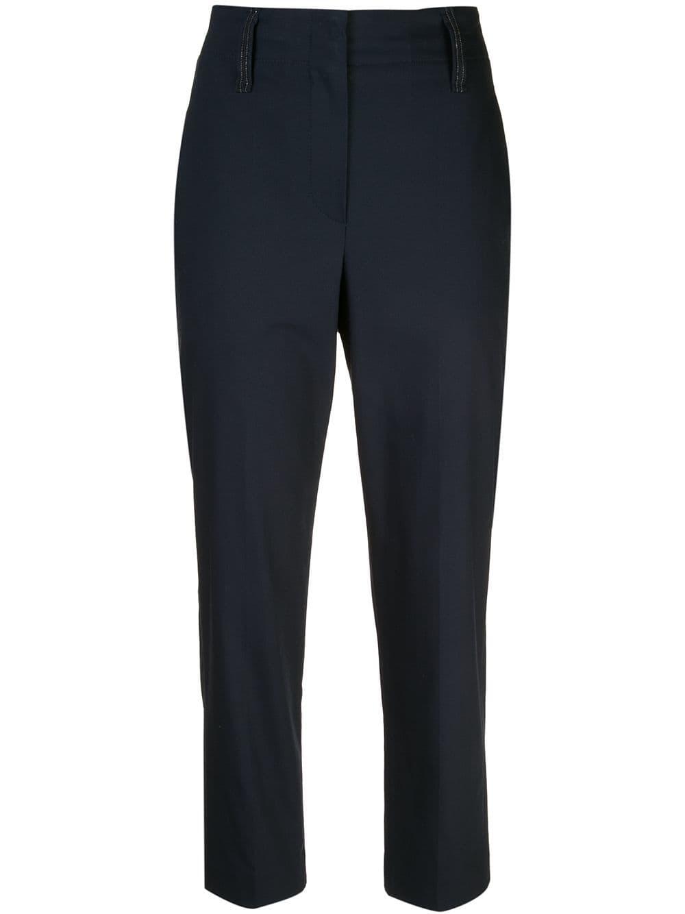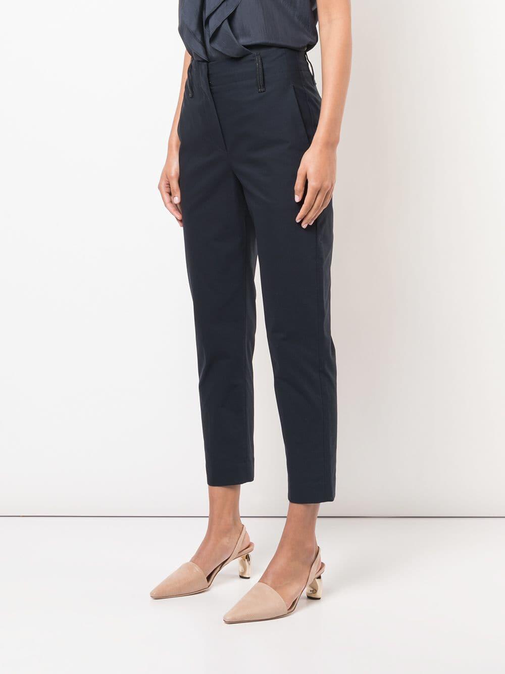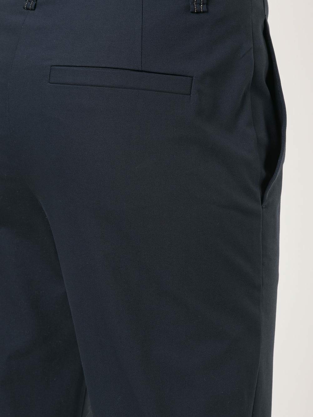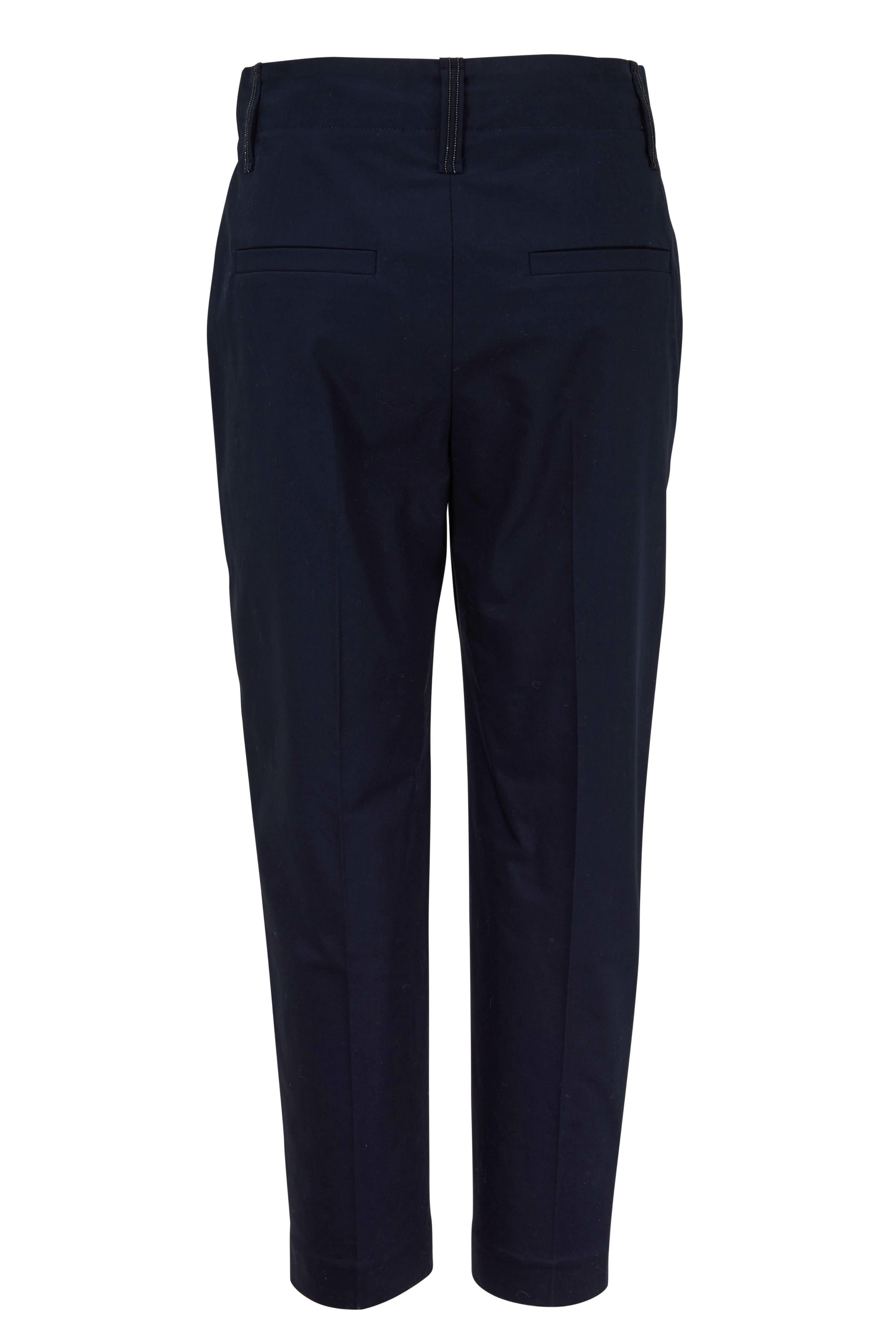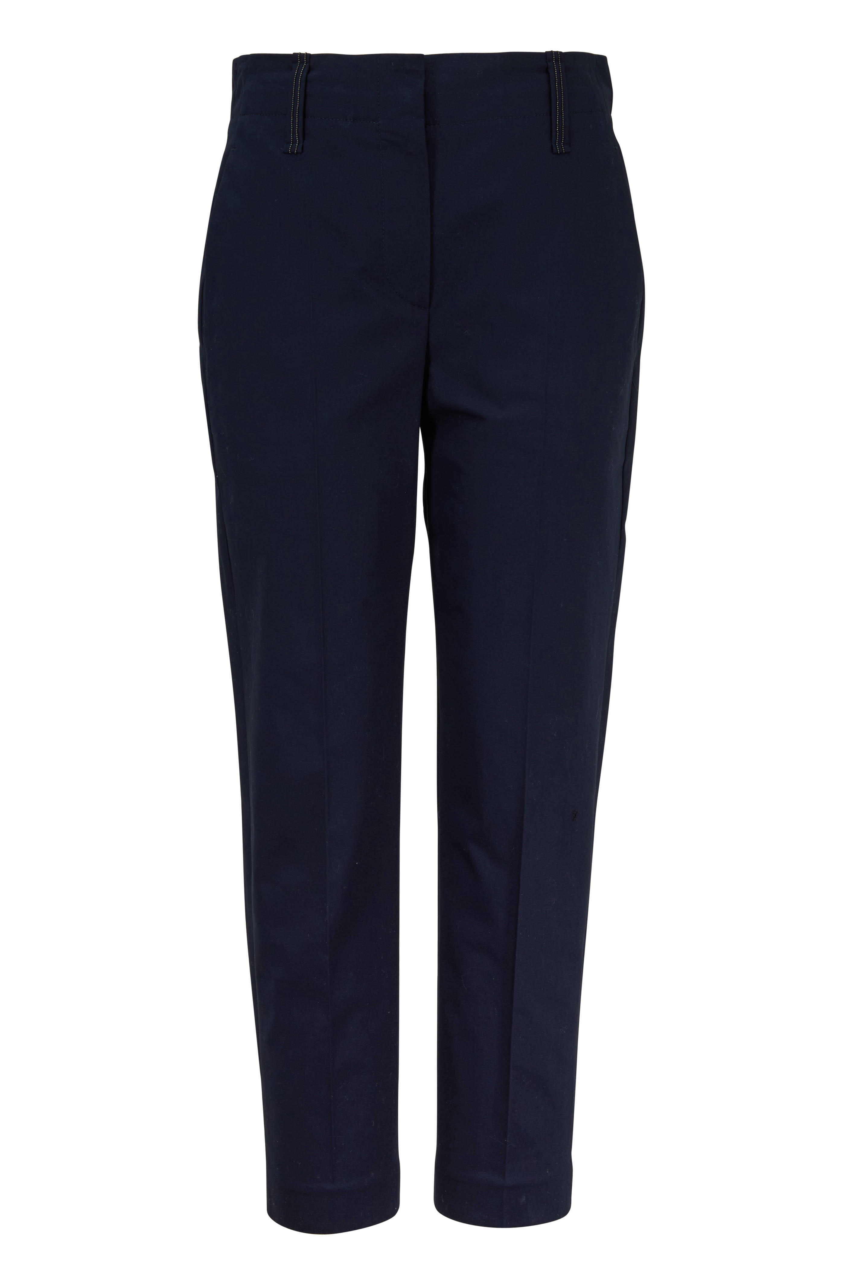 Banded waist; monli belt loops. Front slip pockets; back welt pockets. Front pleat detailing. Made in Italy. 24" inseam. 97% cotton, 3% elastane. Hand wash.