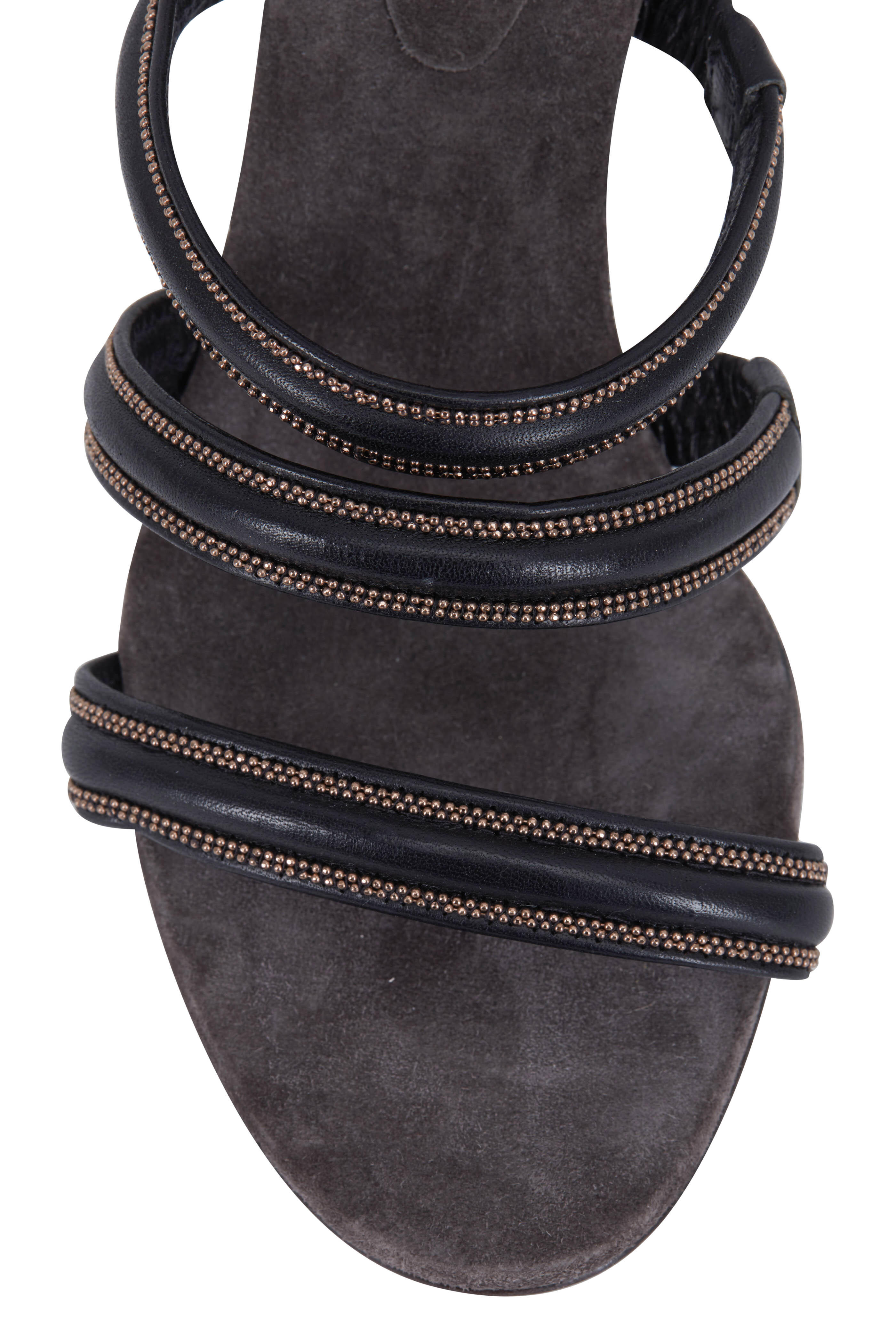 Black Leather Three Monili Band Sandal, 80mm