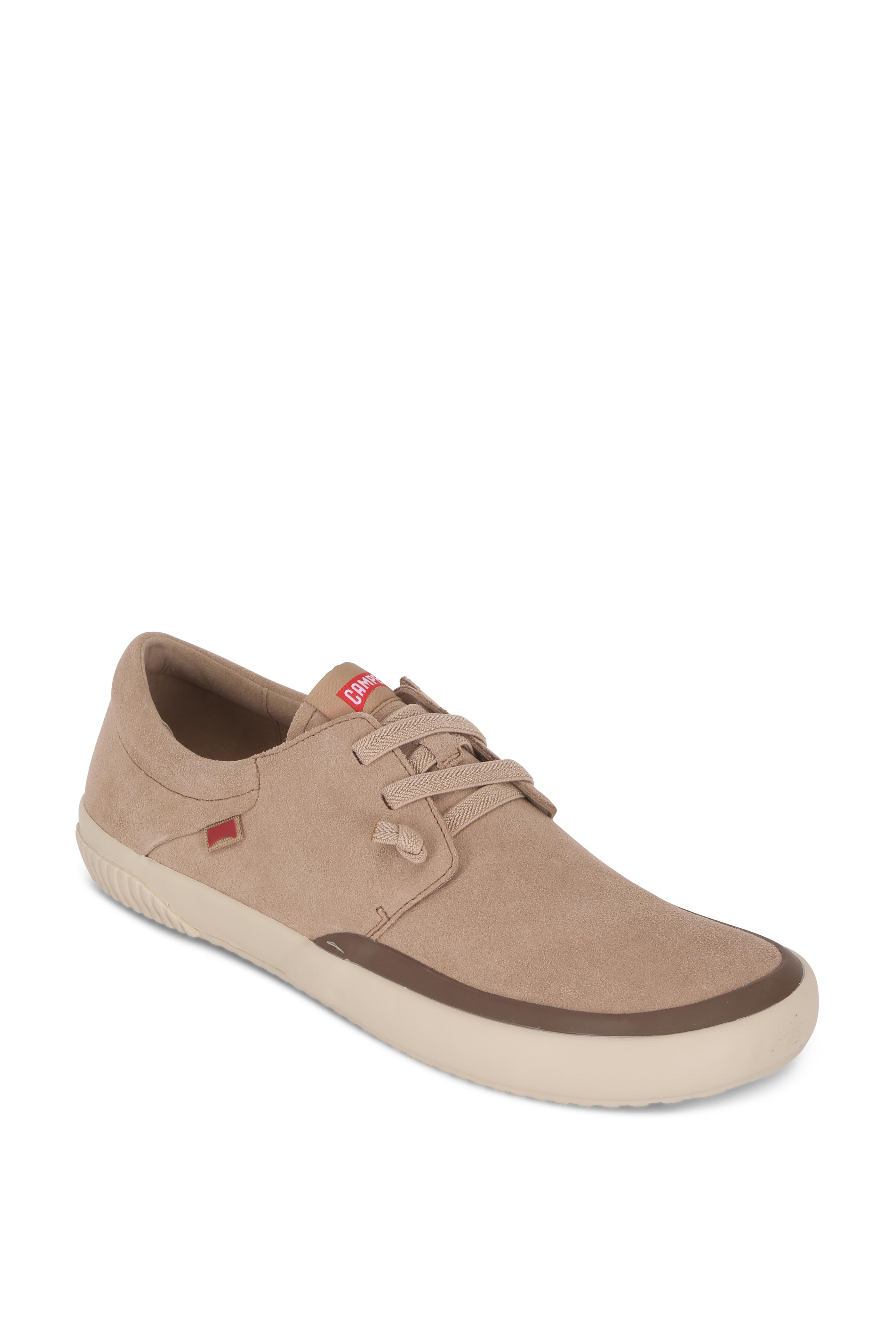 Suede upper. Round toe. Elasticized laces. Textile lining, cushioned insole. Skid resistant rubber sole. Imported.