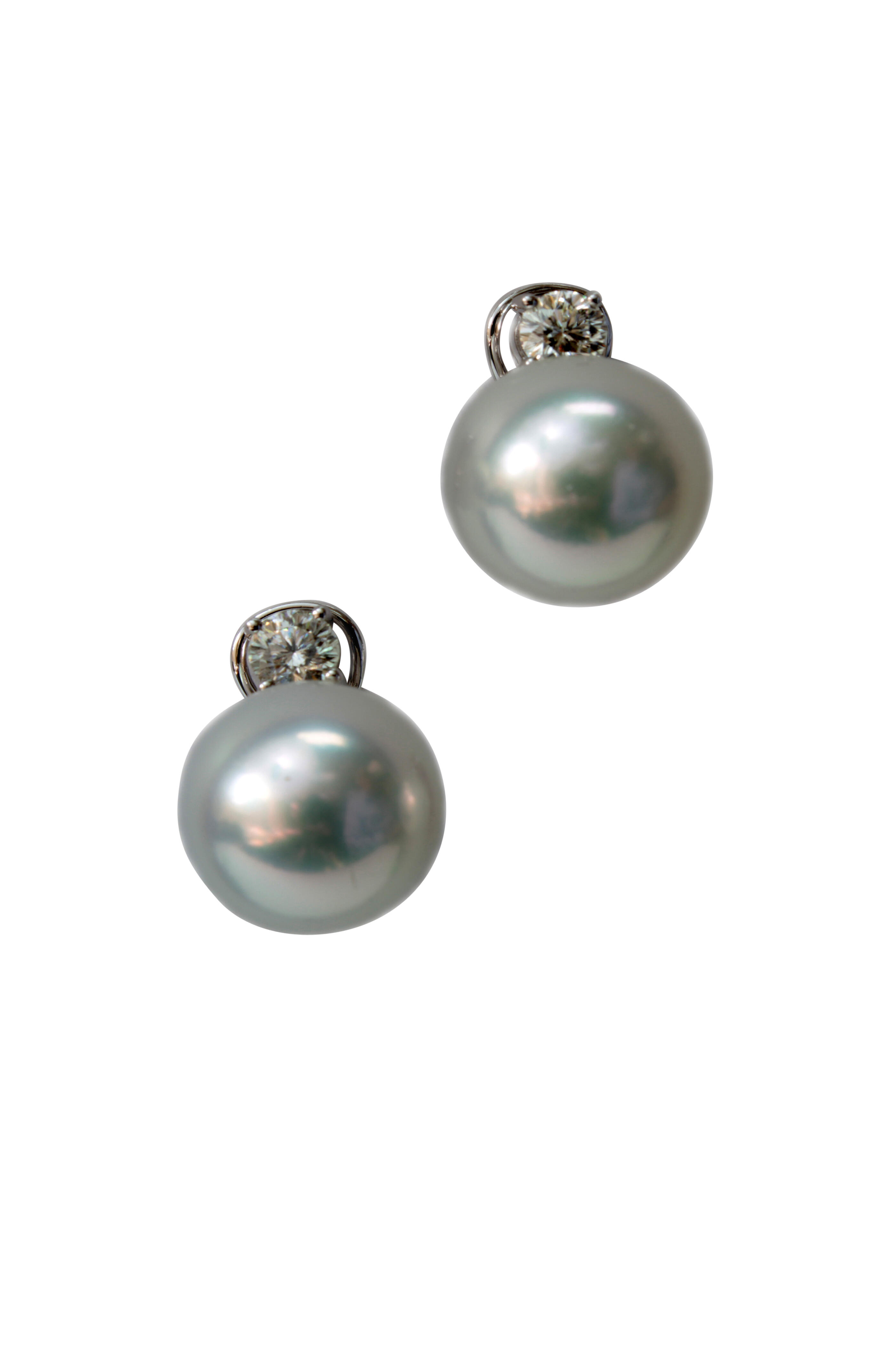 18K White Gold South Sea Pearl & Diamond Earrings