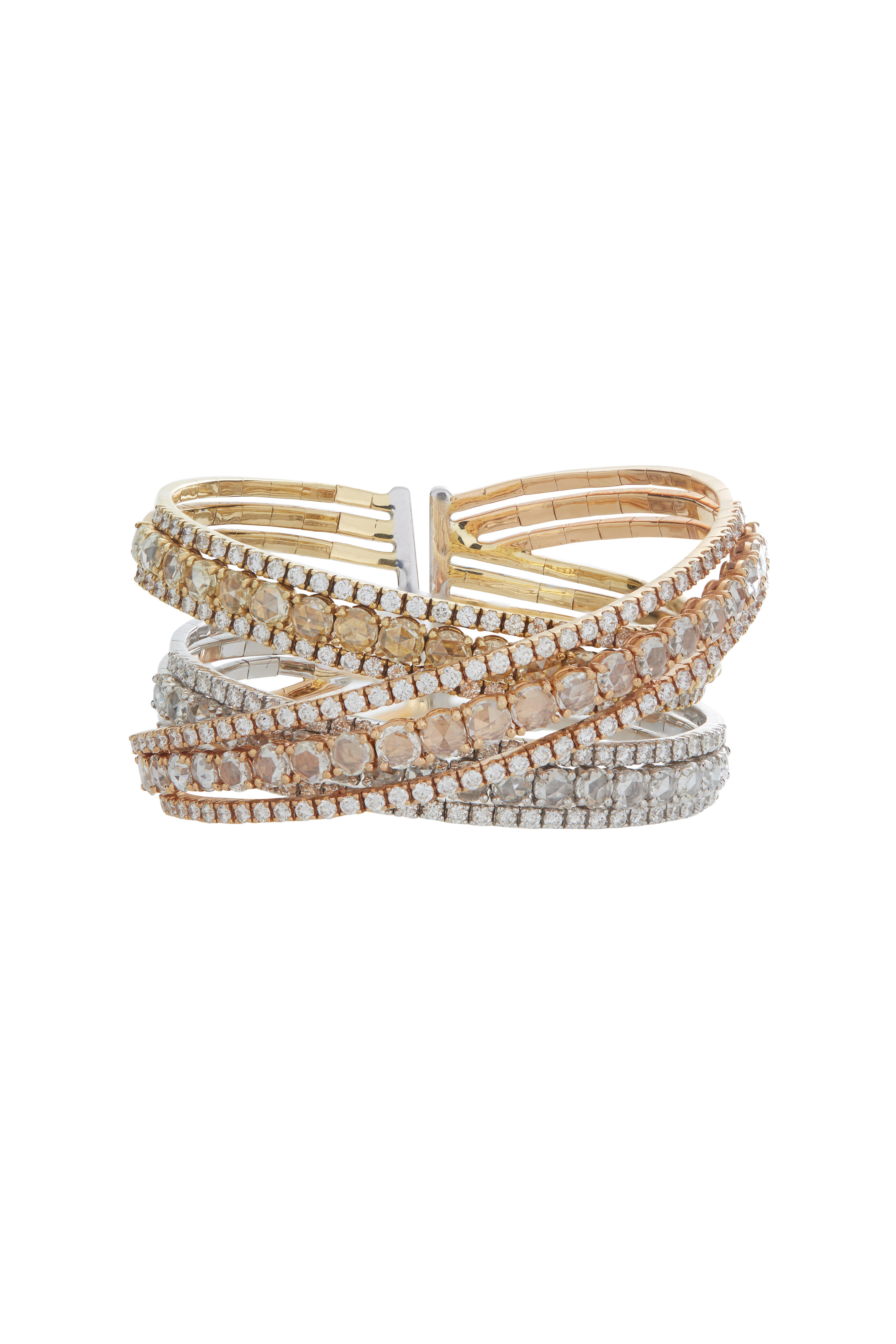 18K yellow, rose, white gold. Yellow, pink, white diamonds. Twistable.