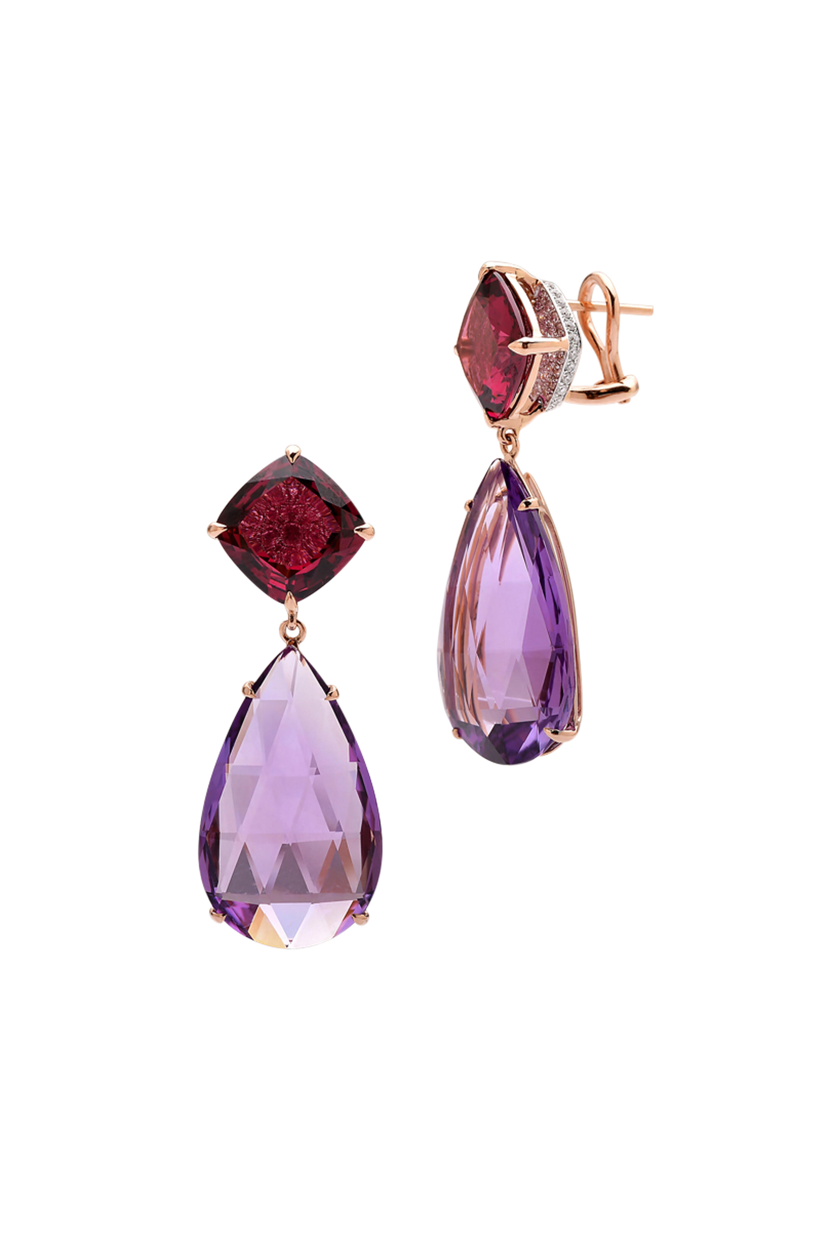 18K Rose Gold Rhodolite & Pink Amethyst Earrings