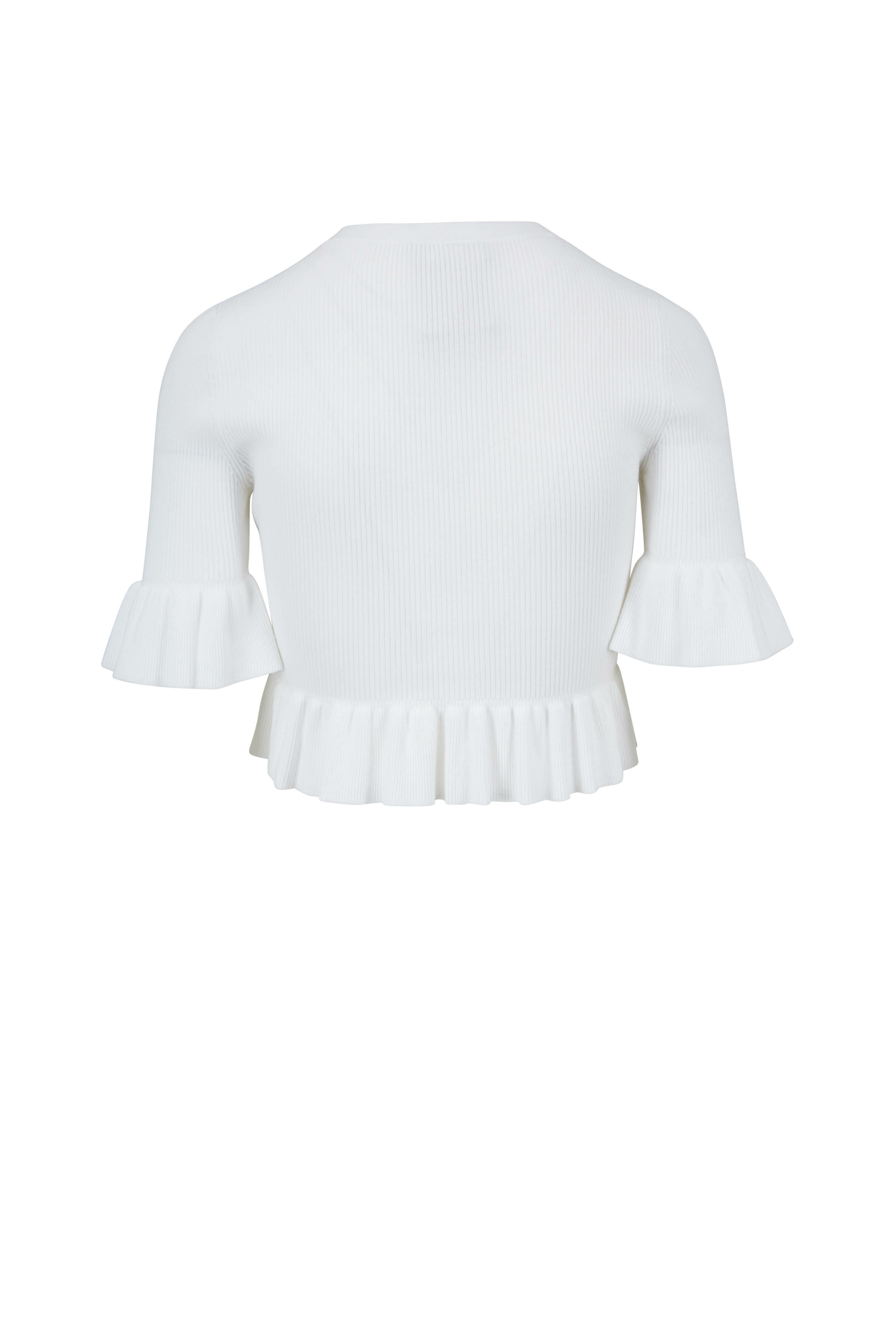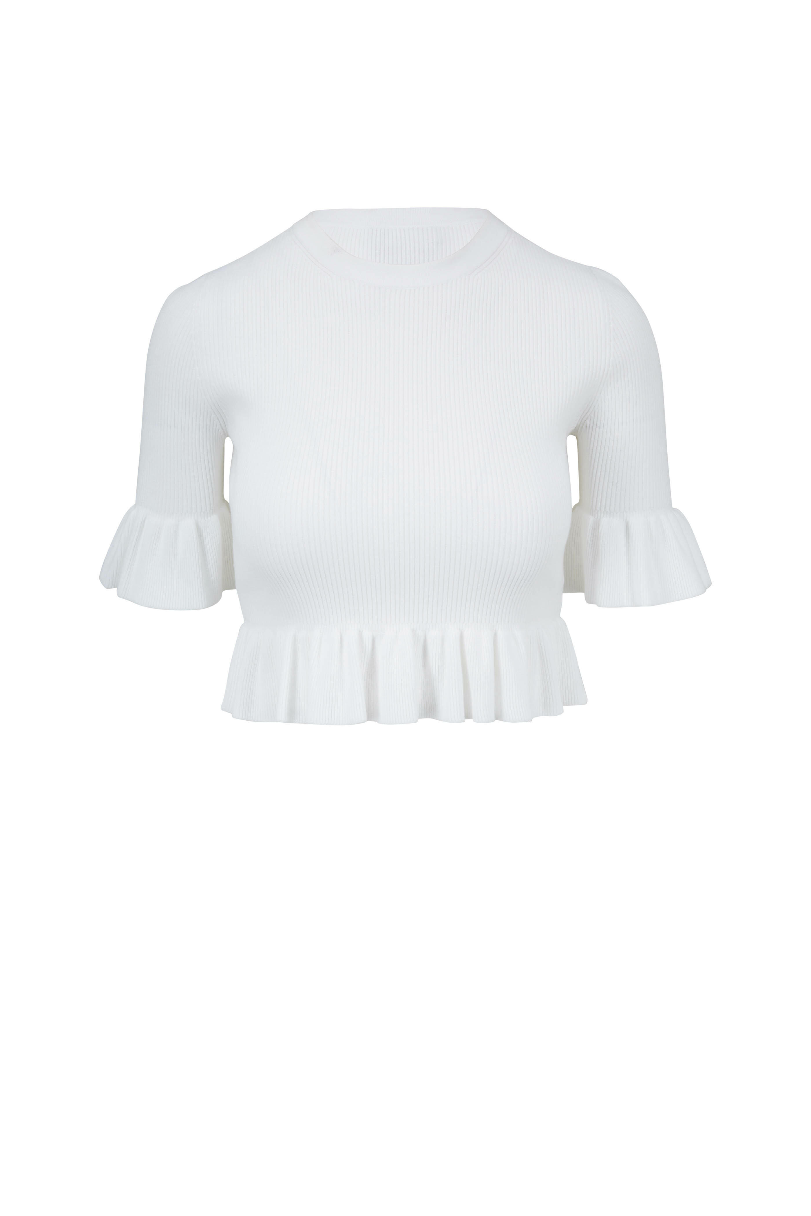 White Ruffle Trim Crewneck Ribbed Top