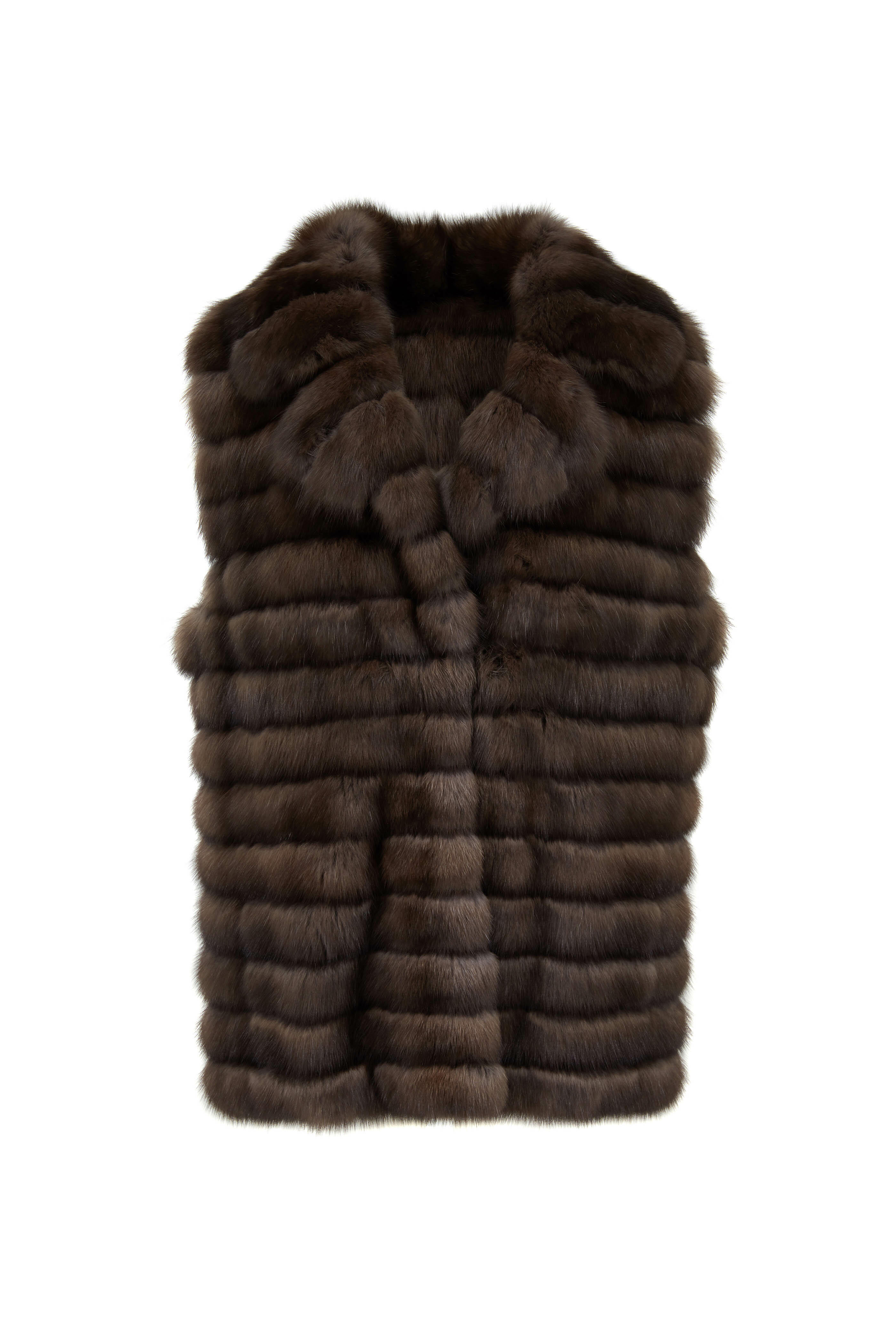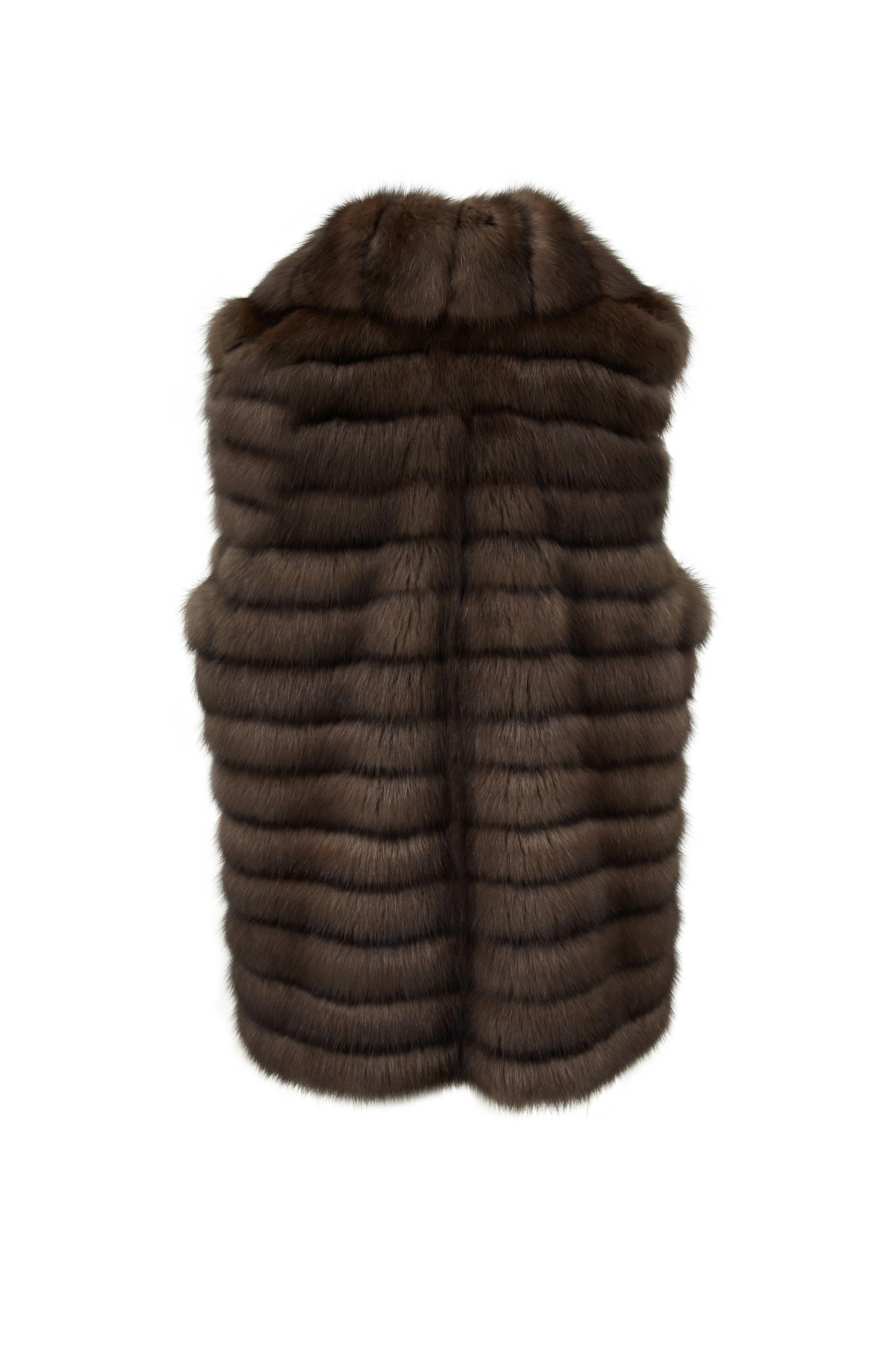Specialist clean. Notched lapels. Front hook and eye closures. Lower side seam pockets. Made in the USA. 27½" length. 100% natural Barguzine sable (Russia); lining: 100% silk.