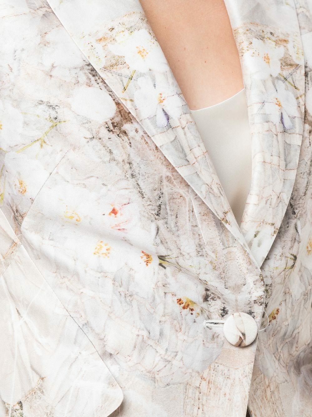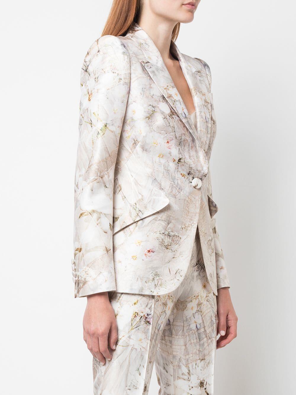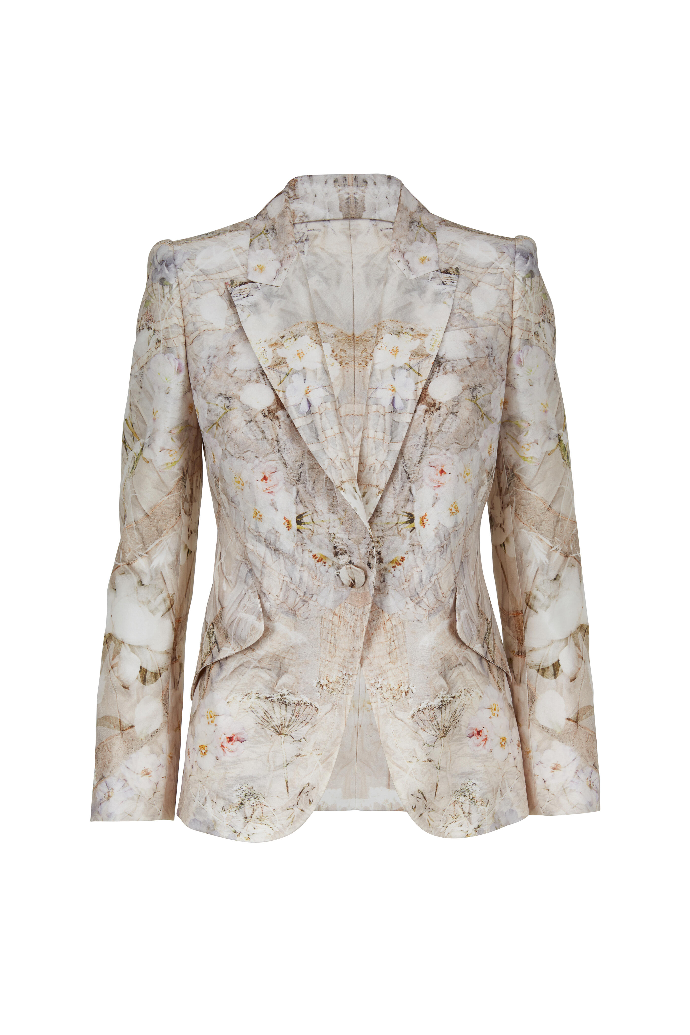 Peak lapels. Single button closure. Lower flap pockets, chest welt pocket. Single back vent. Made in Italy. Fitted silhouette. 86% wool, 14% silk. Dry clean.