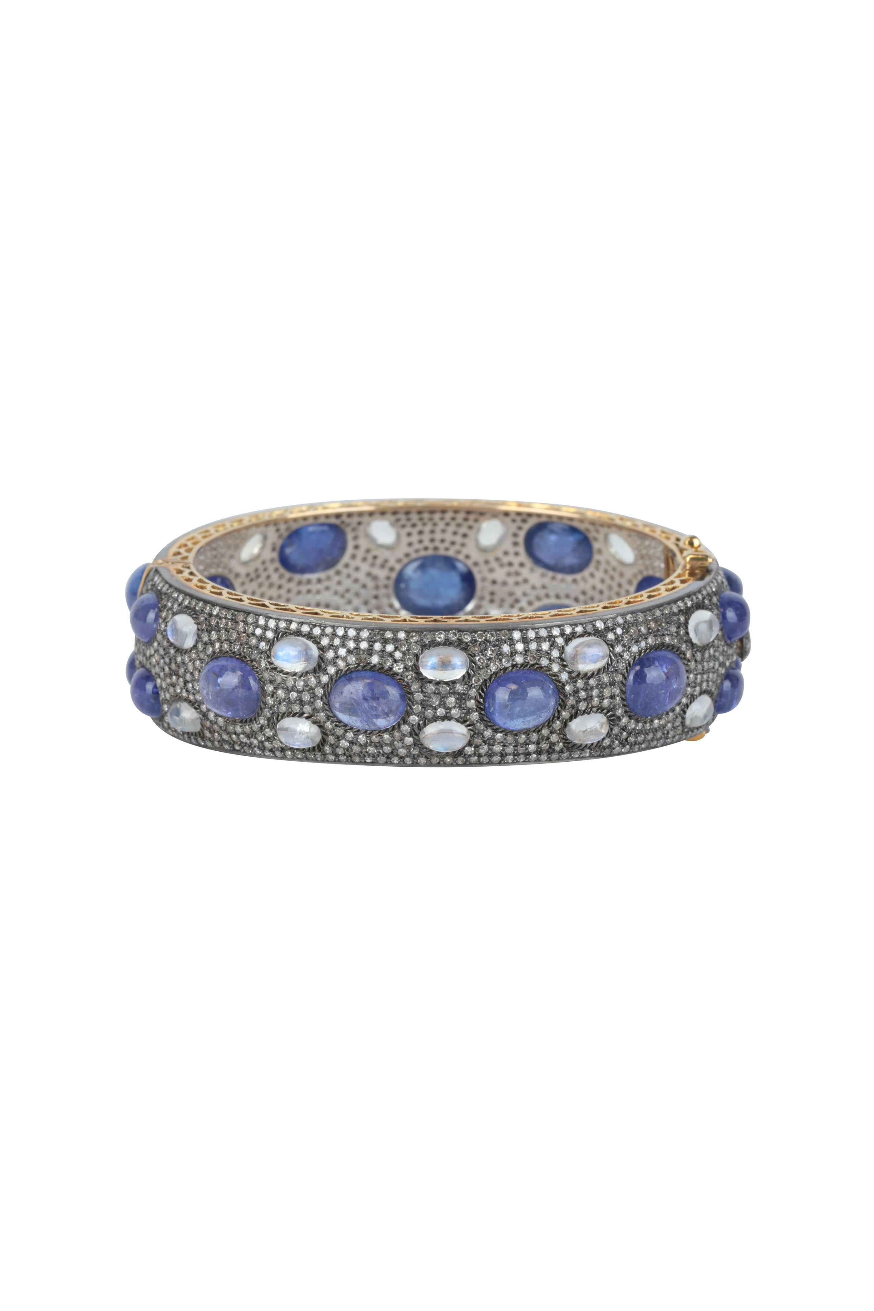14K Gold & Silver Diamond & Tanzanite Bangle