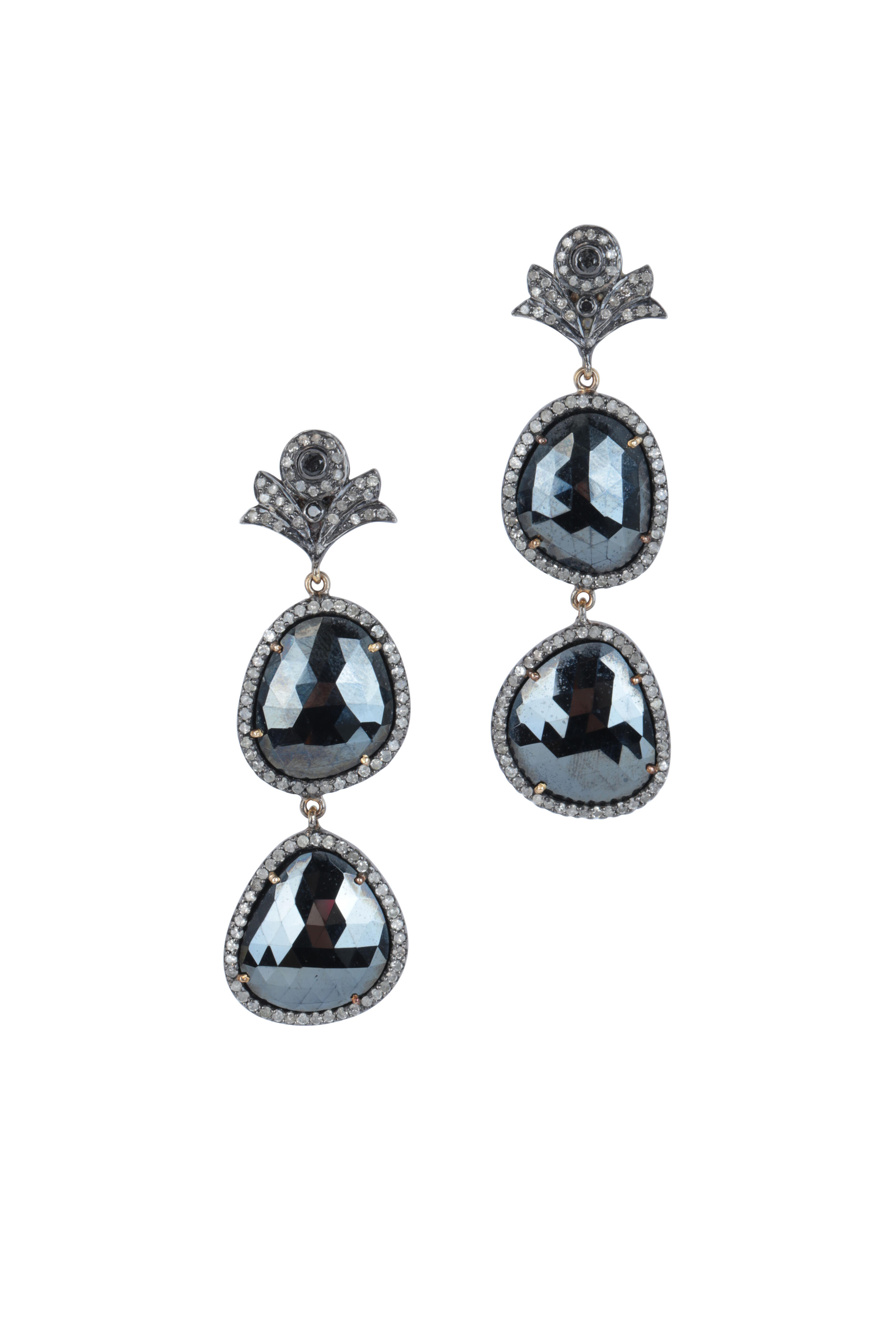 14K Gold & Silver Diamond & Black Spinel Earrings
