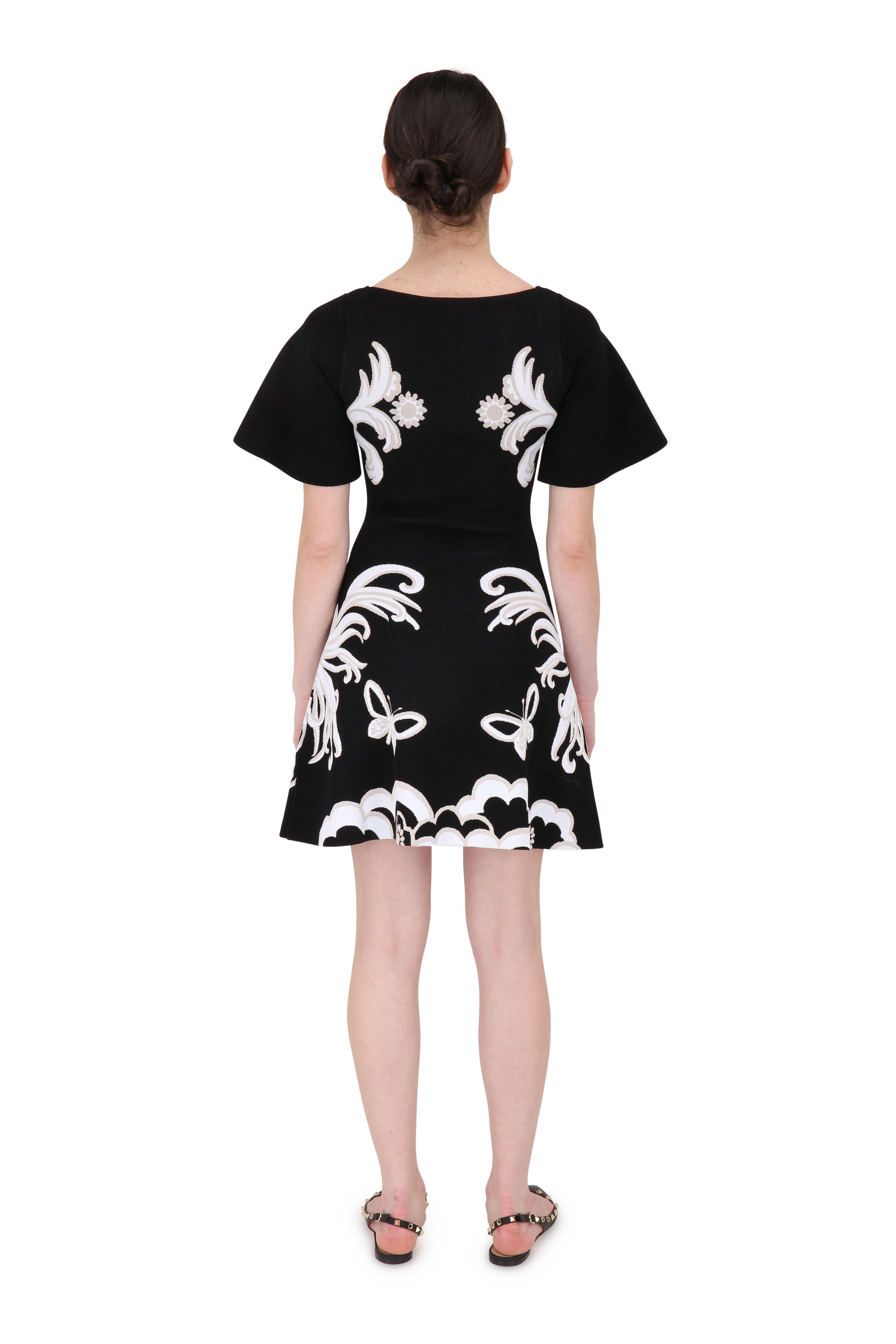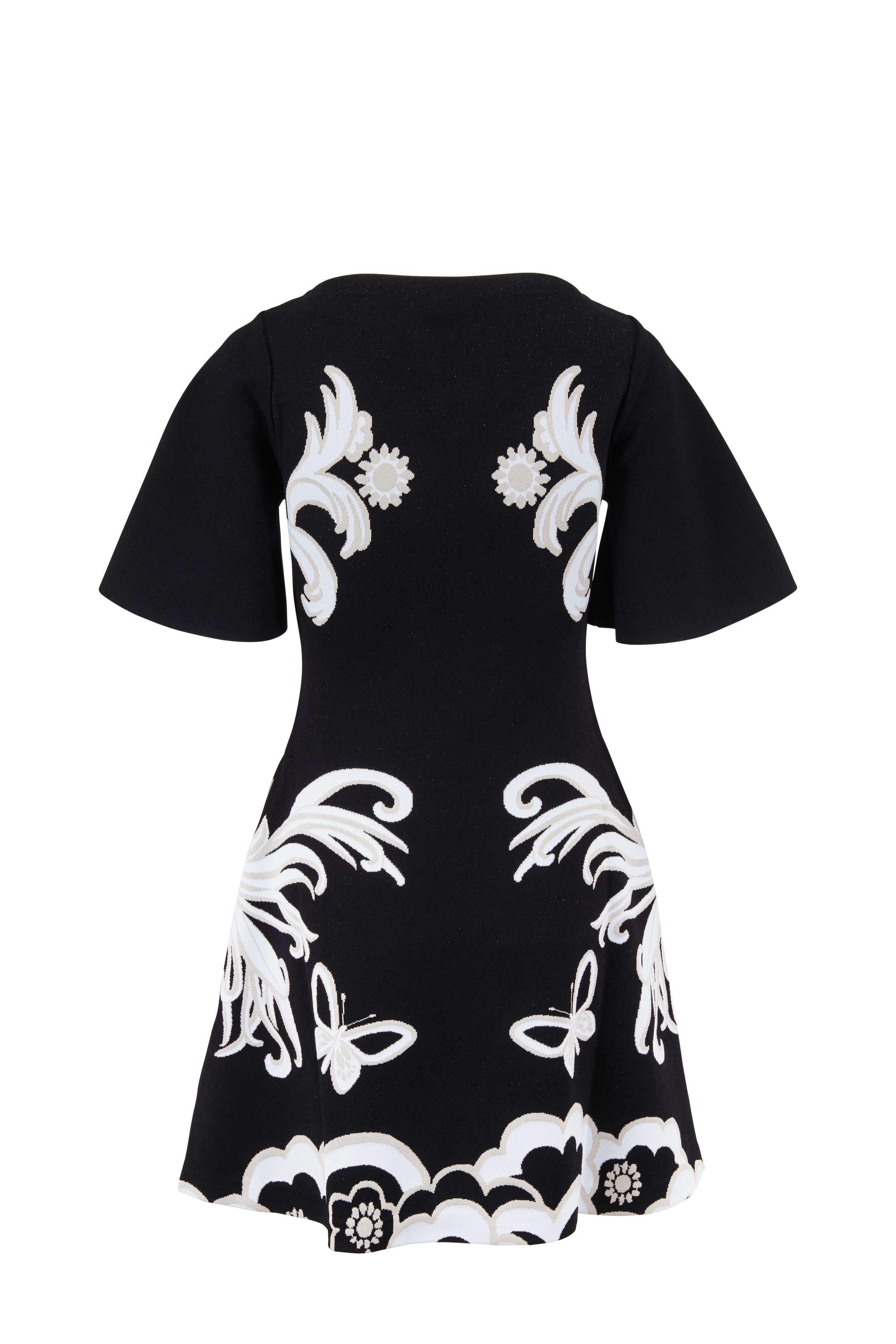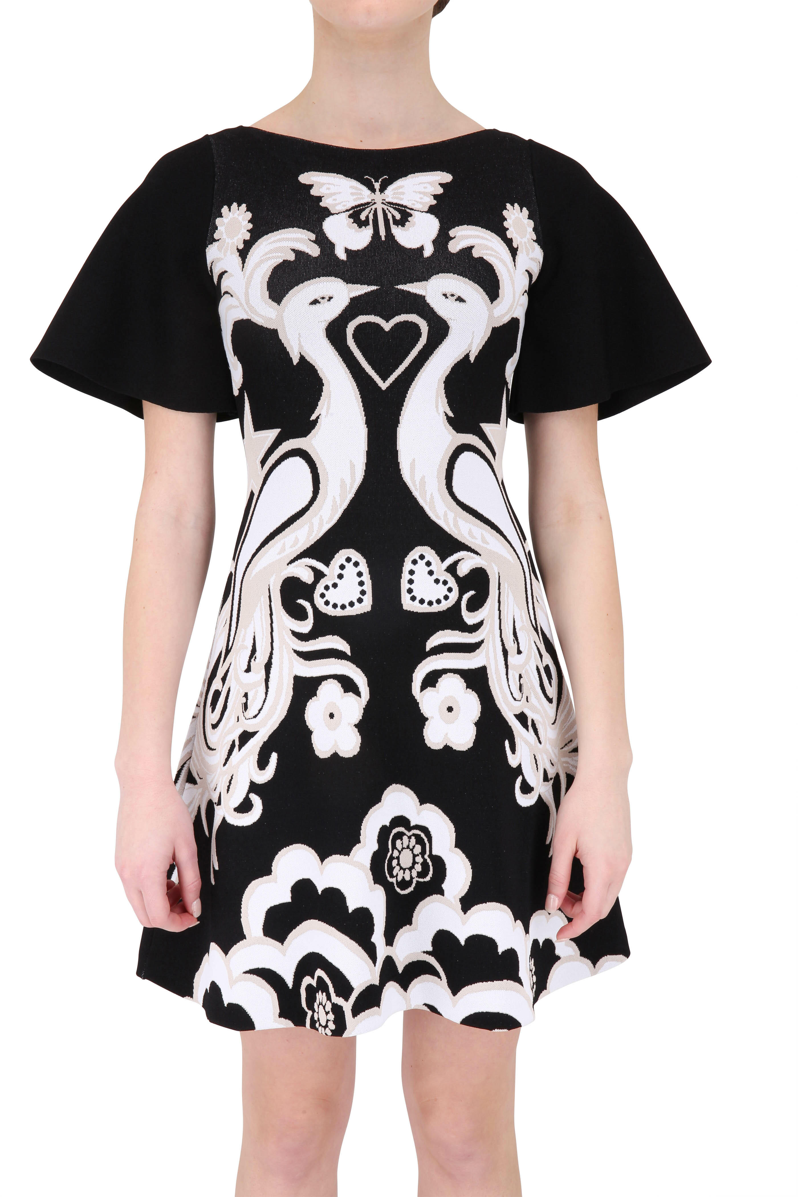 Black & Ivory Peacock Jacquard Fenice Knit Dress