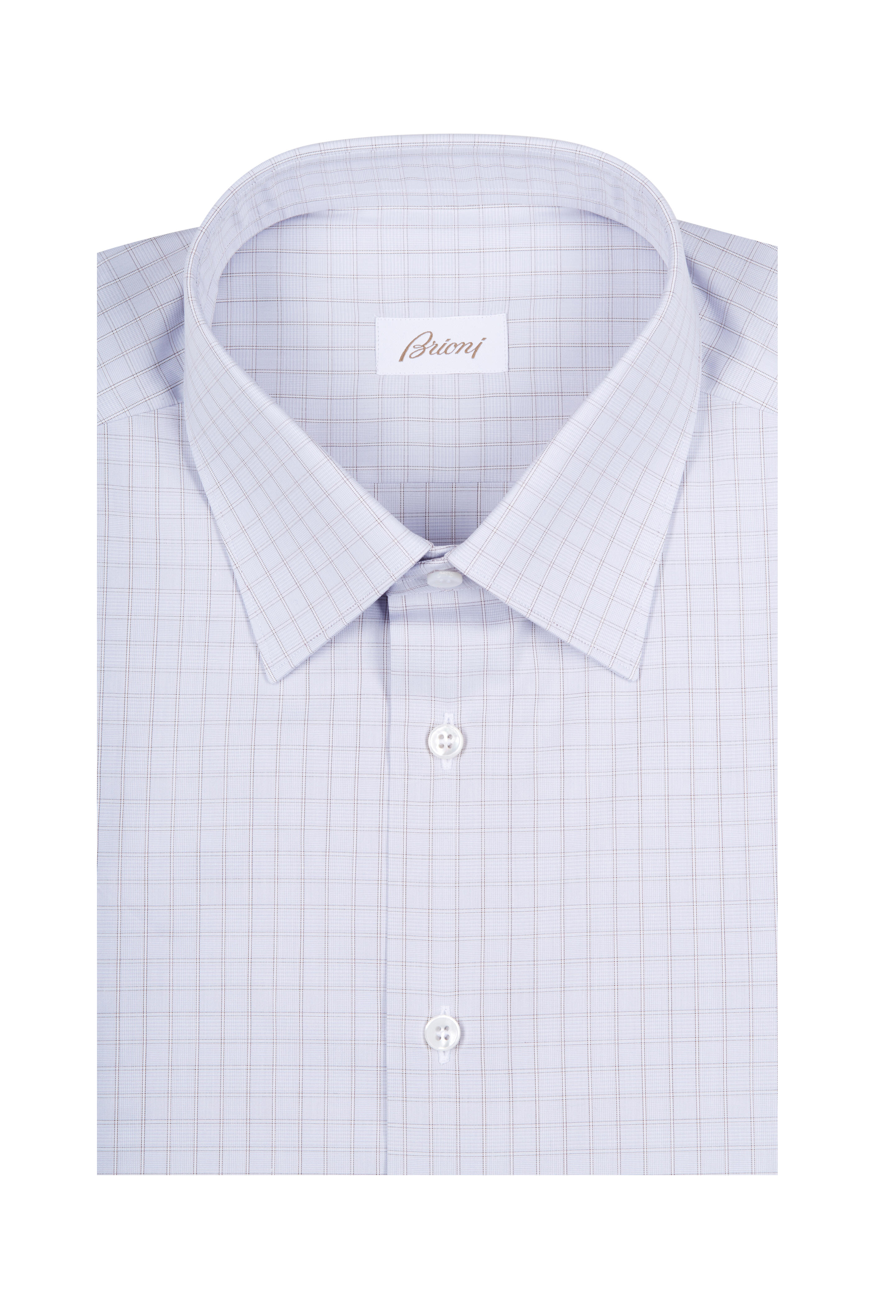 Pale Blue & Brown Check Dress Shirt