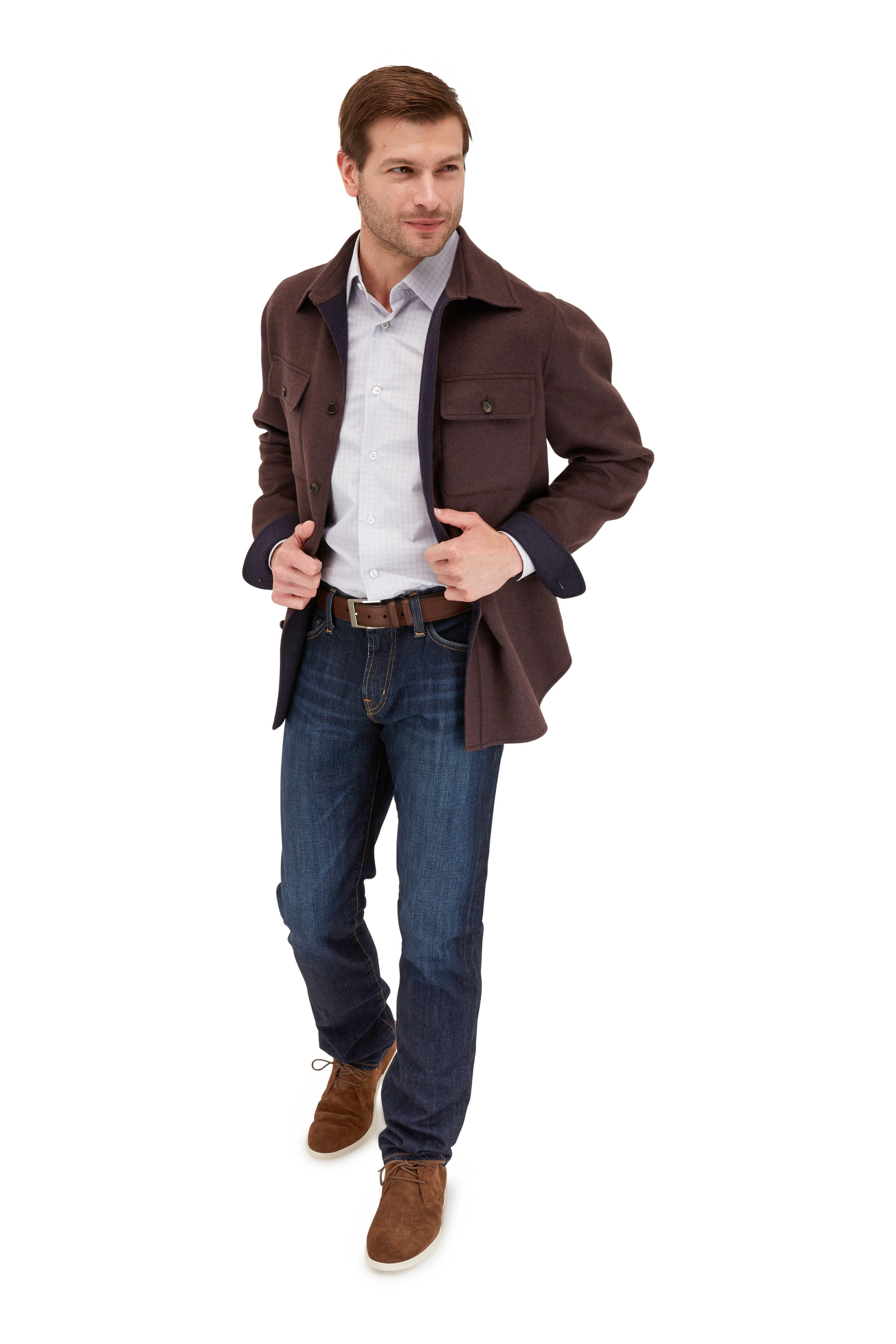 Spread collar. Single button rounded cuffs. Made in Italy. 100% cotton. Machine wash.