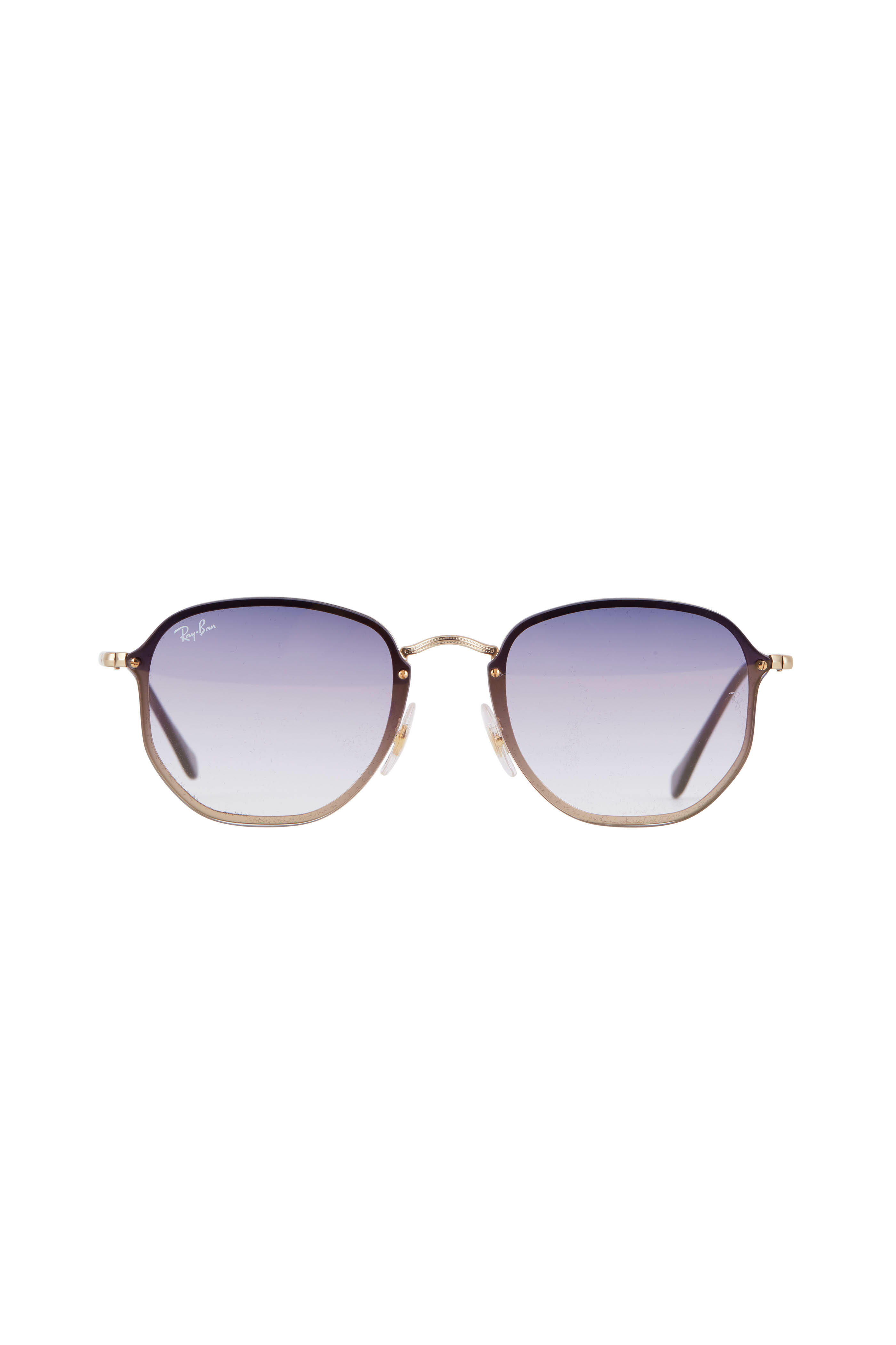 Frame material: Metal. Frame color: Gold. Lens color: Violet blue. Made in Italy.