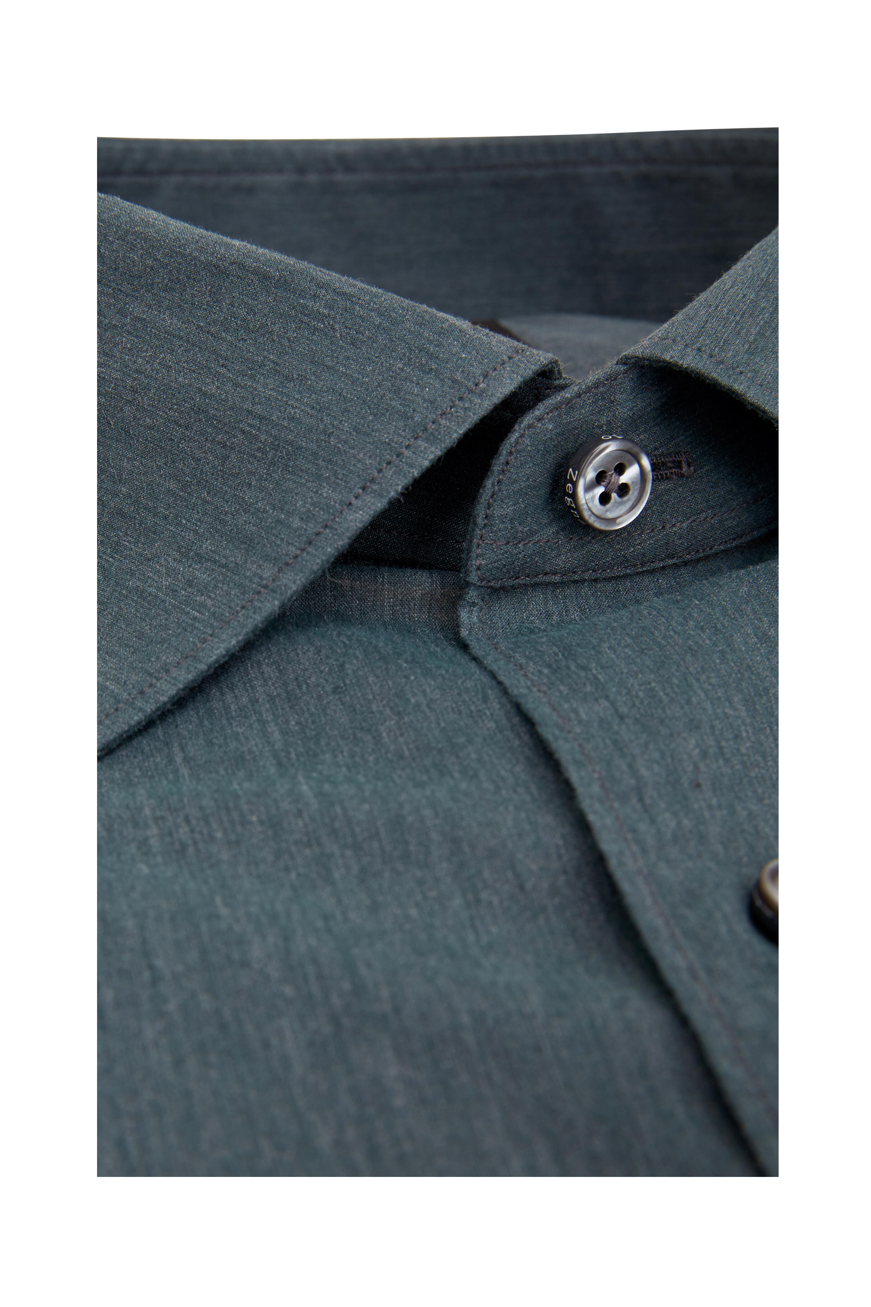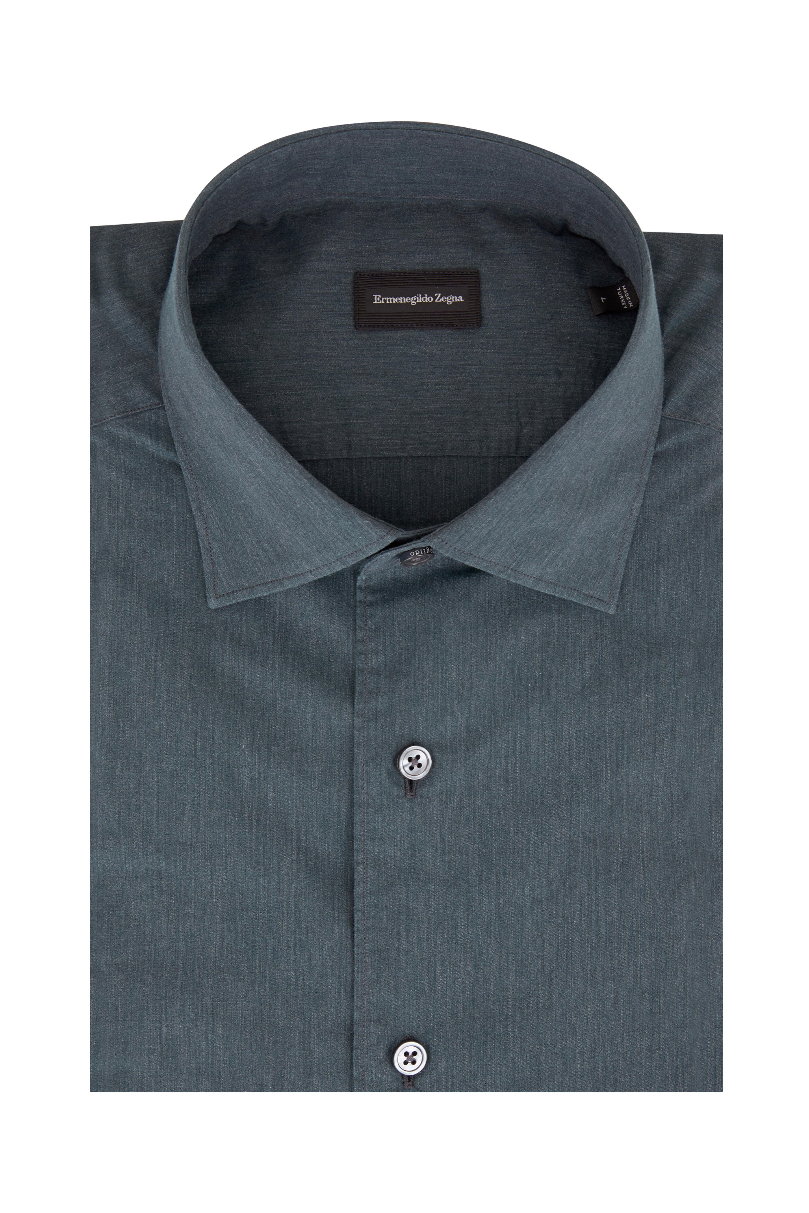Spread collar. Single button mitered cuffs. Made in Italy. Classic fit. 100% cotton. Dry clean.