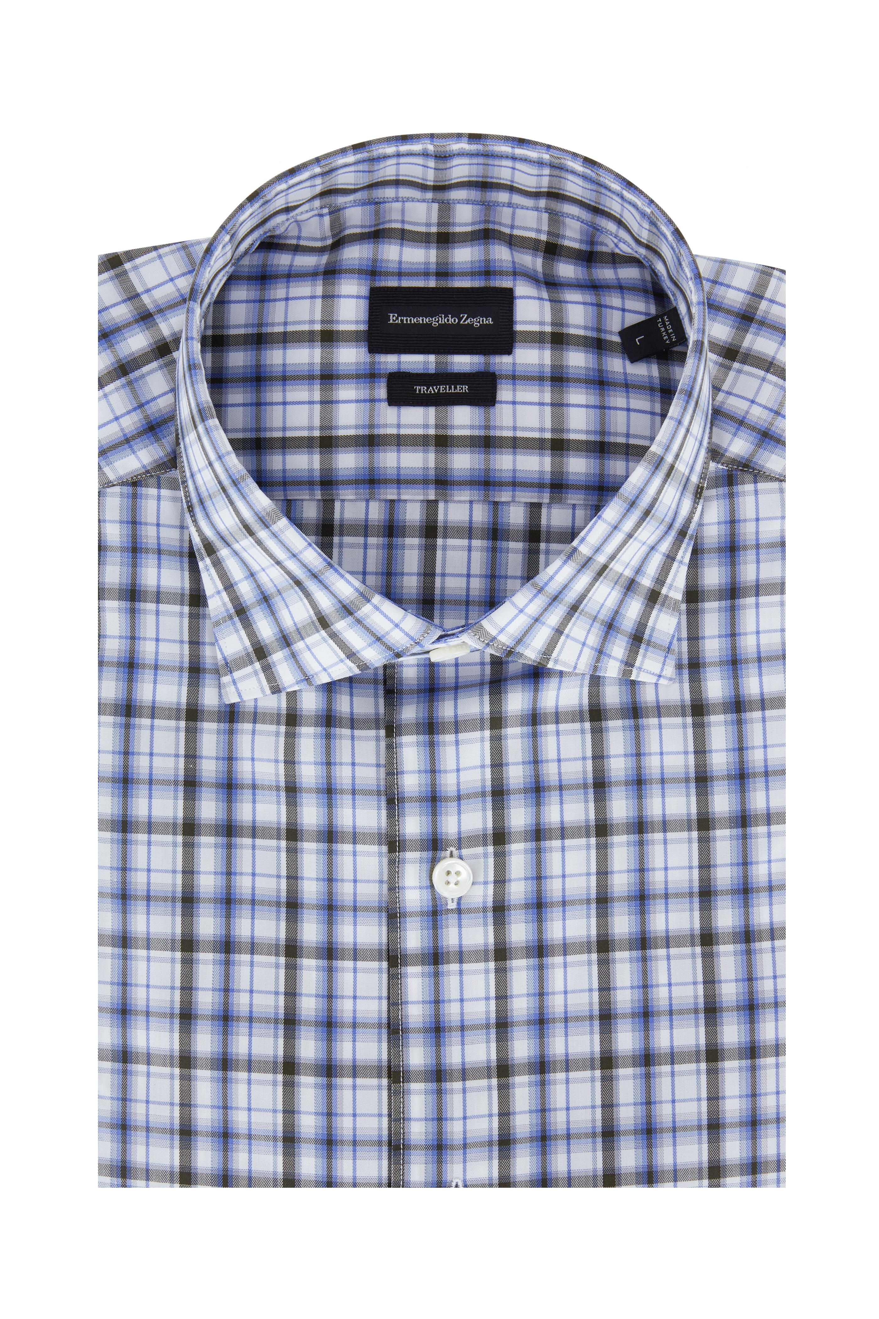 Spread collar. Single button barrel cuffs. Imported. Classic fit. 100% cotton. Machine wash.