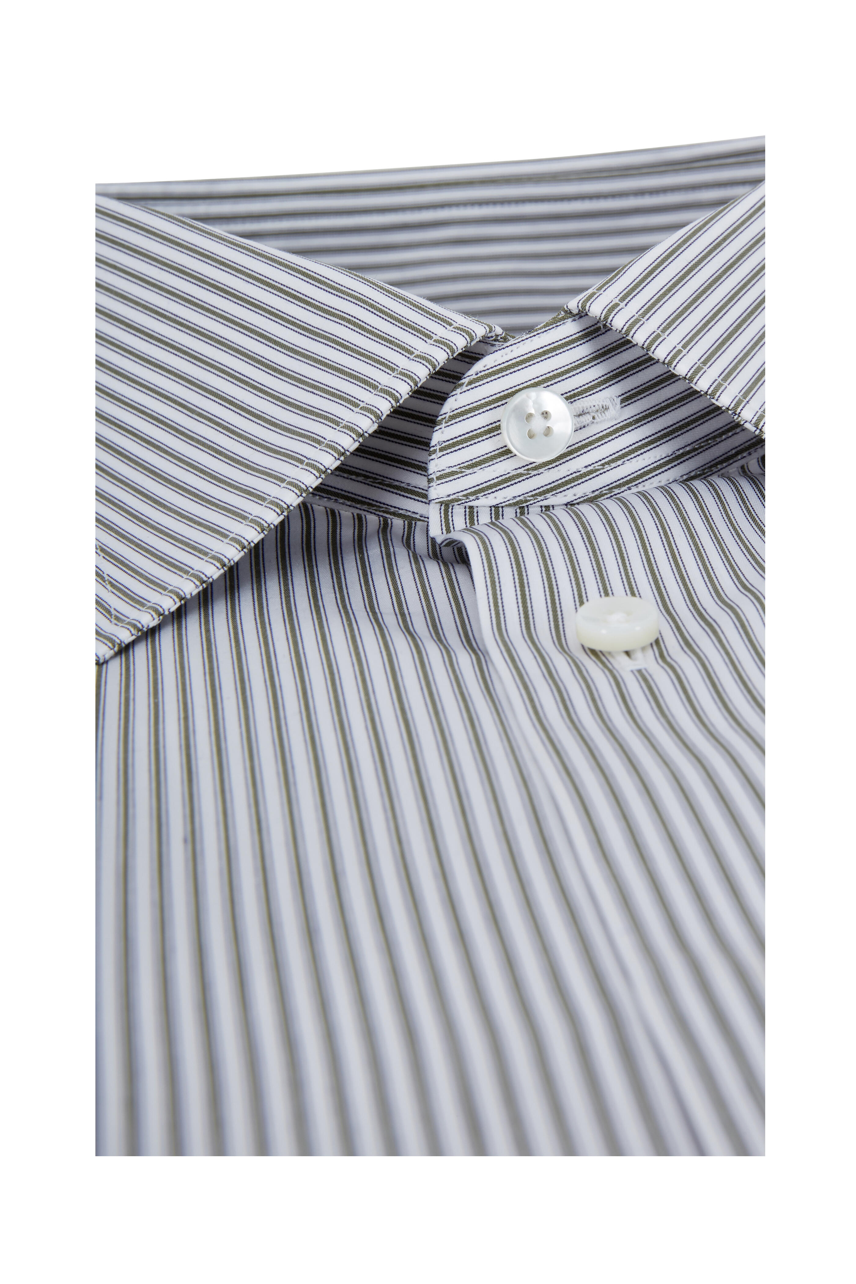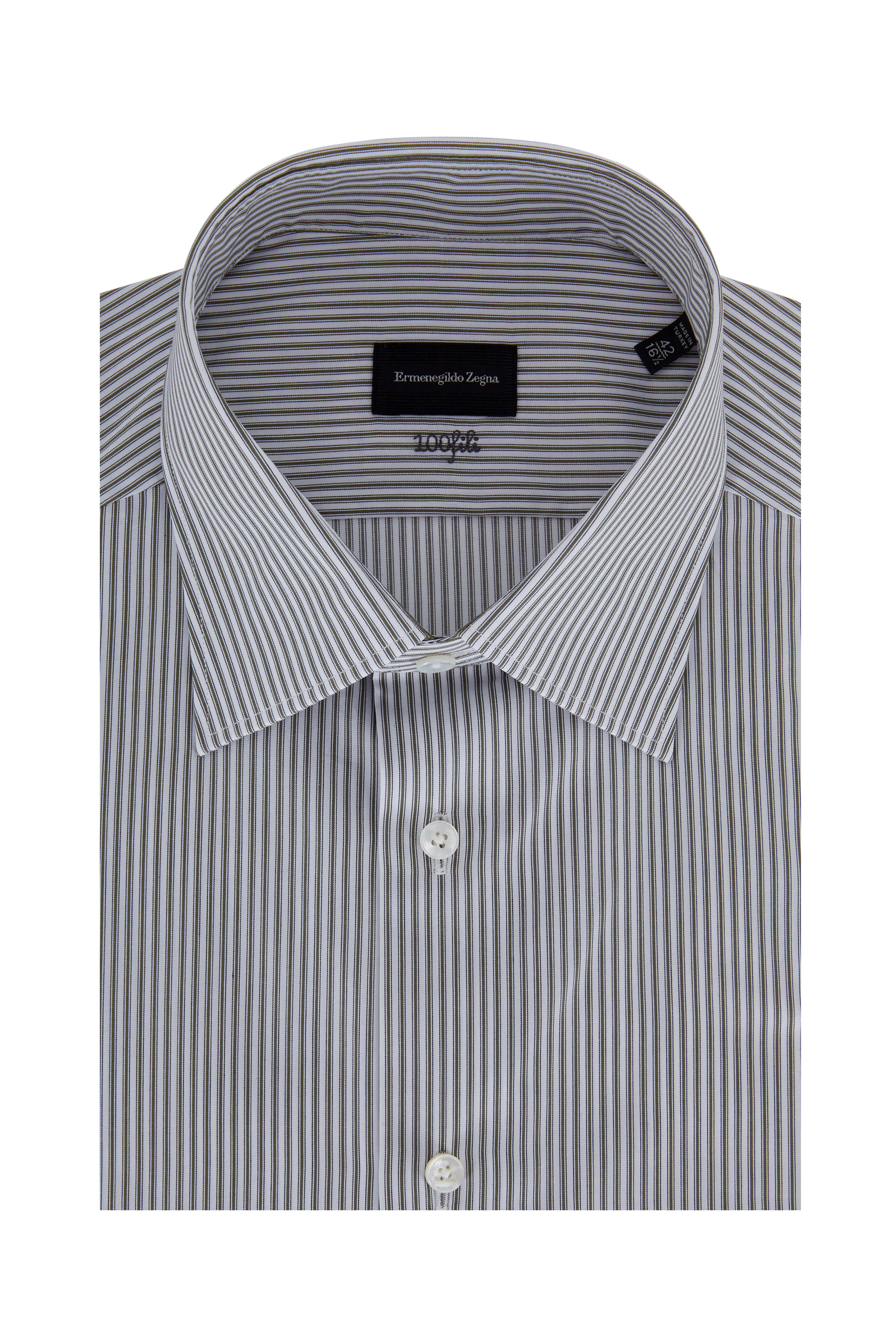 Spread collar. Single button mitered cuffs. Imported. 100% cotton. Dry clean.
