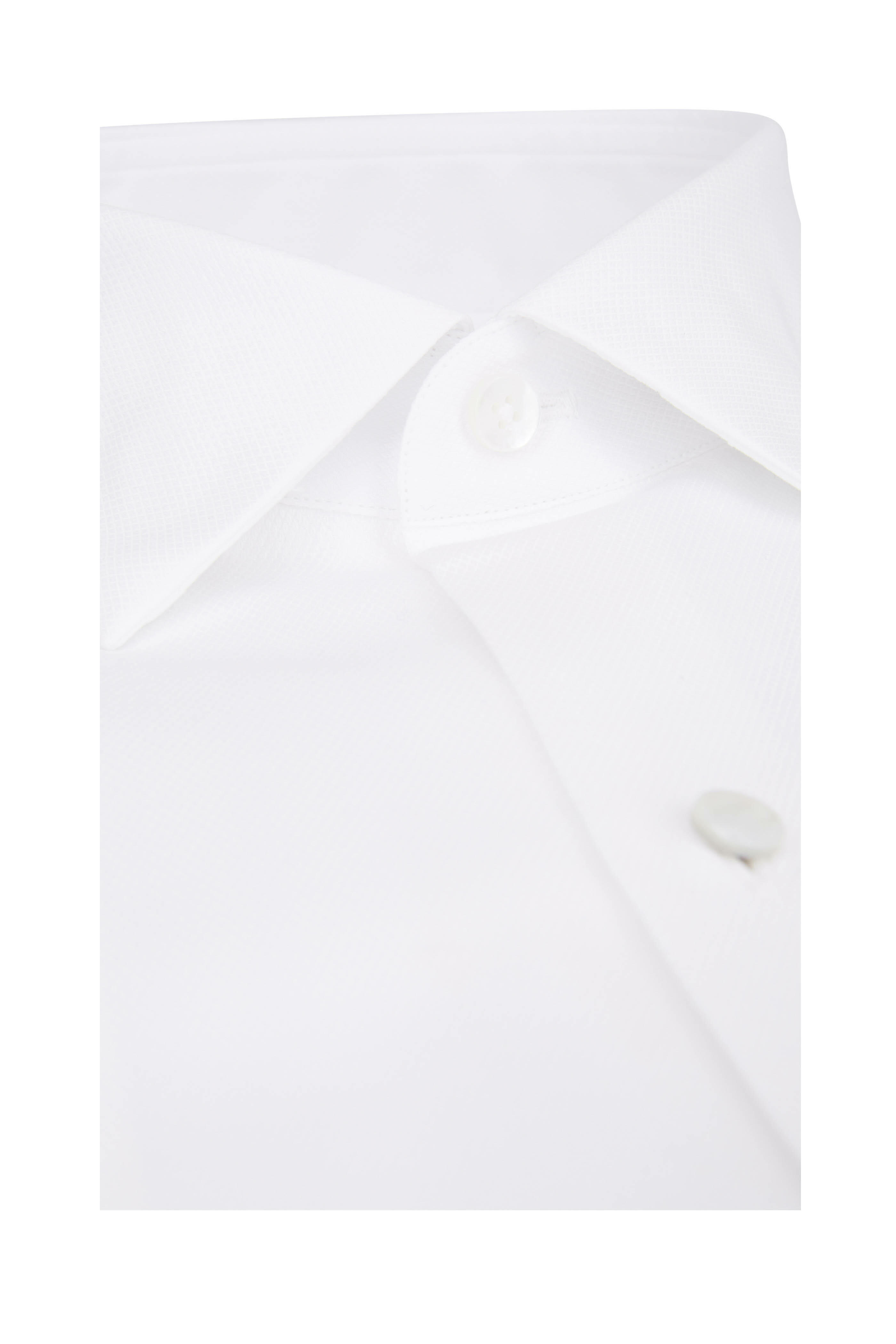 White Diamond Jacquard French Cuff Dress Shirt