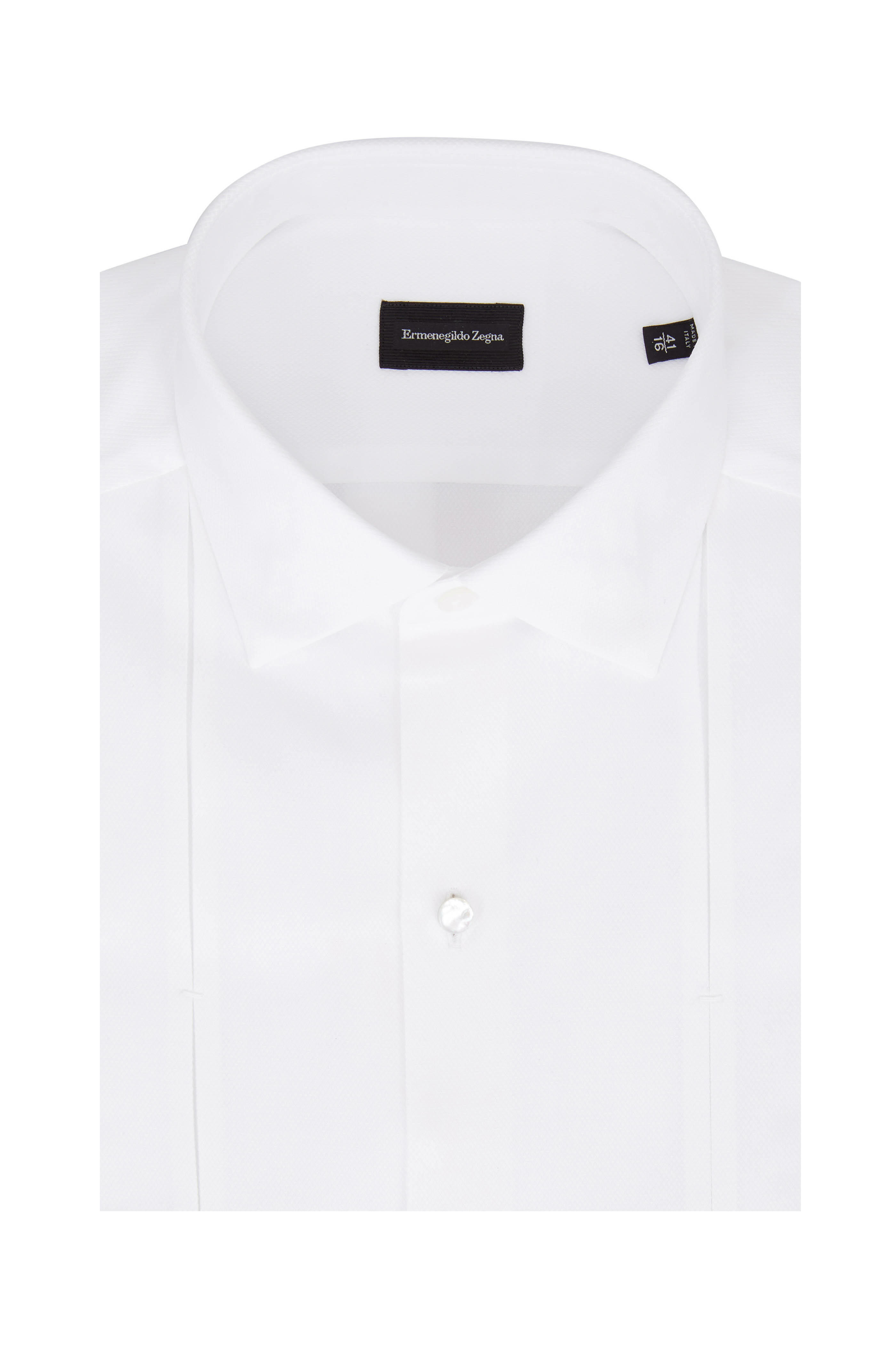 Spread collar. French cuffs. Imported. Tailored fit. 100% cotton. Dry clean.