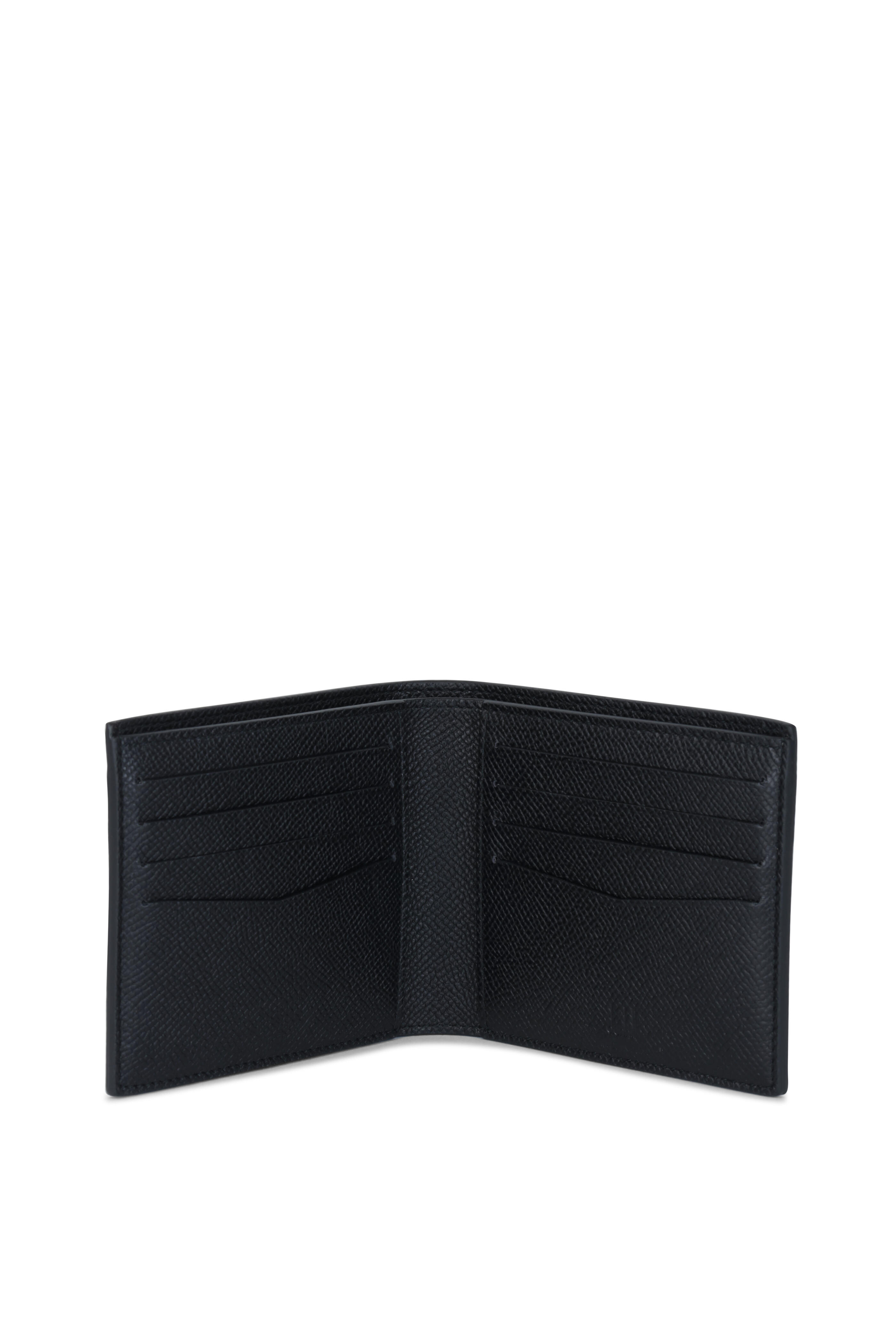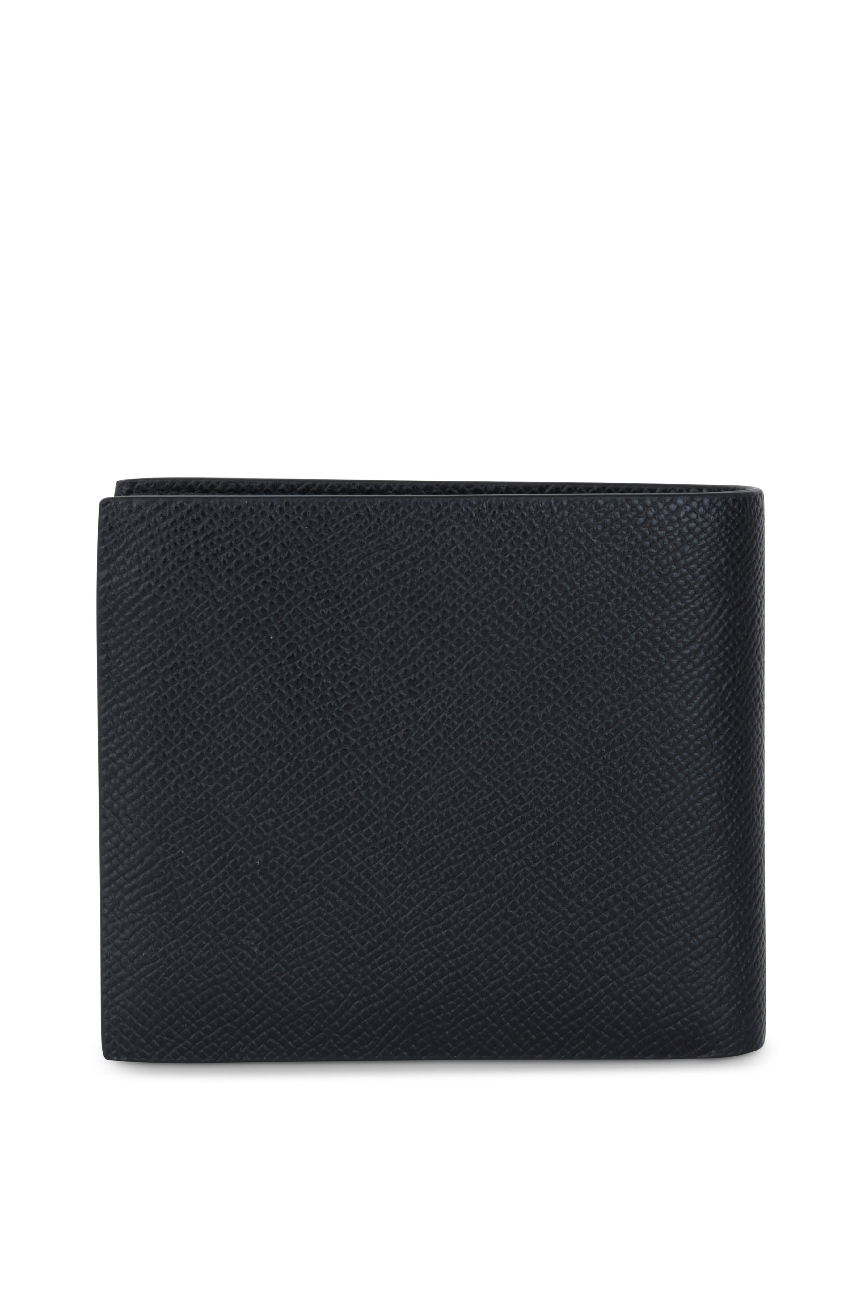 Grained leather. Eight card slots, two slip pockets, two bill pockets. Made in Italy.
