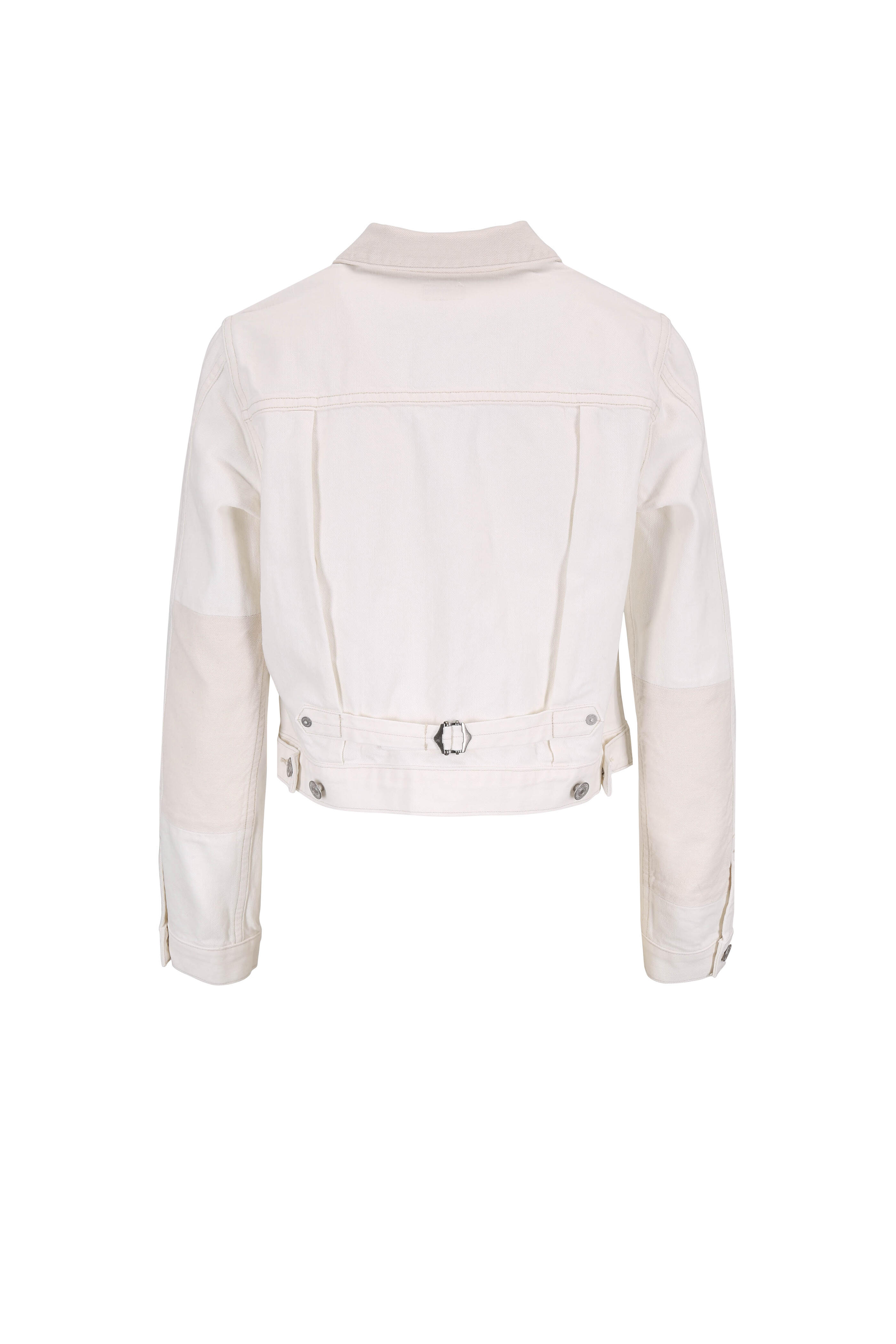 Spread collar. Front button placket. One lower flap button pocket. Single button squared cuffs. Made in the USA. 100% cotton. Machine wash.