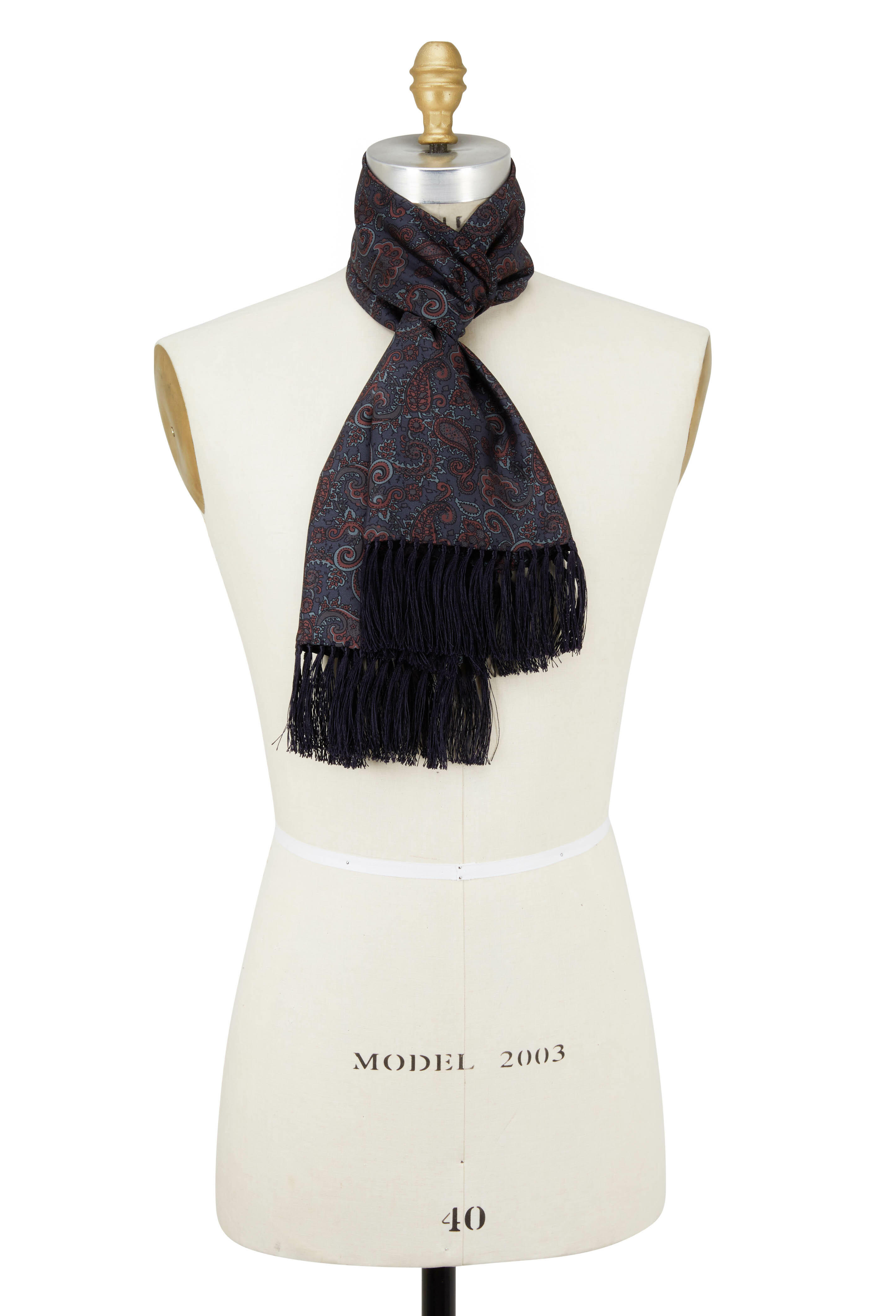 Navy Blue Paisley Print Silk Scarf