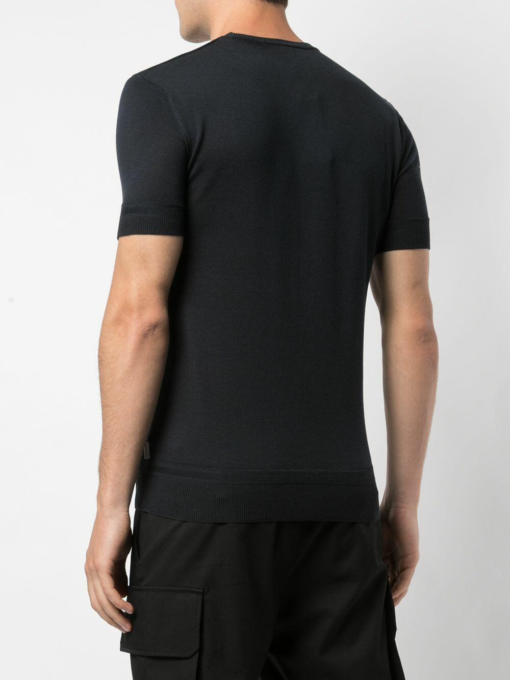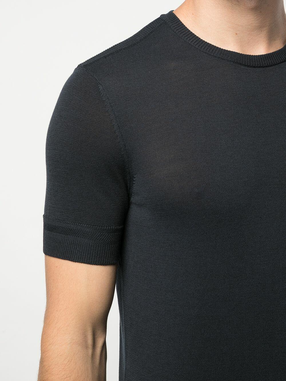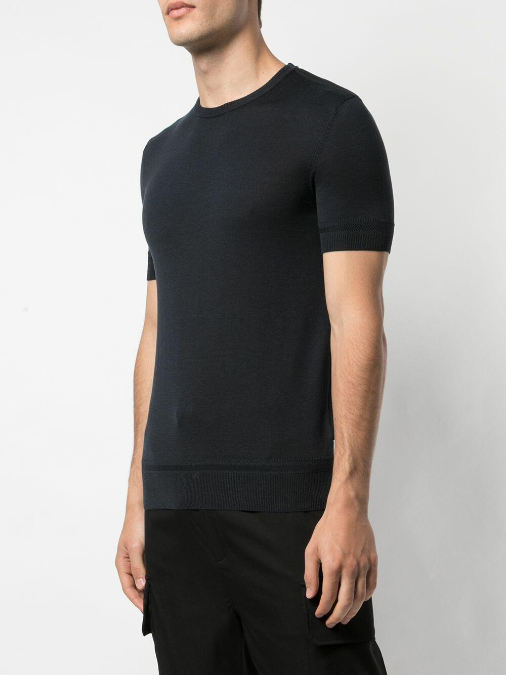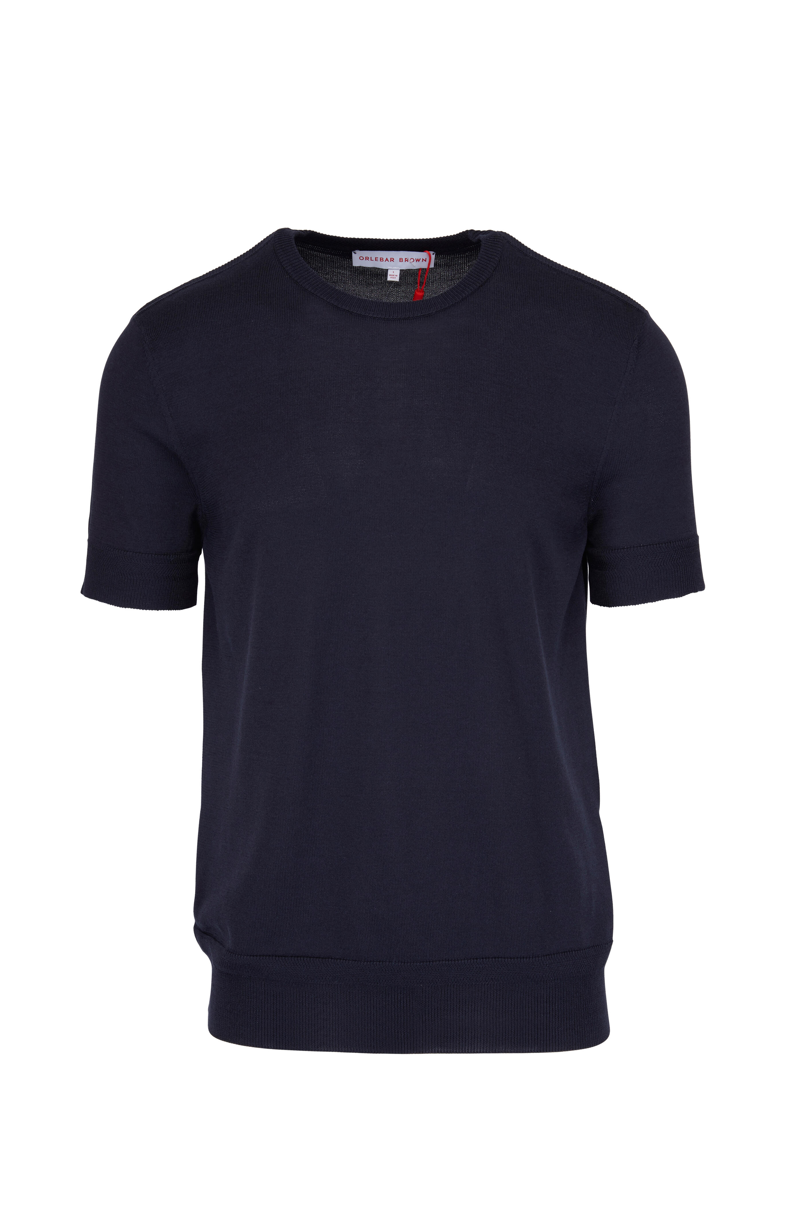 Crew neckline. Ribbed trim. Made in Italy. 50% silk, 50% cotton. Hand wash.