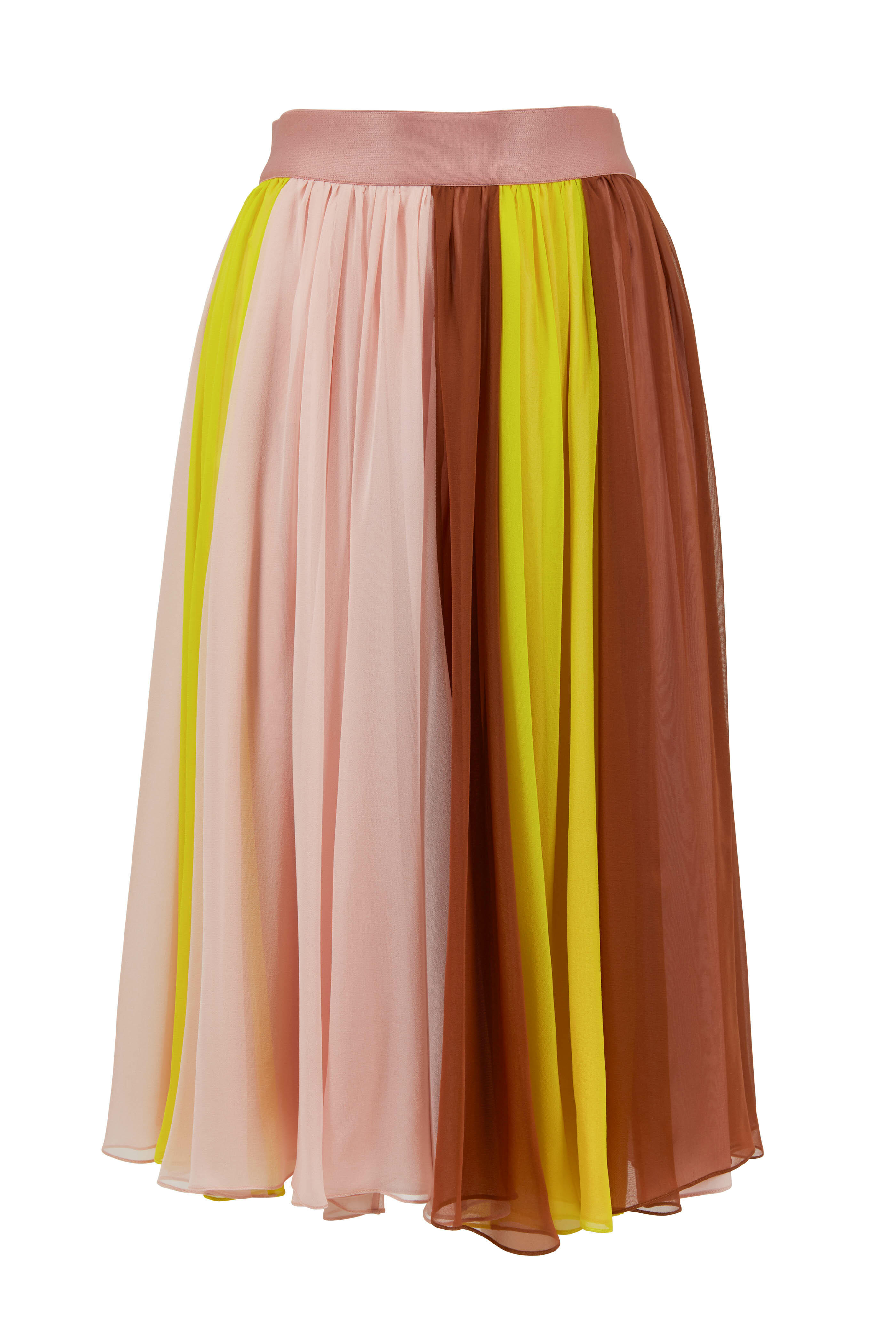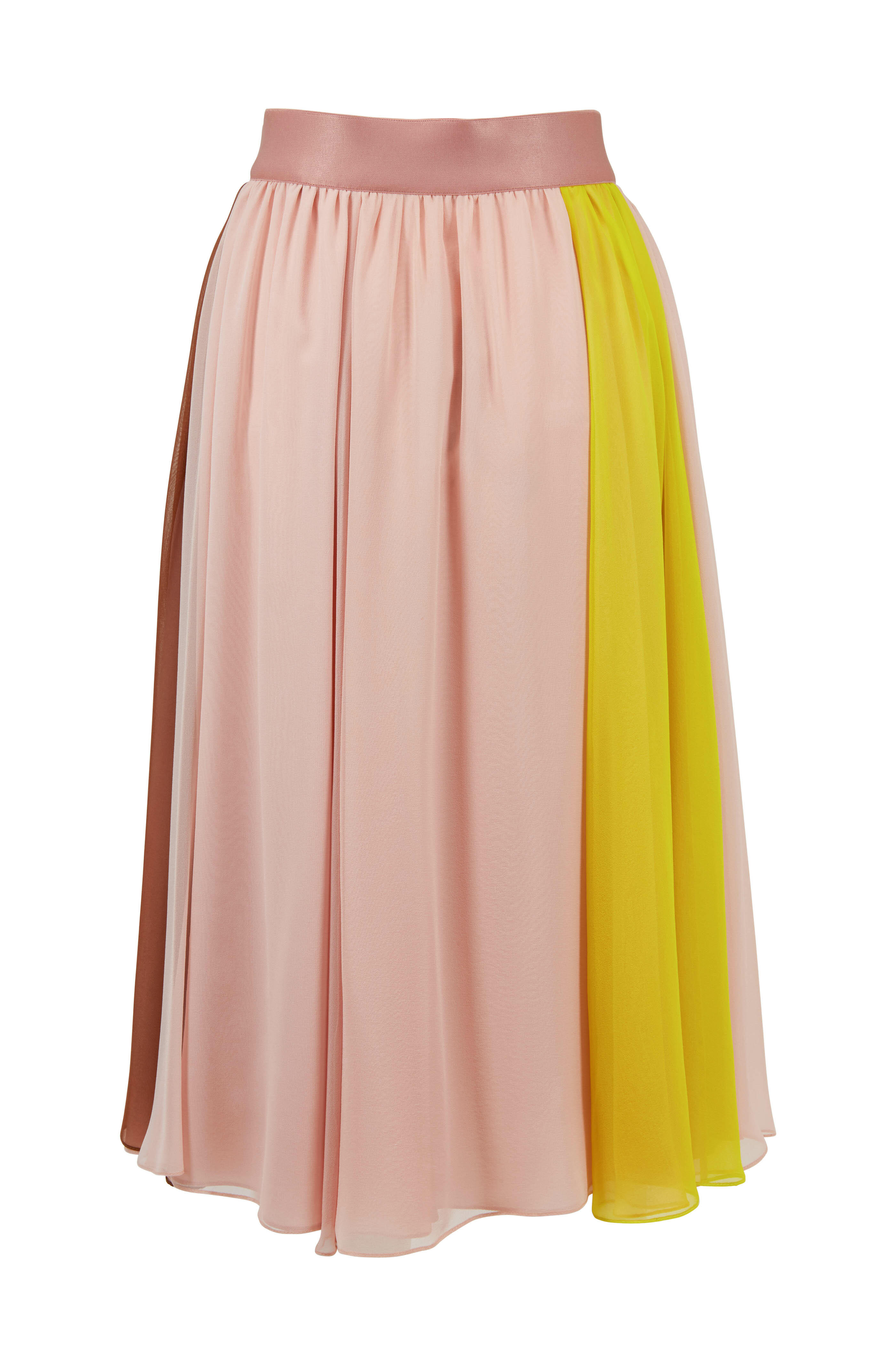 Banded, elasticized waist. Pull-on style. Made in the USA. 29" length. 100% silk. Dry clean.