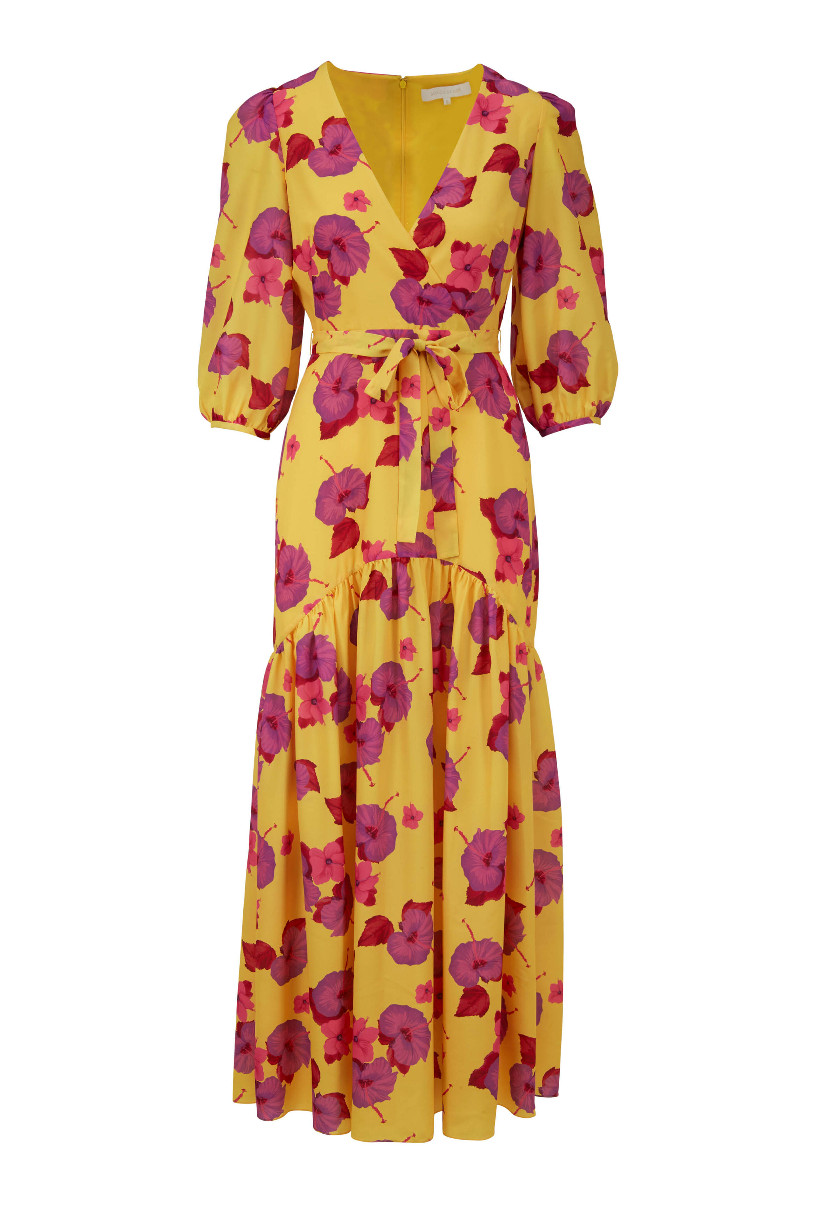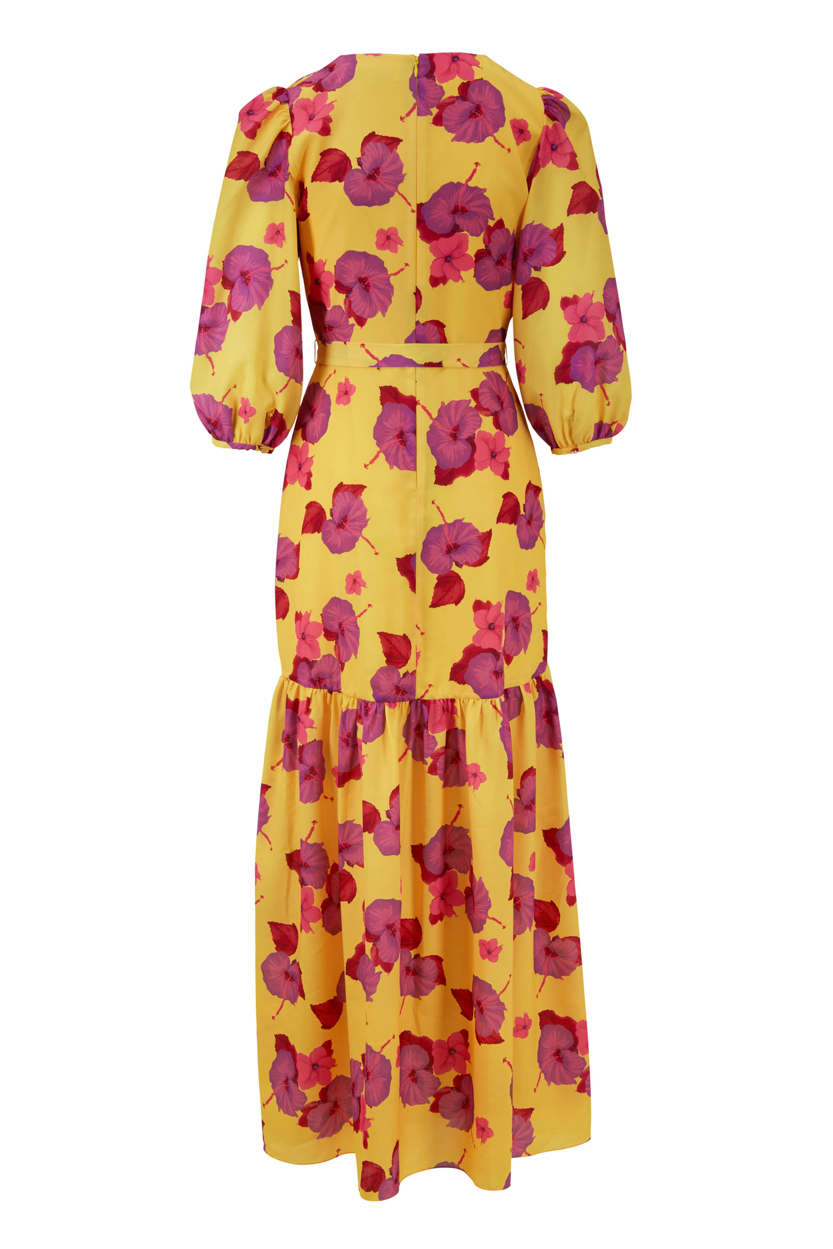 Salma Yellow & Fuchsia Hibiscus Maxi Dress