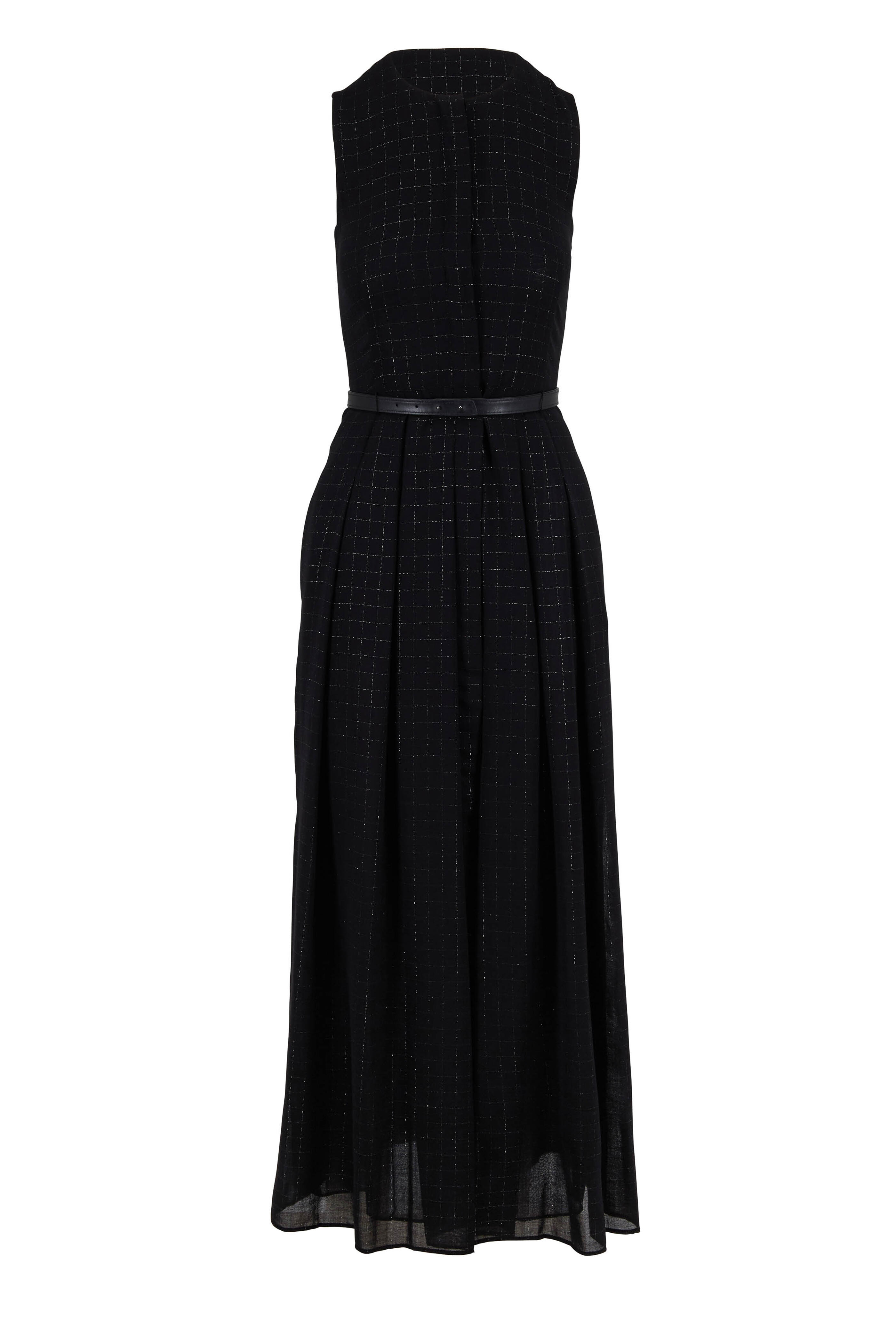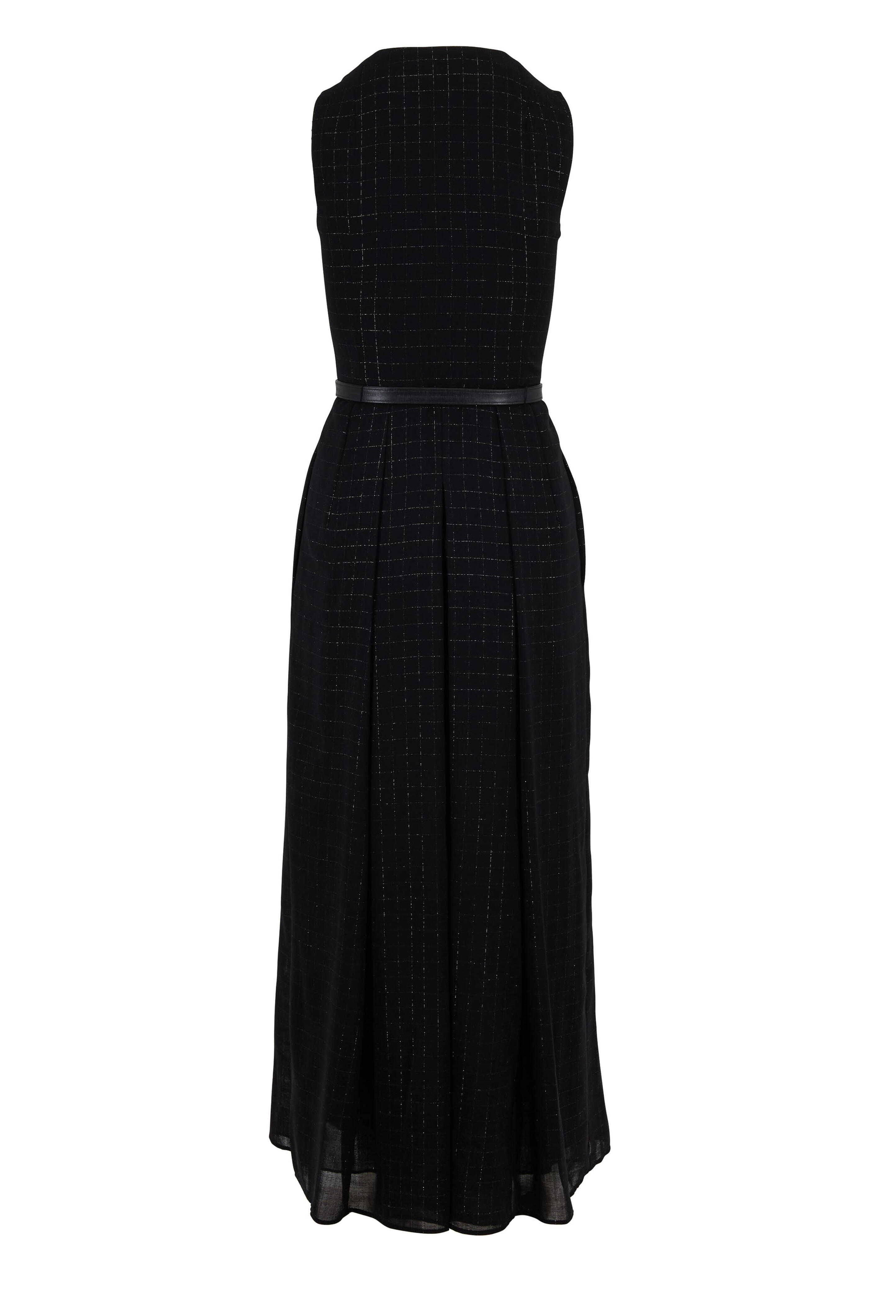 Black Wool Lurex Plaid Belted Sleeveless Dress