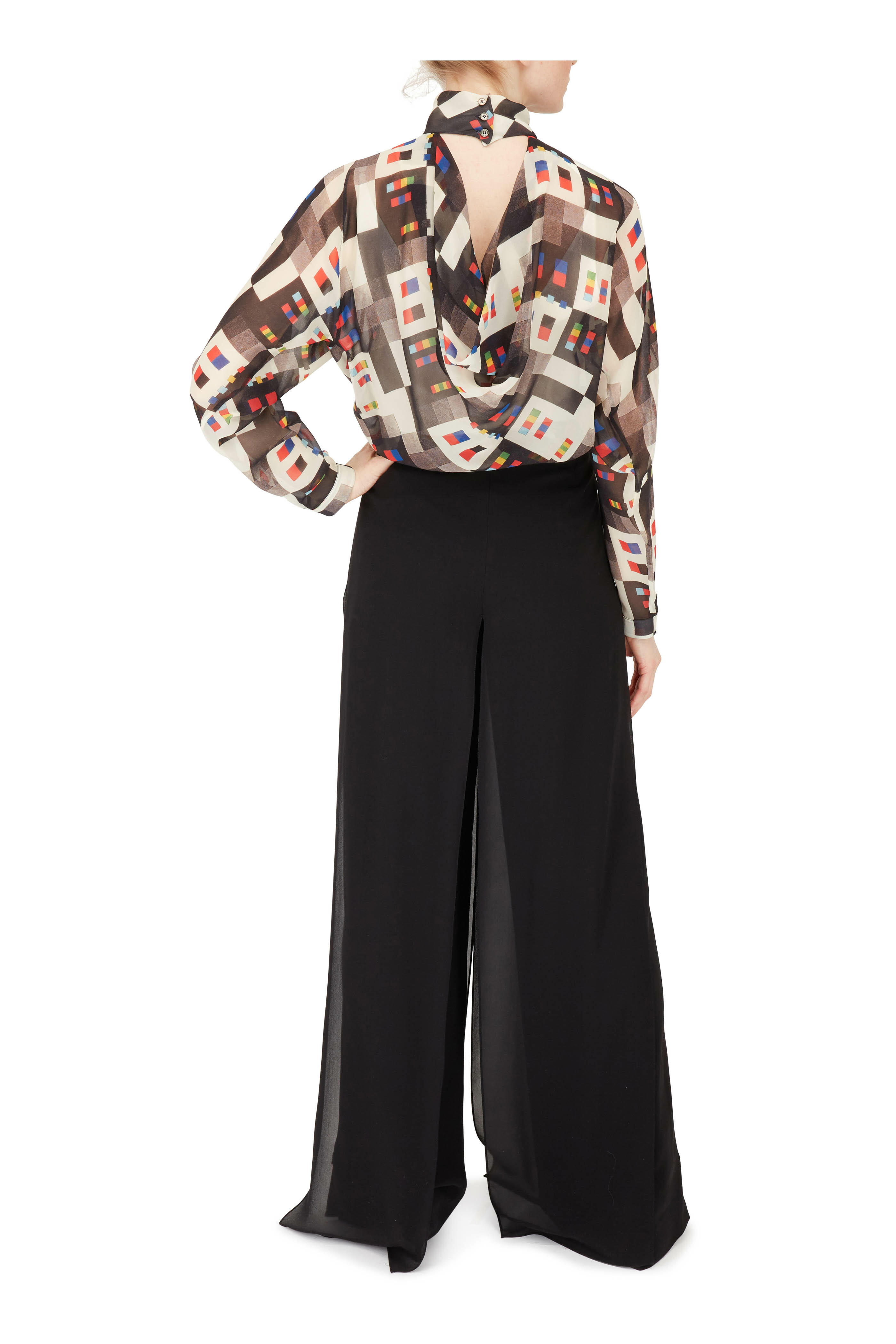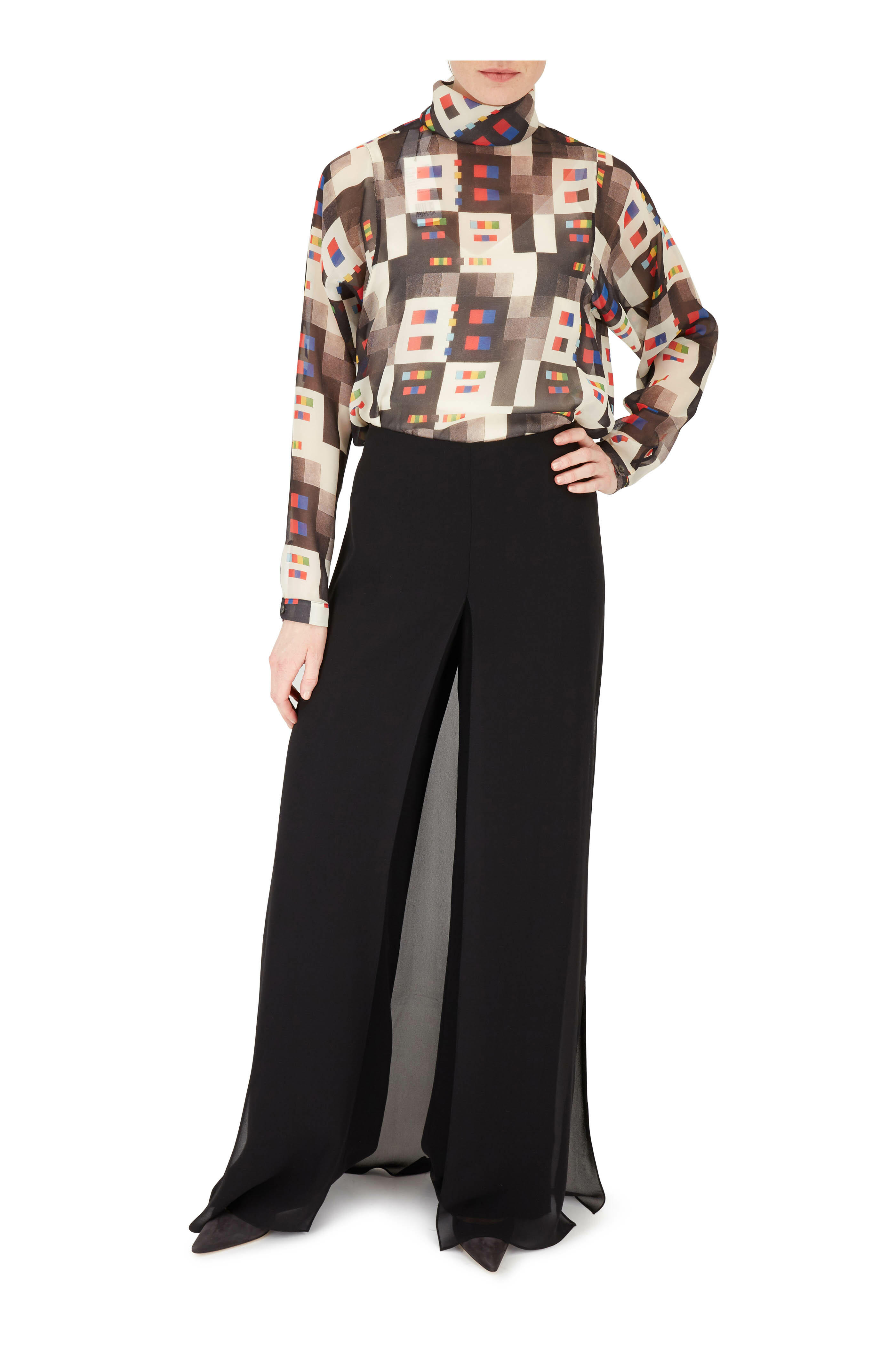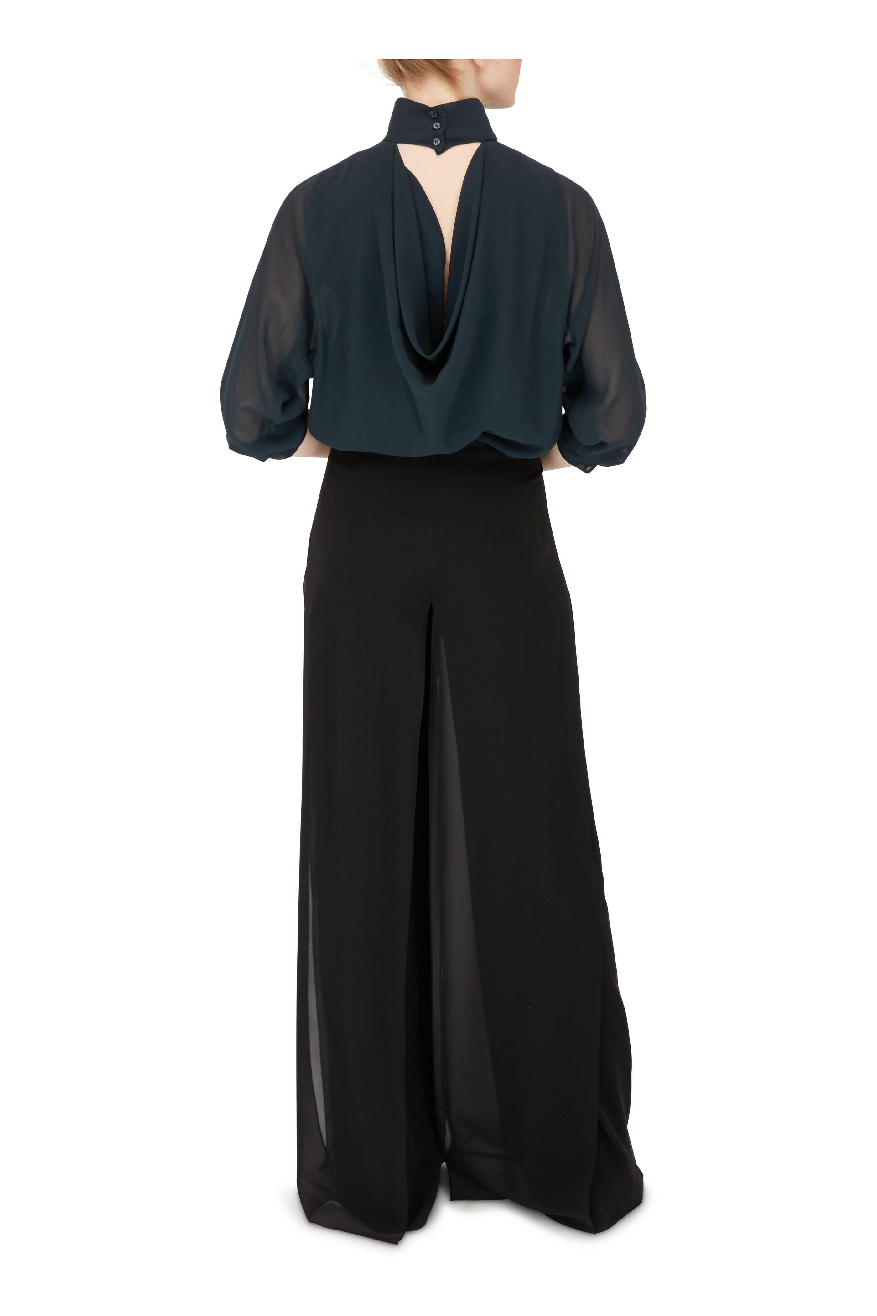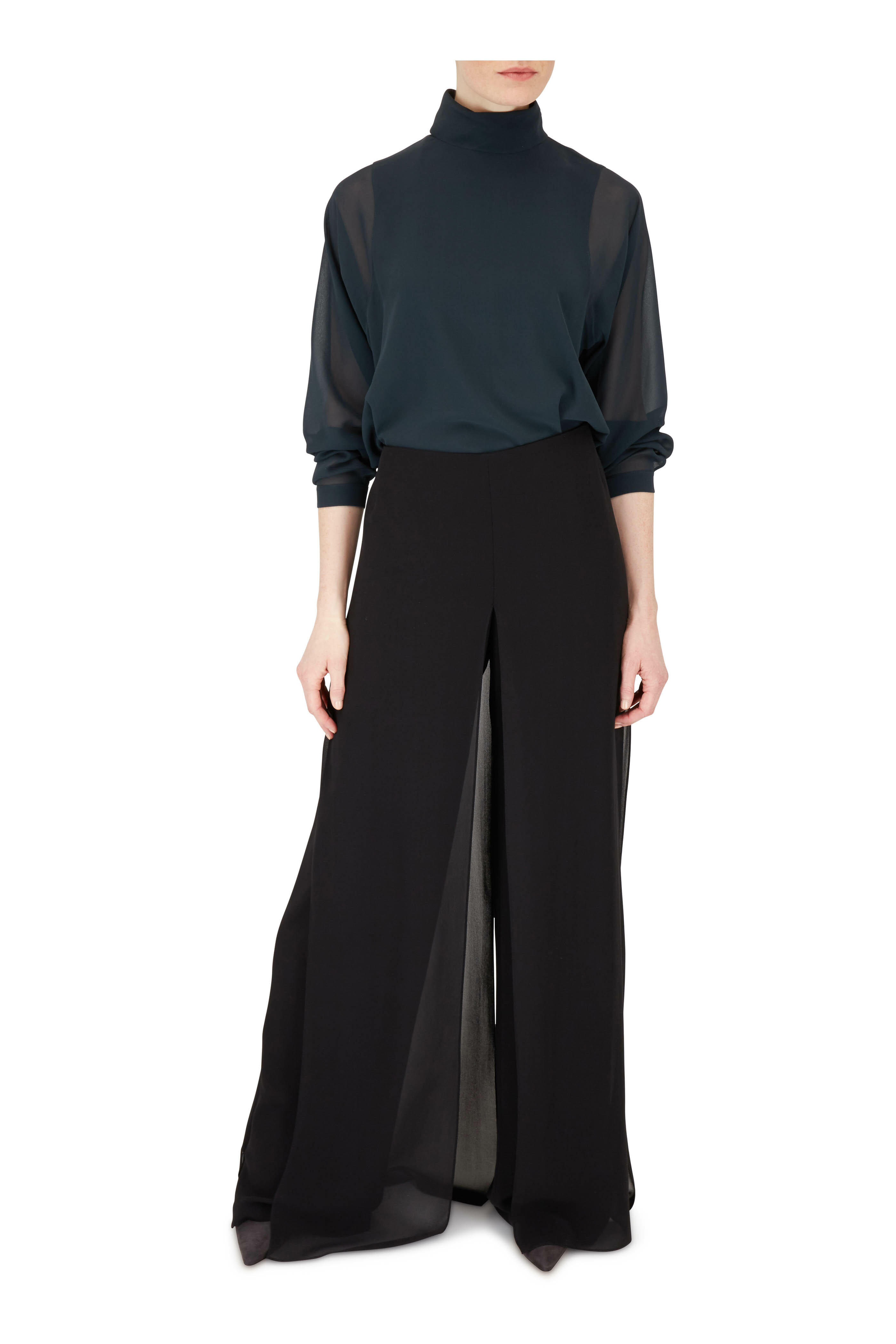 Carmen Black Silk Two-Layer Wide Leg Pant