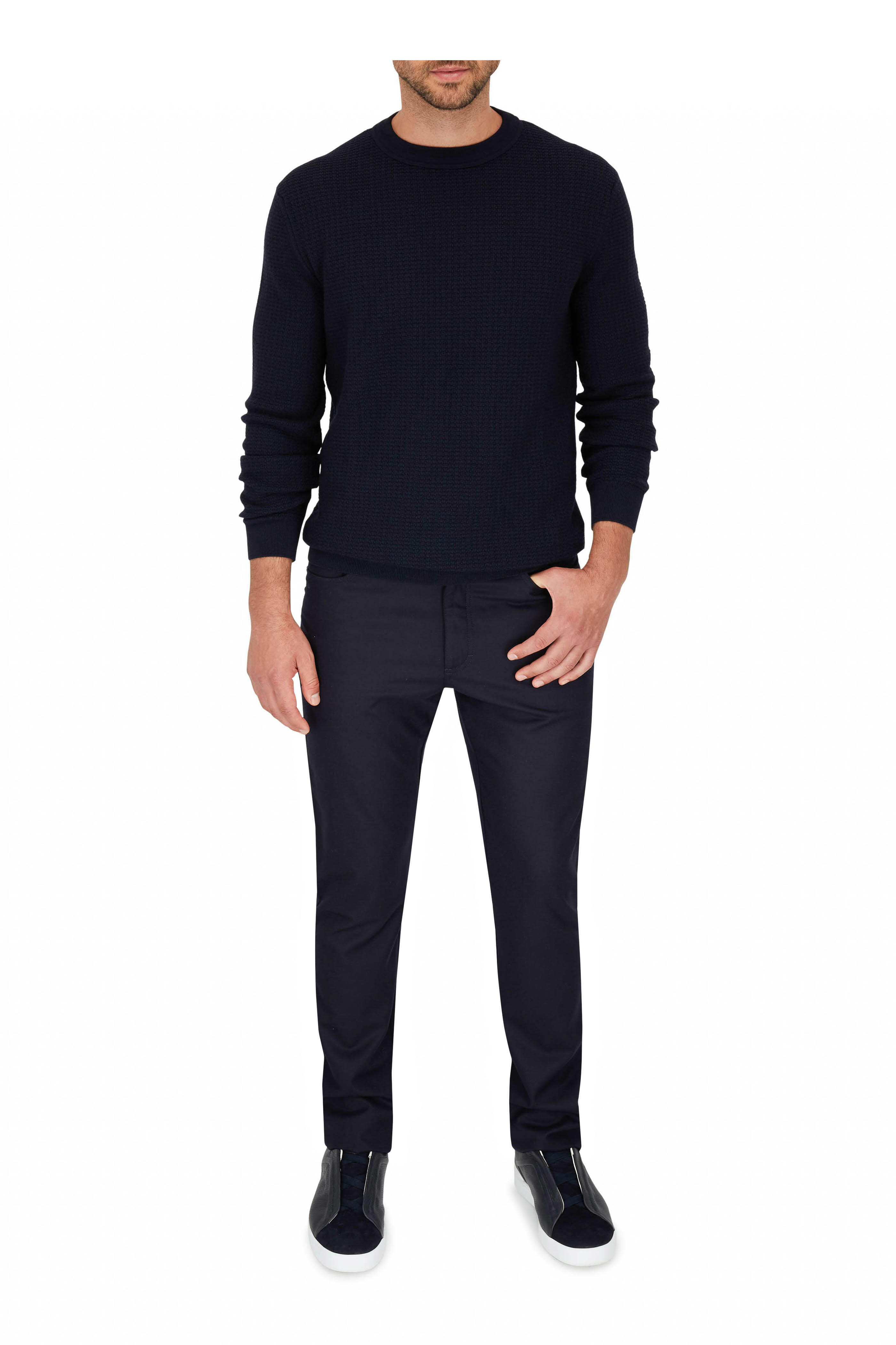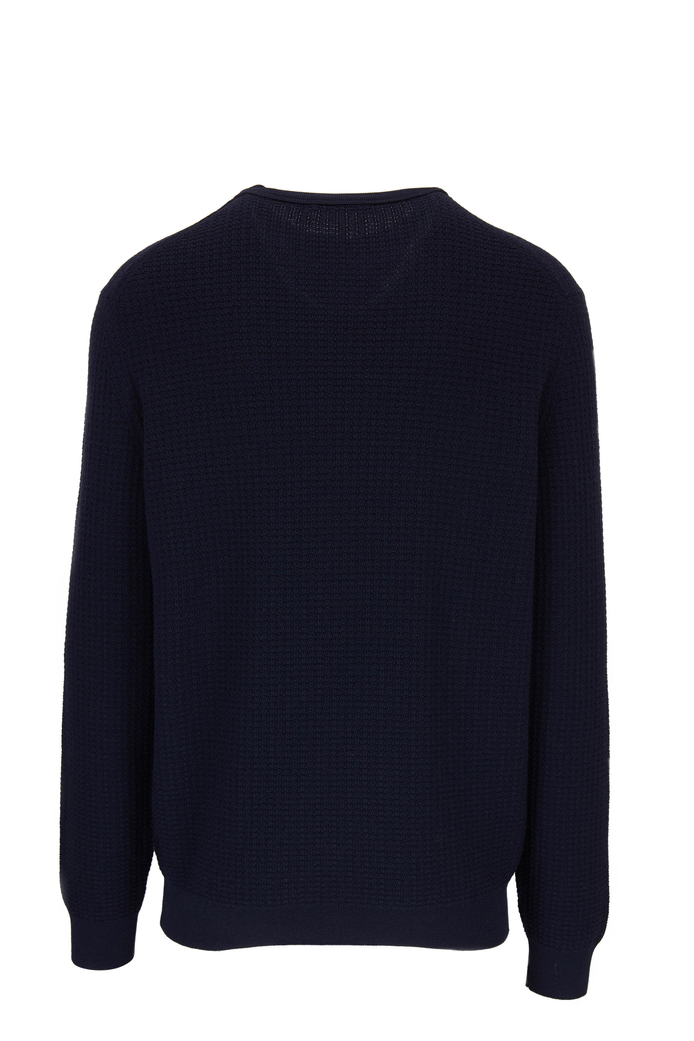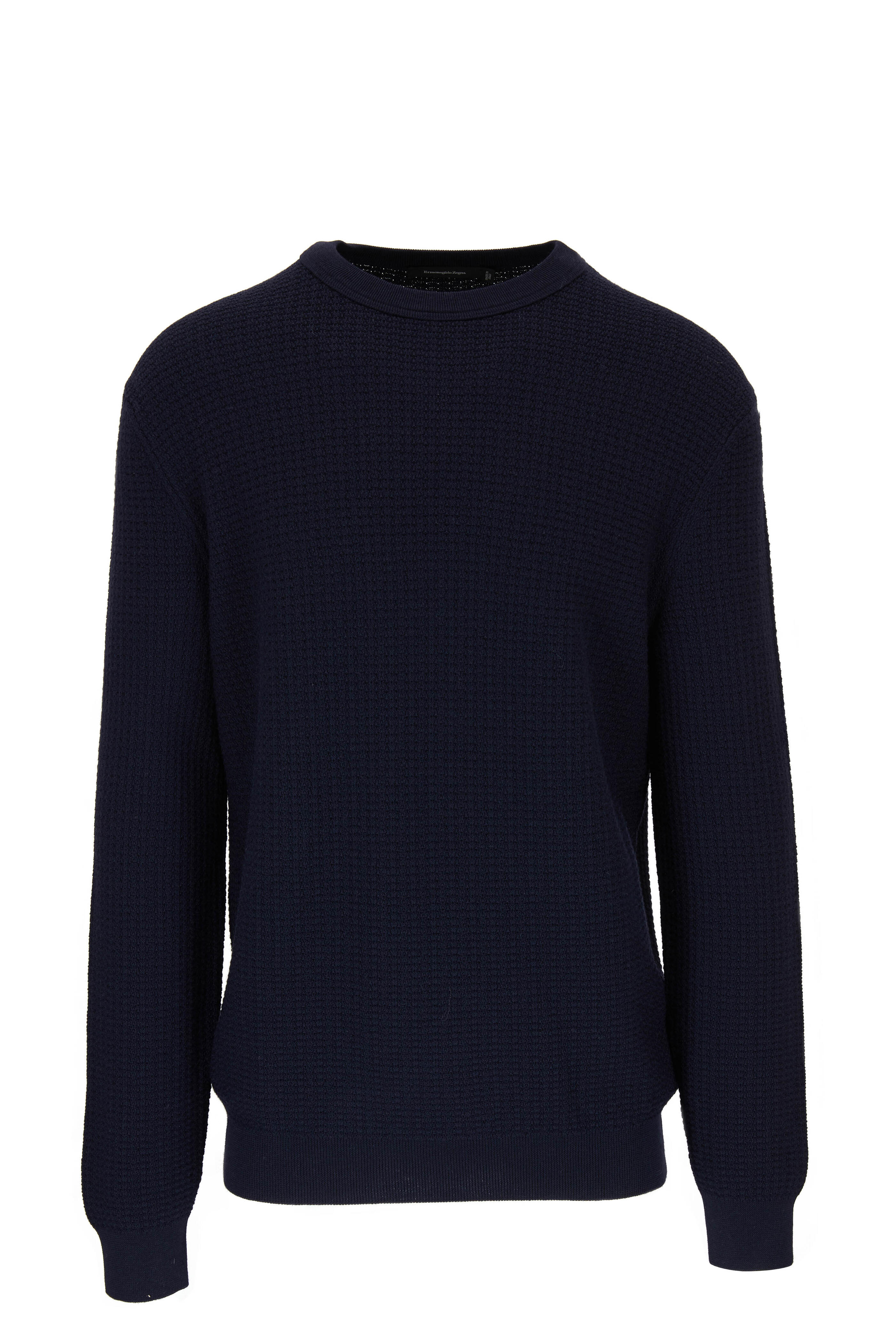 Navy Waffle Knit Crewneck Sweater