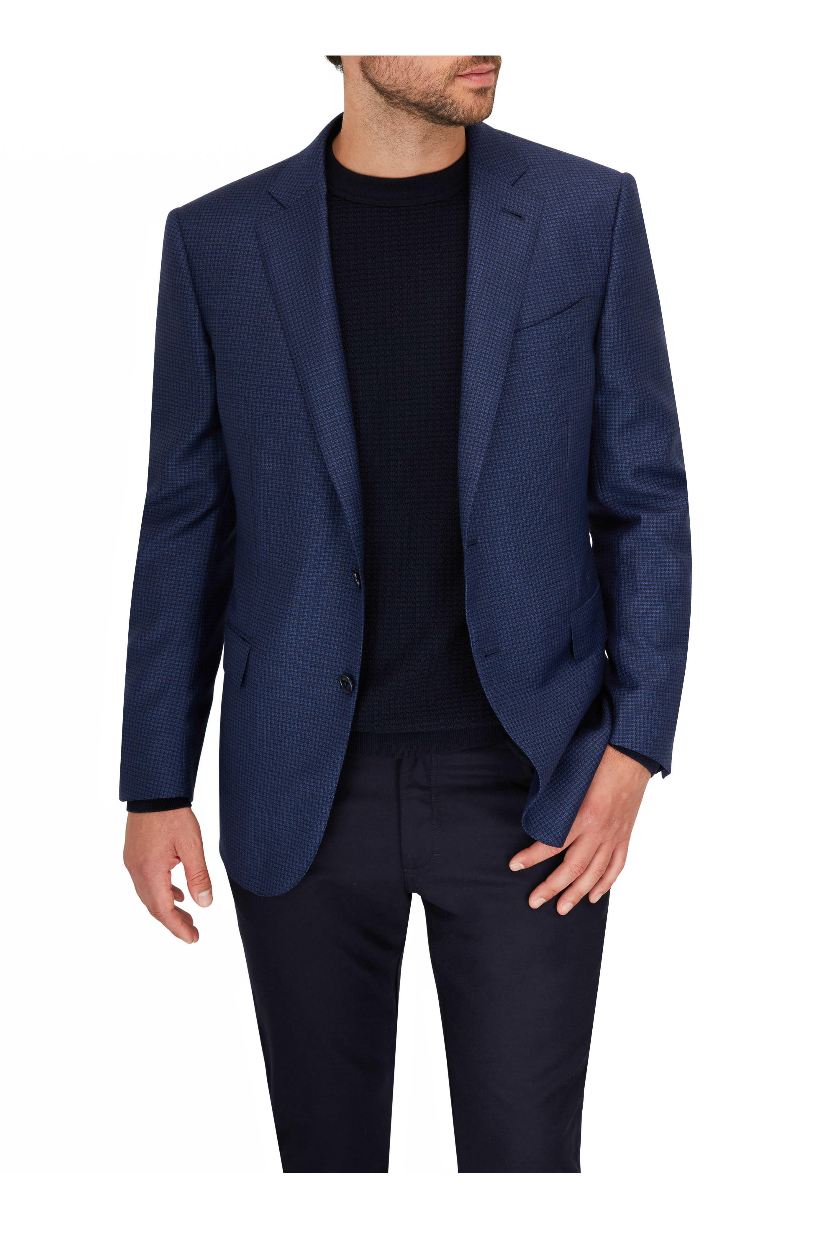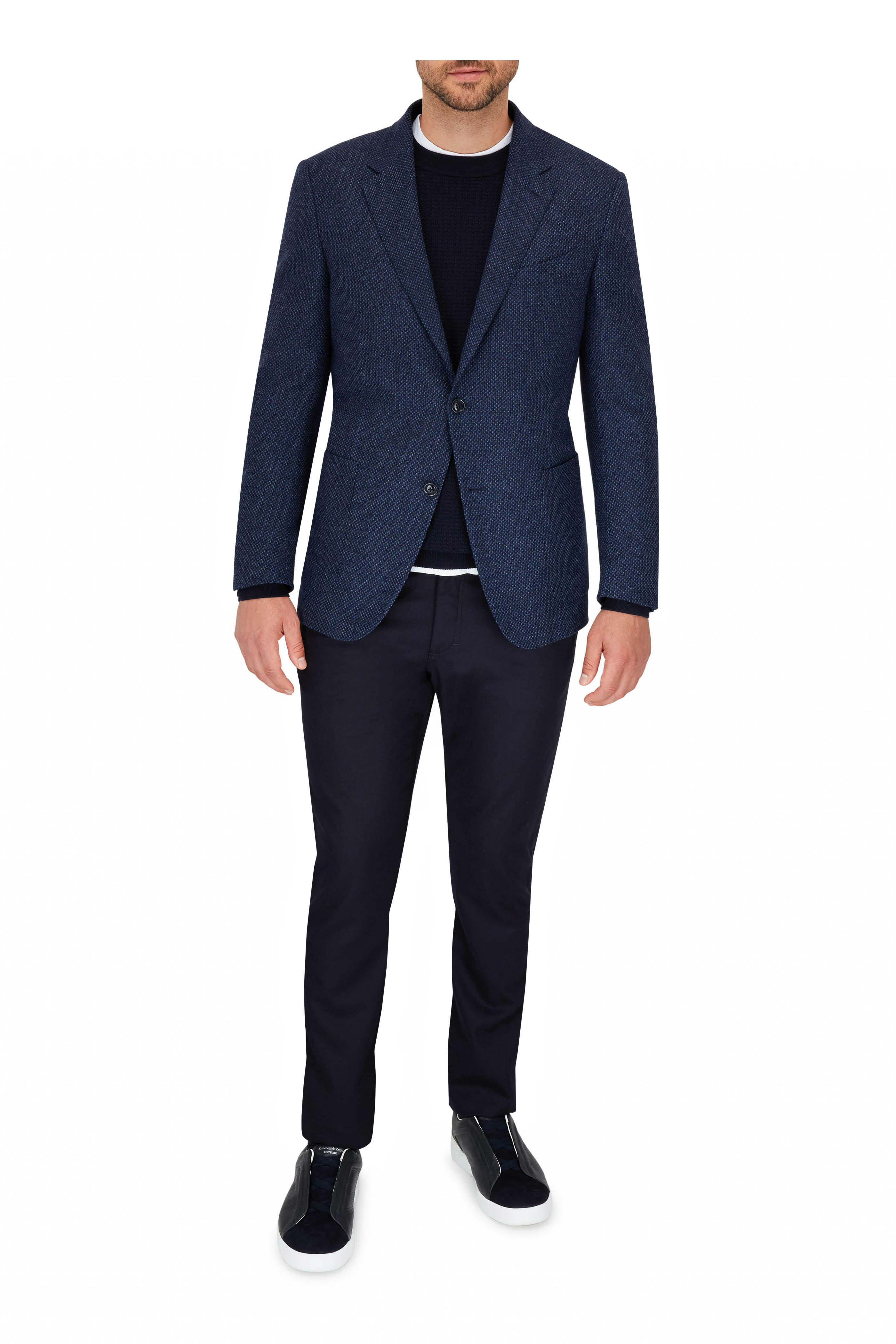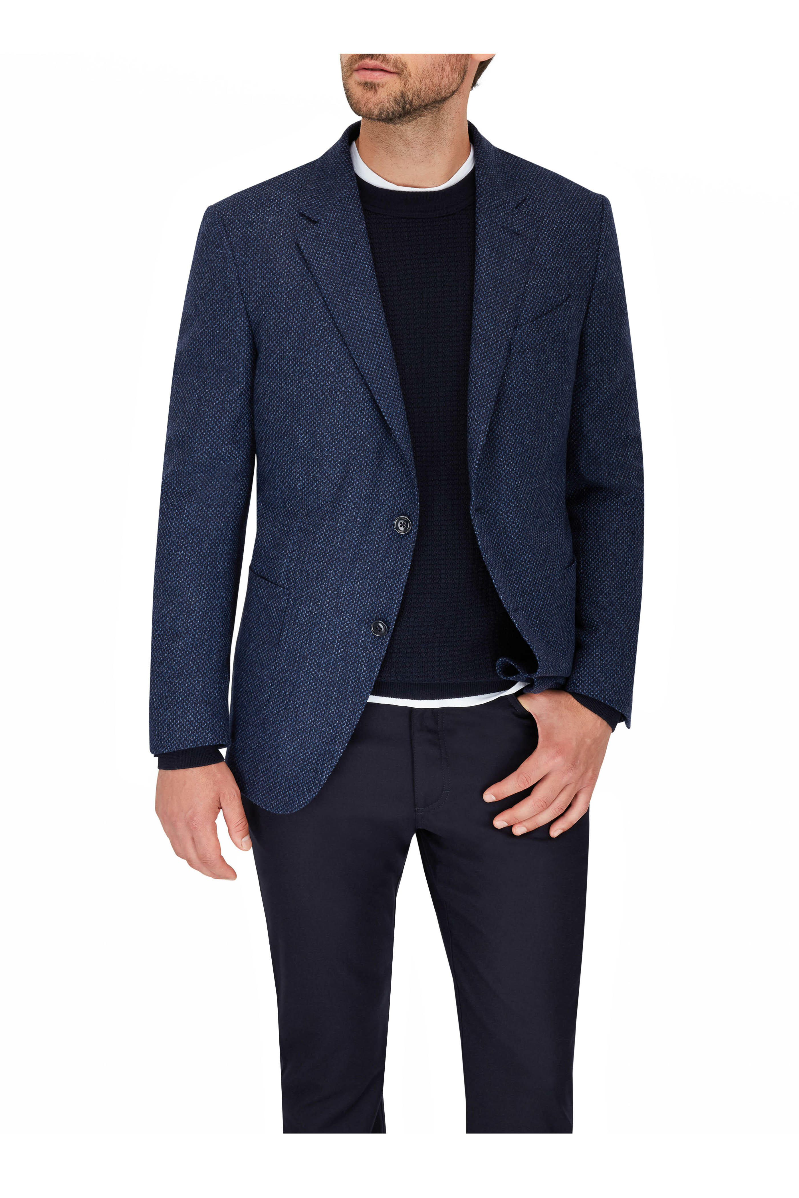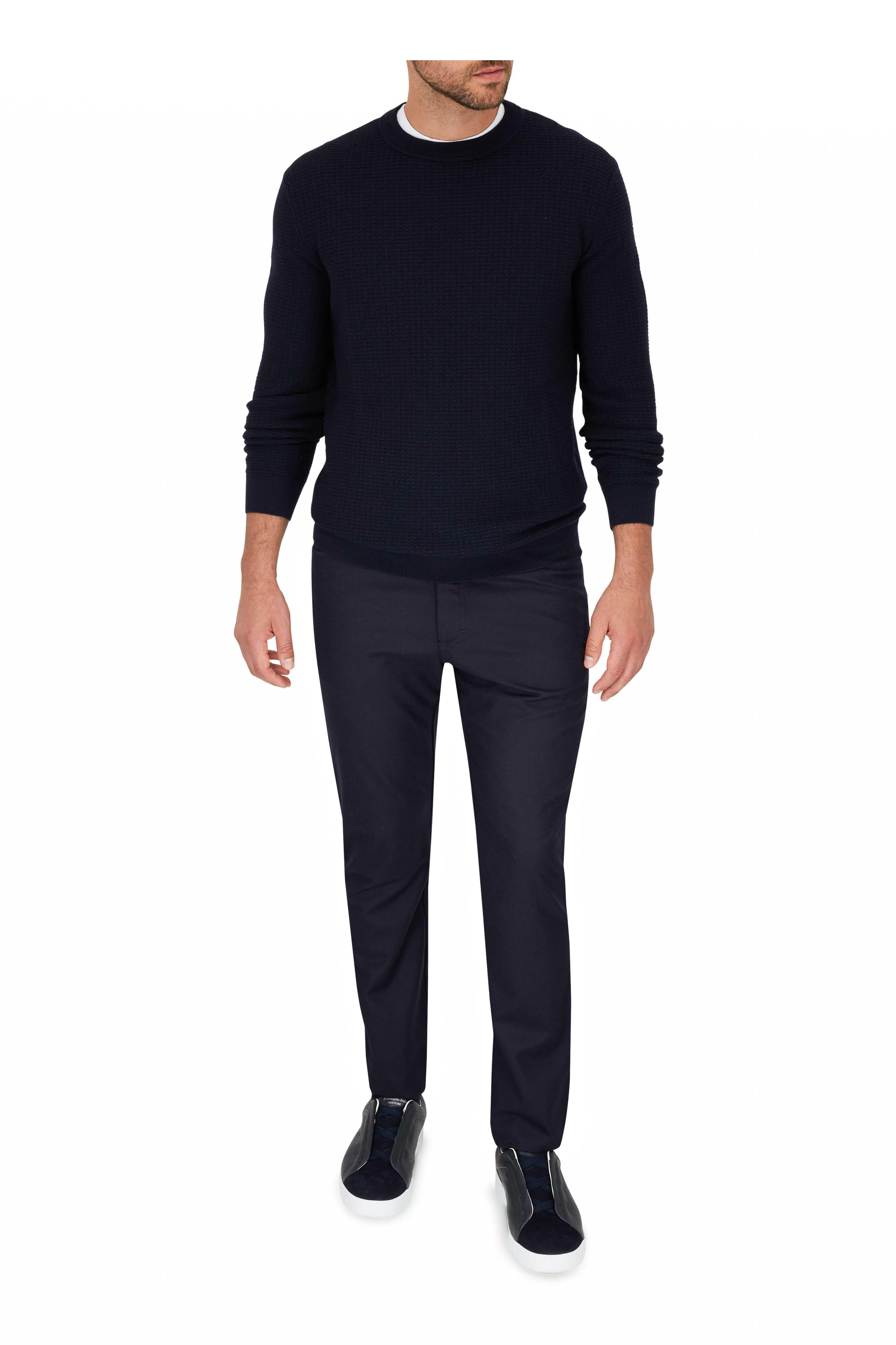 Navy Waffle Knit Crewneck Sweater
