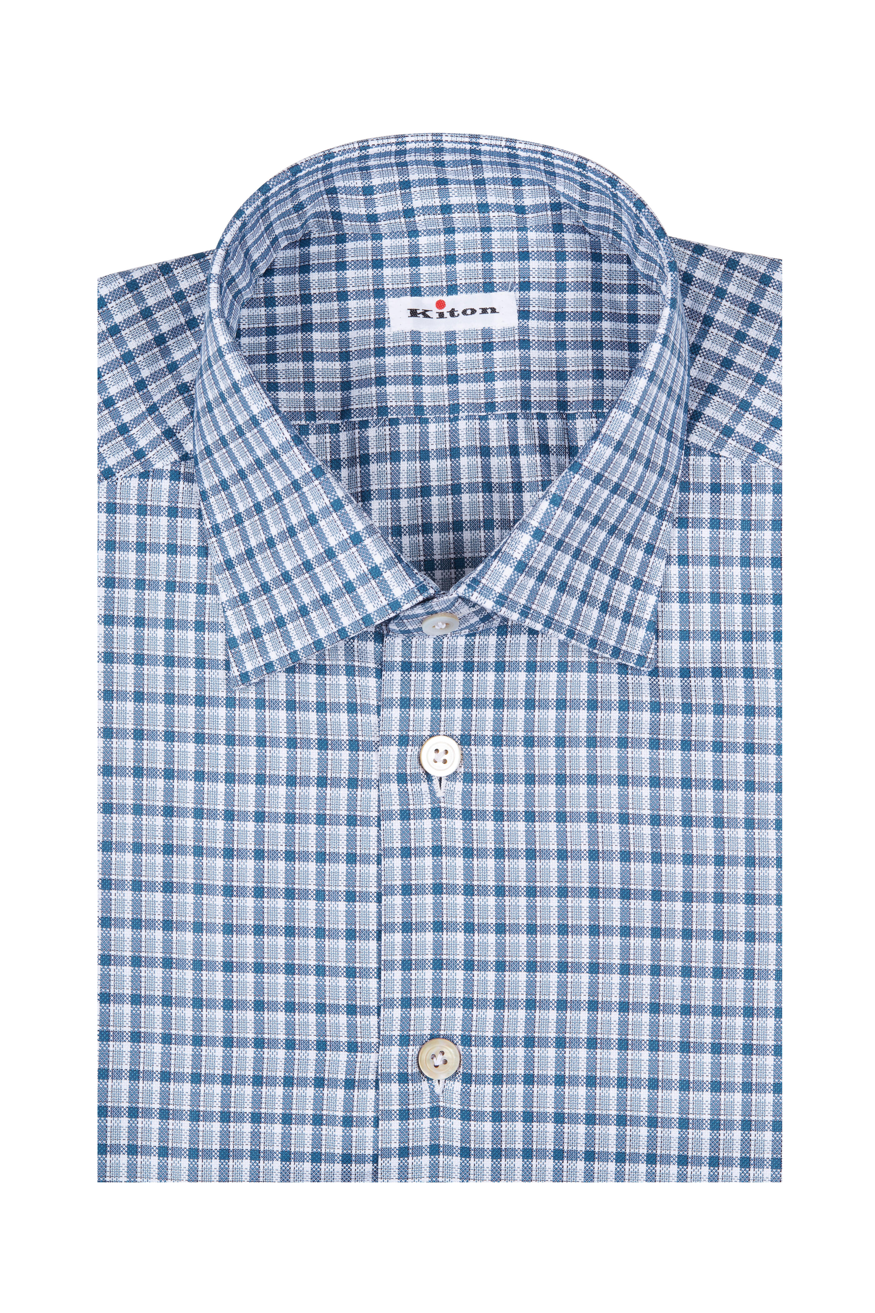 Spread collar. Mitered cuffs. Made in Italy. 100% cotton. Machine wash.