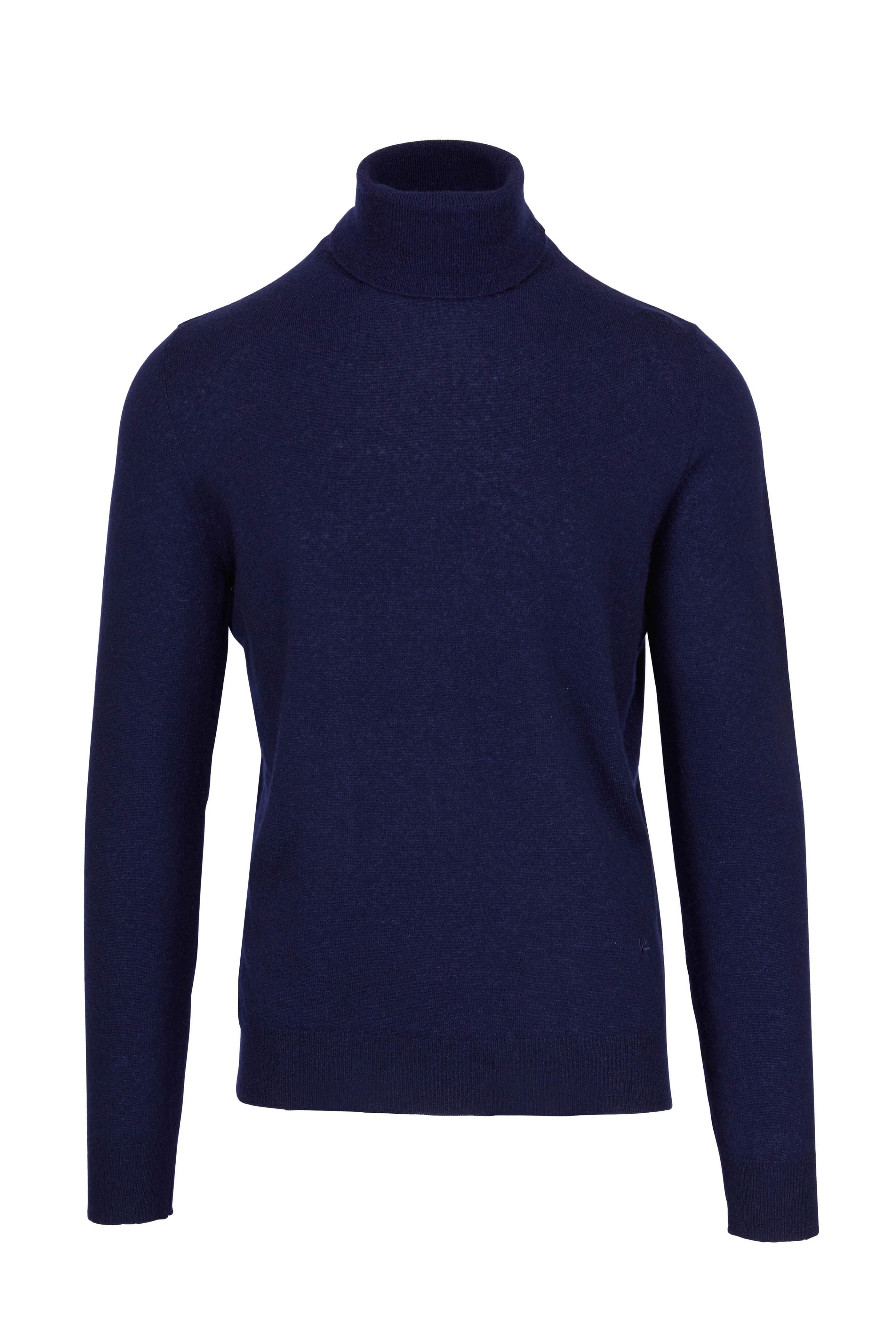 Navy Cashmere & Silk Turtleneck Sweater