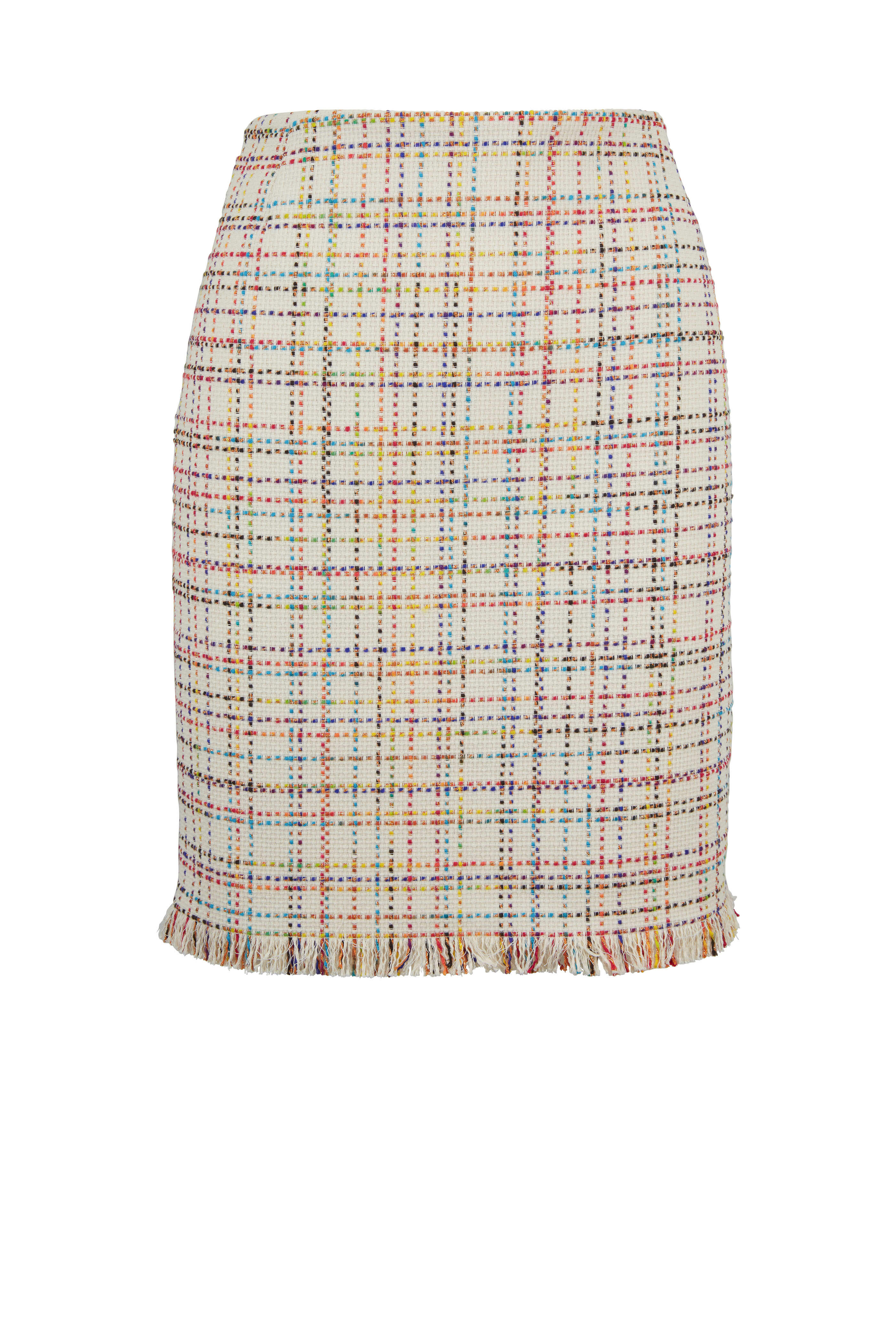 Cream Multicolor Tweed Lurex Fringed Mini Skirt