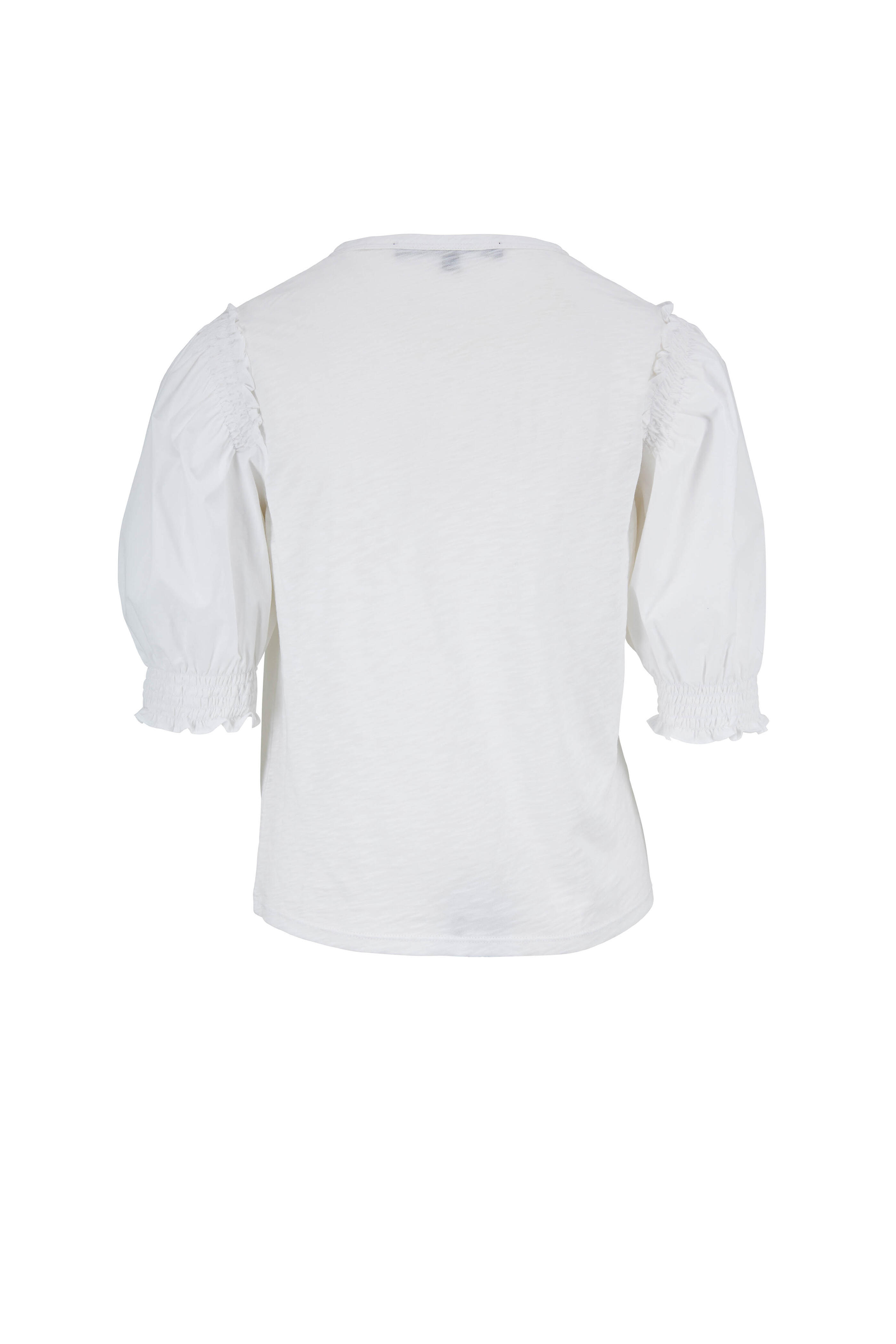 Crewneck. Elasticized cuffs. Made in Peru. 100% pima cotton. Machine wash.