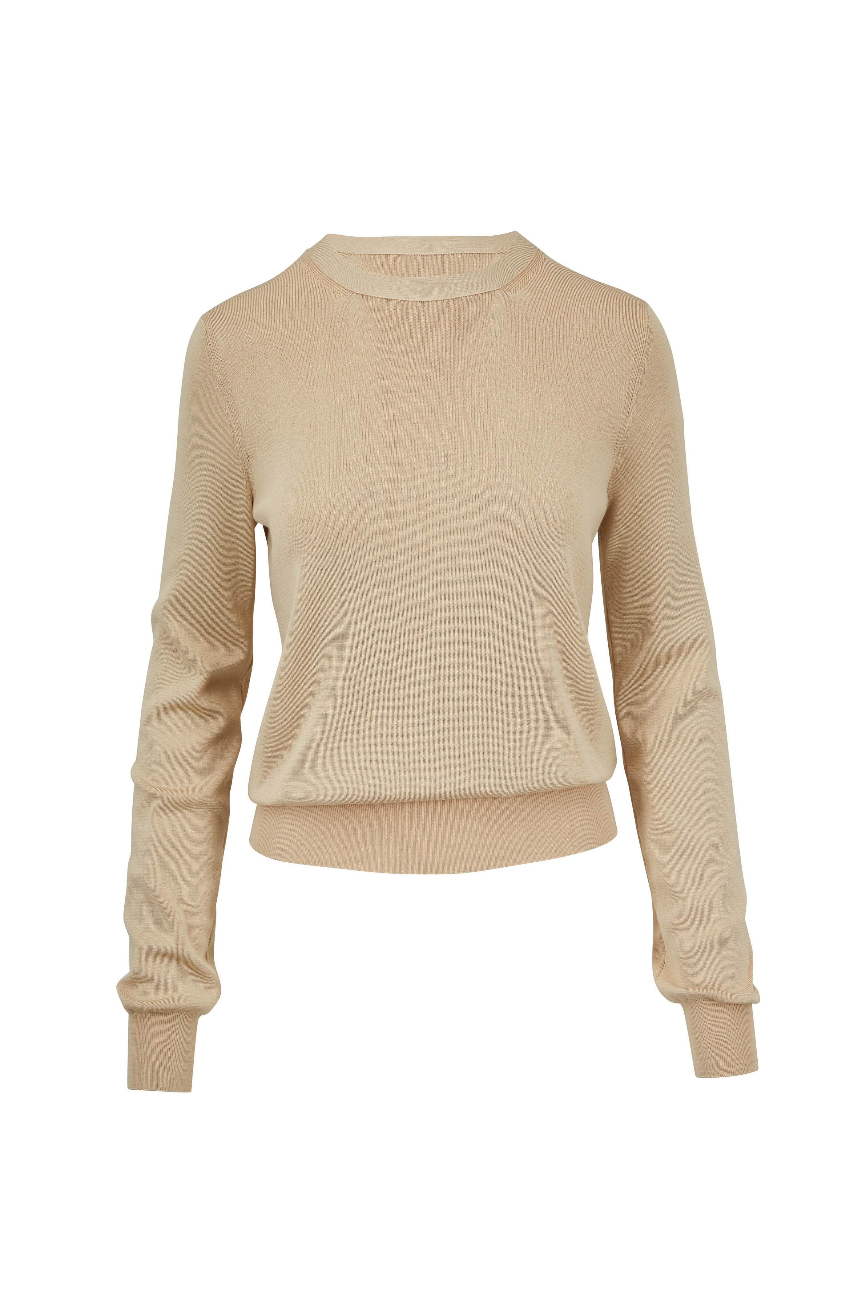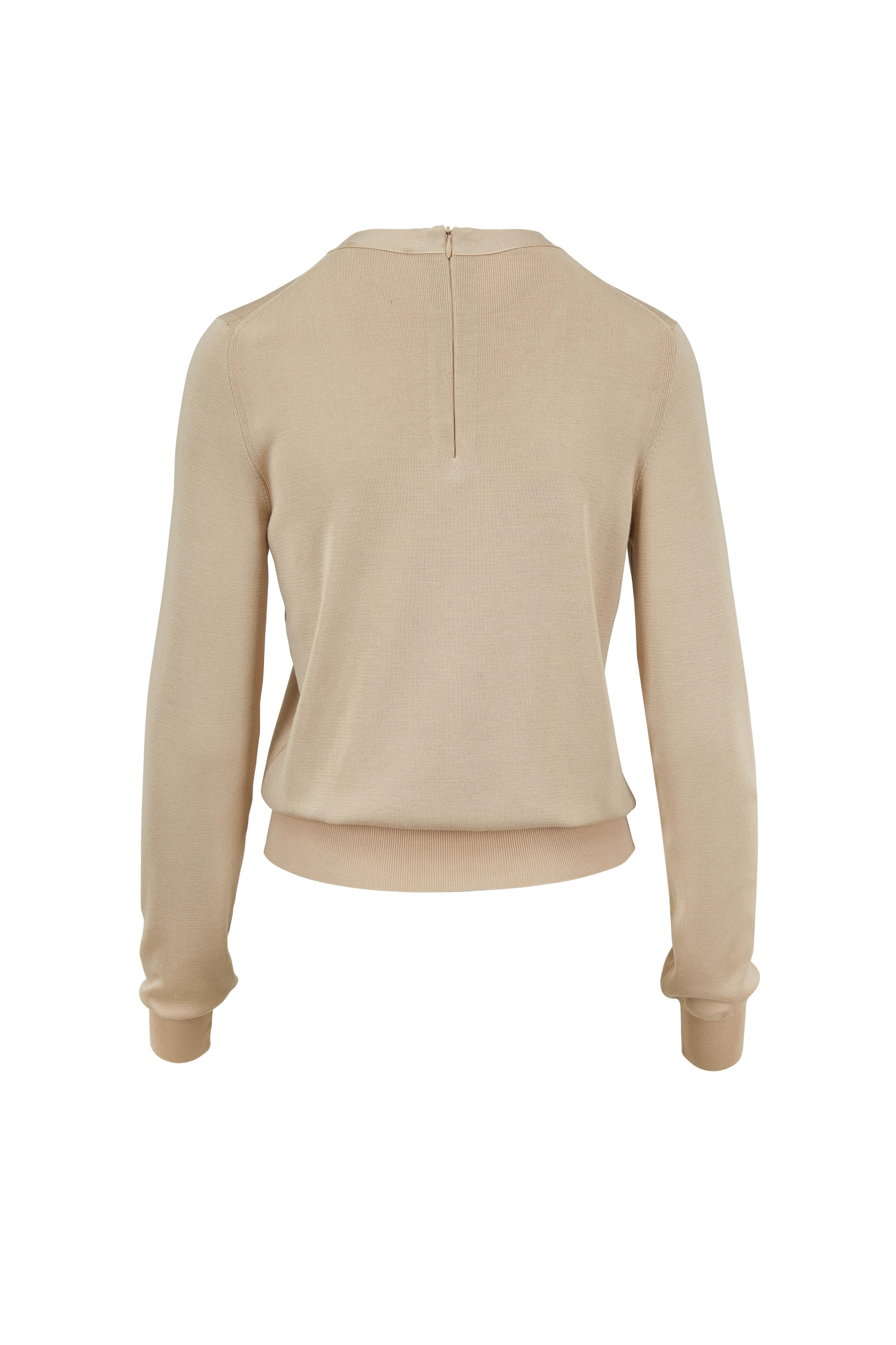 Raffi Khaki Superfine Silk Zip-Back Sweater