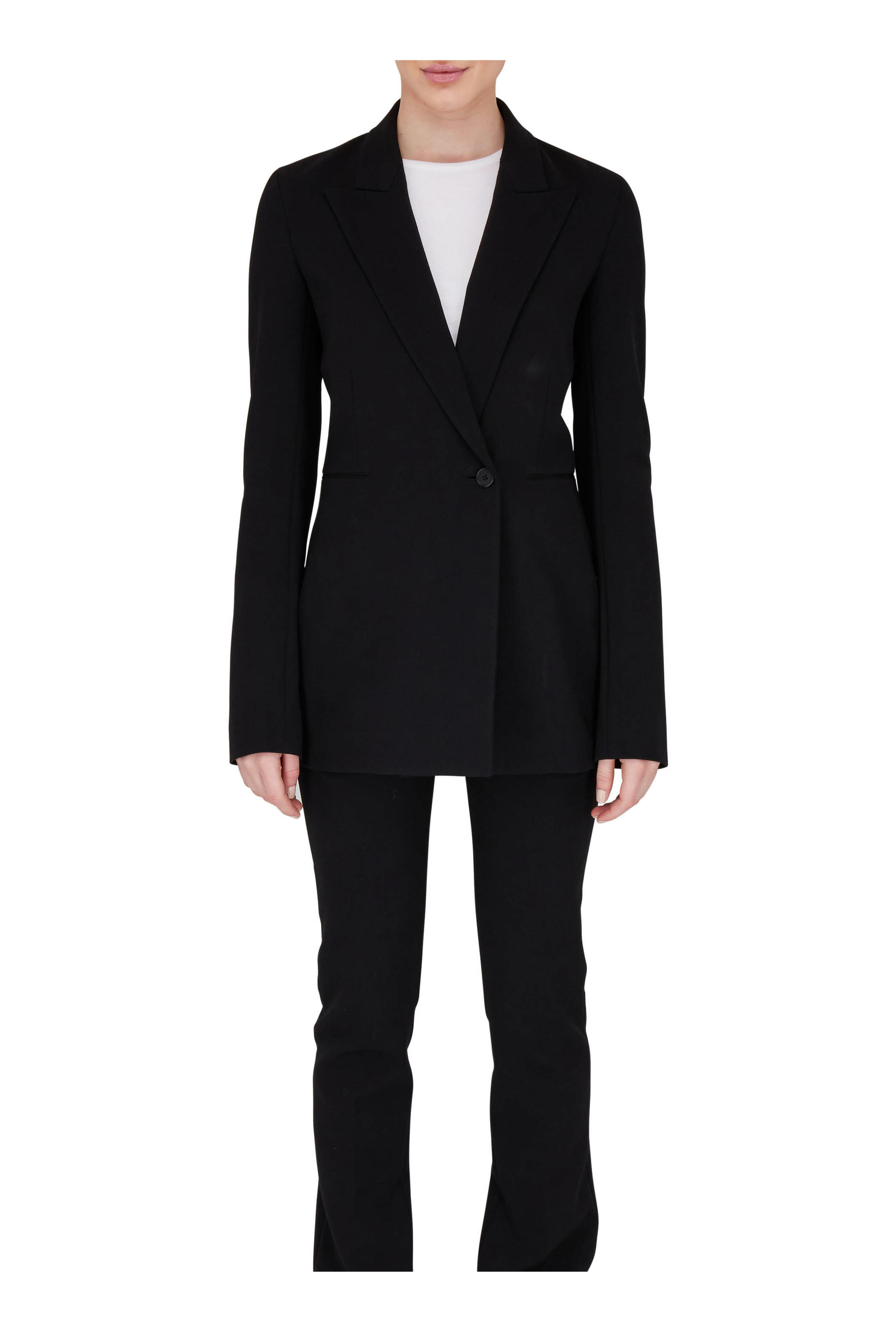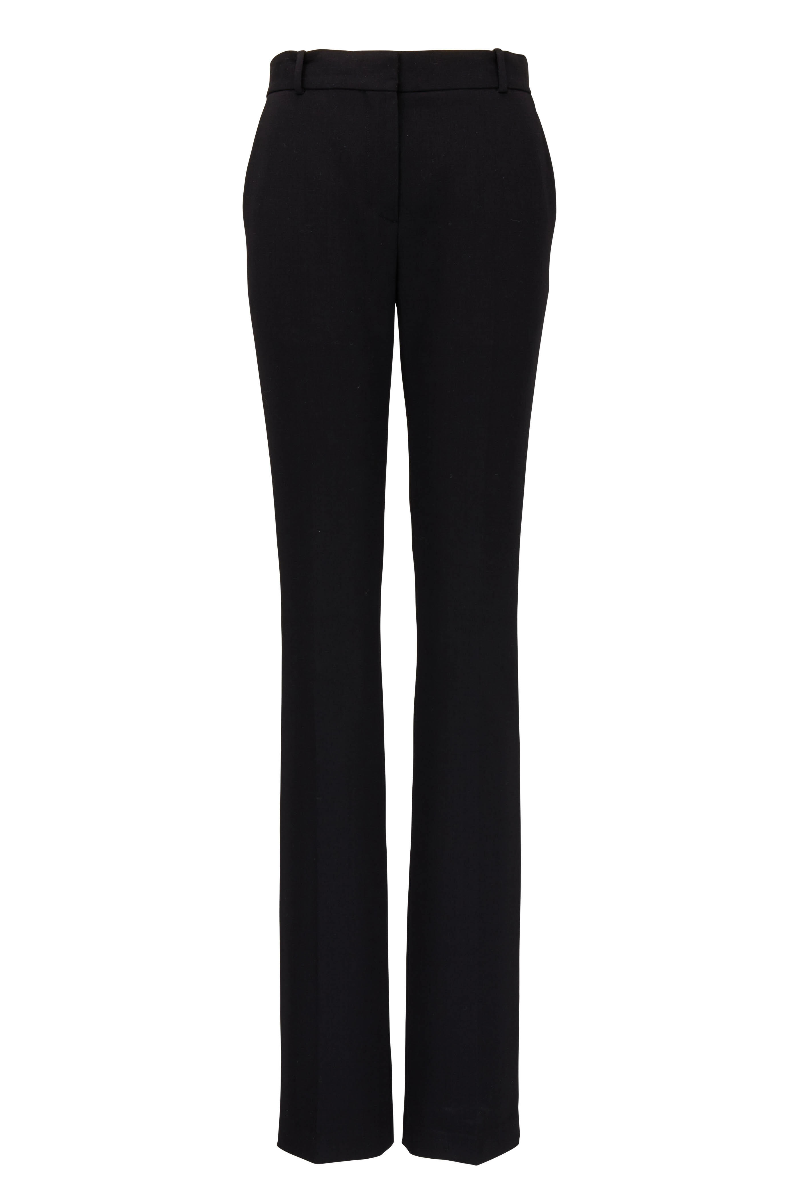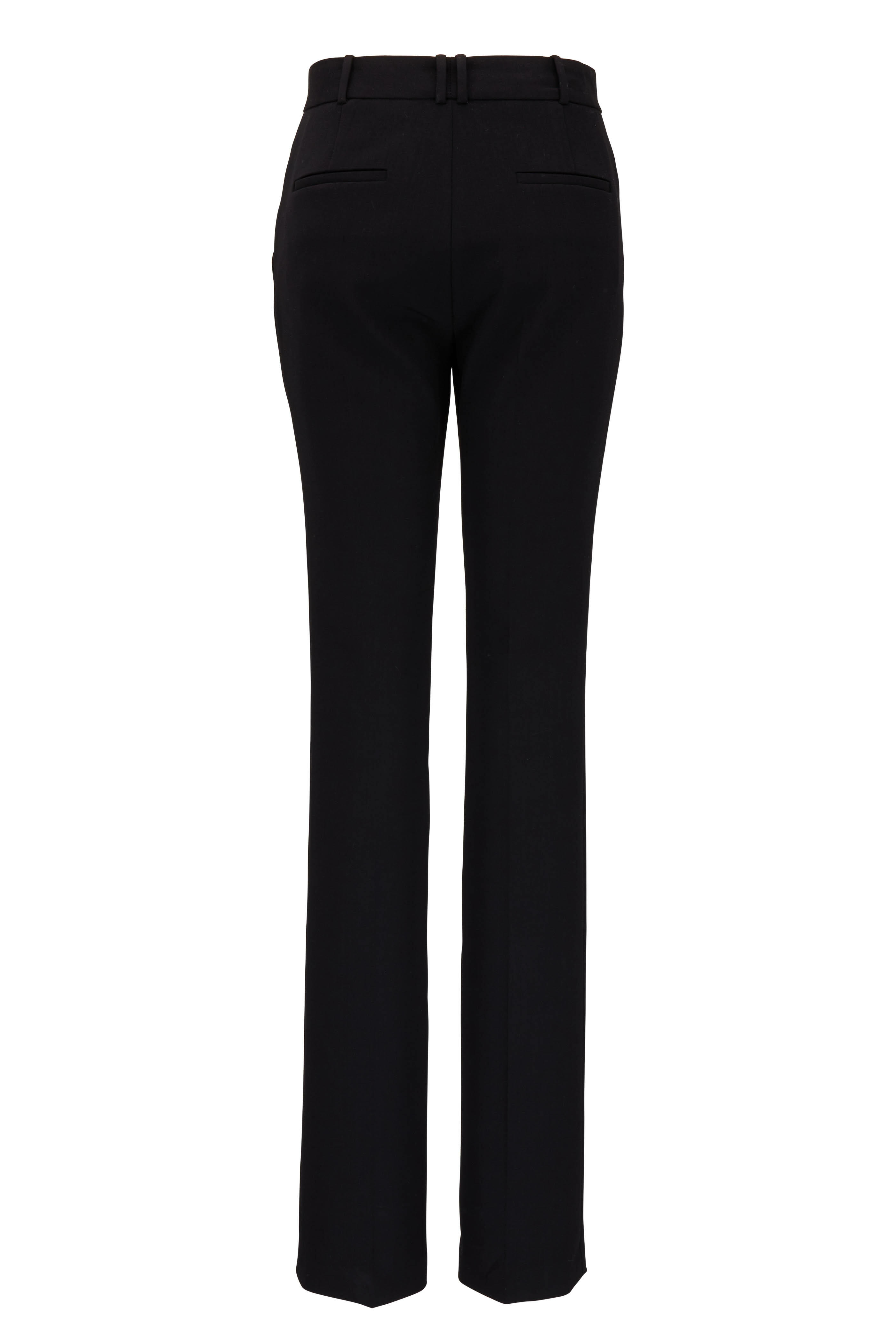 Wool. Banded waist; belt loops. Front zip closure; concealed hook and eye. Front slash pockets, back welt pockets. Made in the USA. Dry clean.