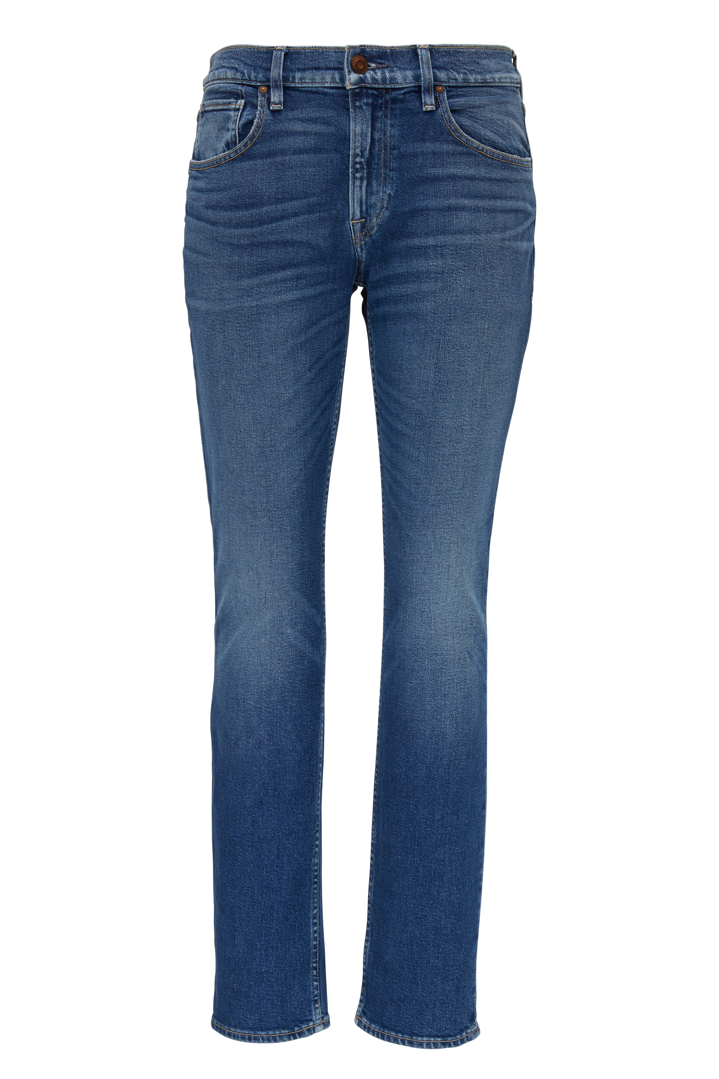 Five pocket styling. Whisker and fade detailing. Imported. Color: Titan. Inseam: 34". Leg opening: 15". Rise: 12". 96% cotton, 3% polyester, 1% elastane. Machine wash.