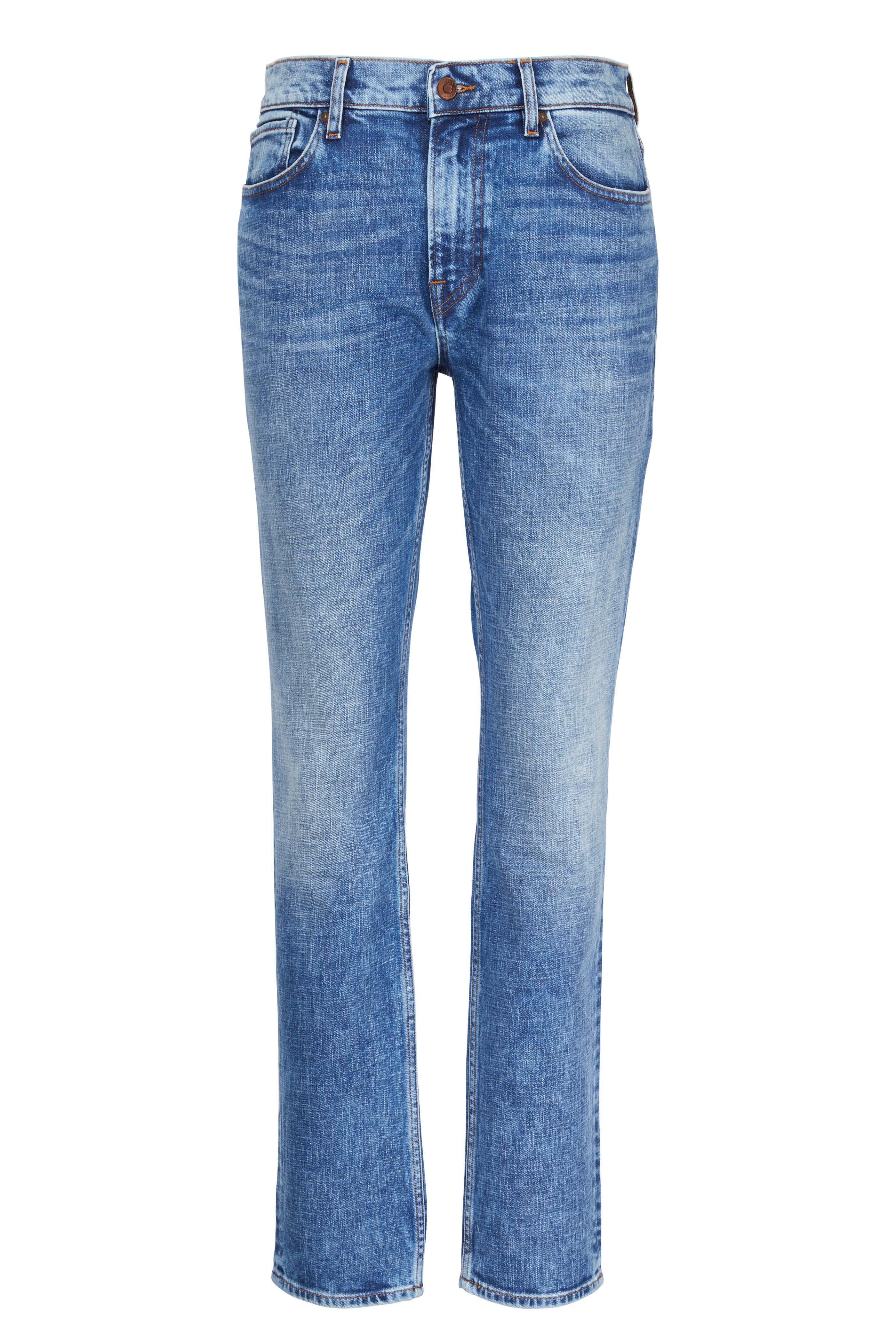 Five pocket styling. Contrast stitching. Imported. Color: Axl Rising. Inseam: 34". Leg opening: 14". Rise: 12". 99% cotton, 1% elastane. Machine wash.