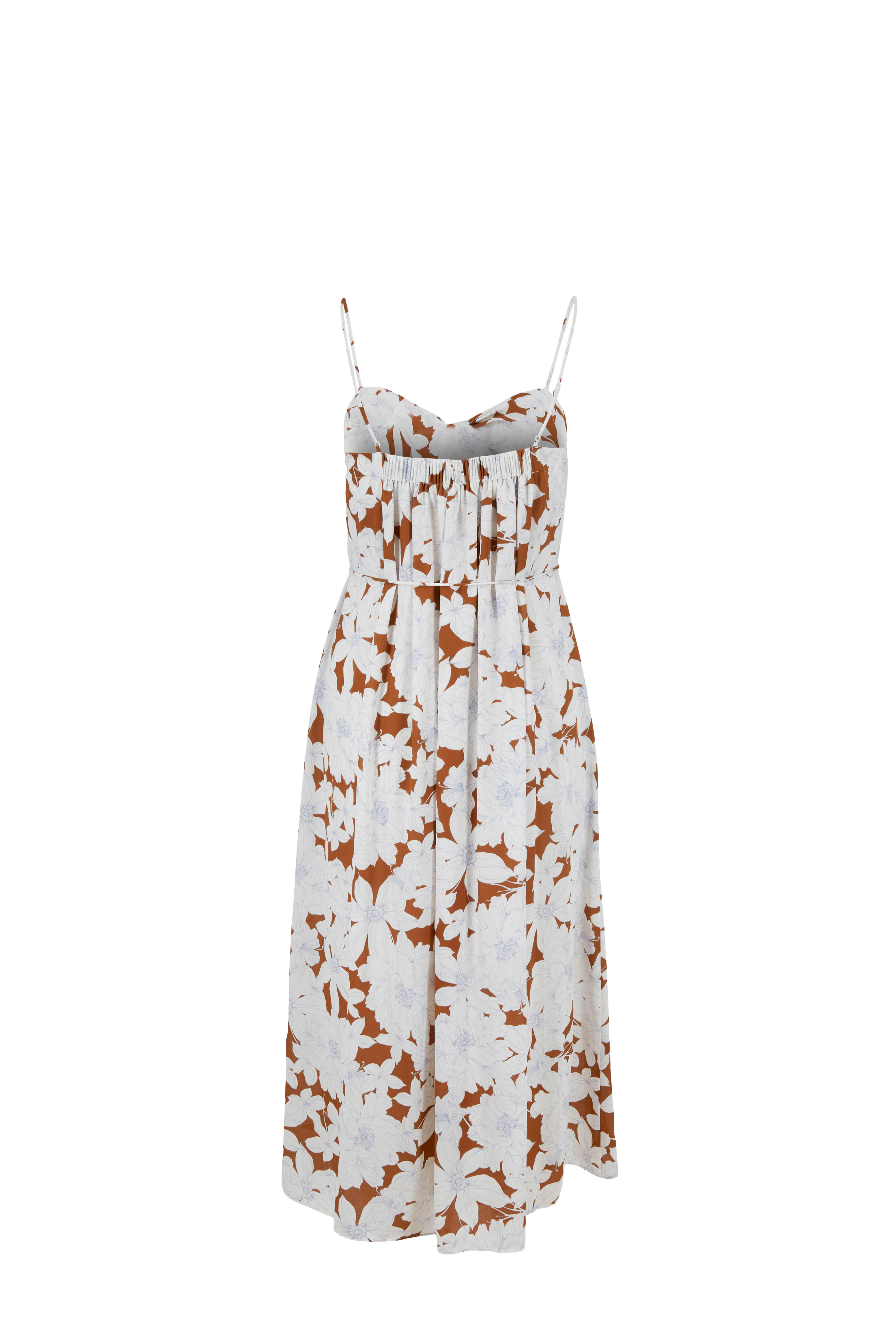 Twist, v-neckline; v-back. Slip over style; removable self tie. Thin, adjustable straps. Side seam pockets. Imported. 49" shoulder to hem. 100% polyester. Hand wash.