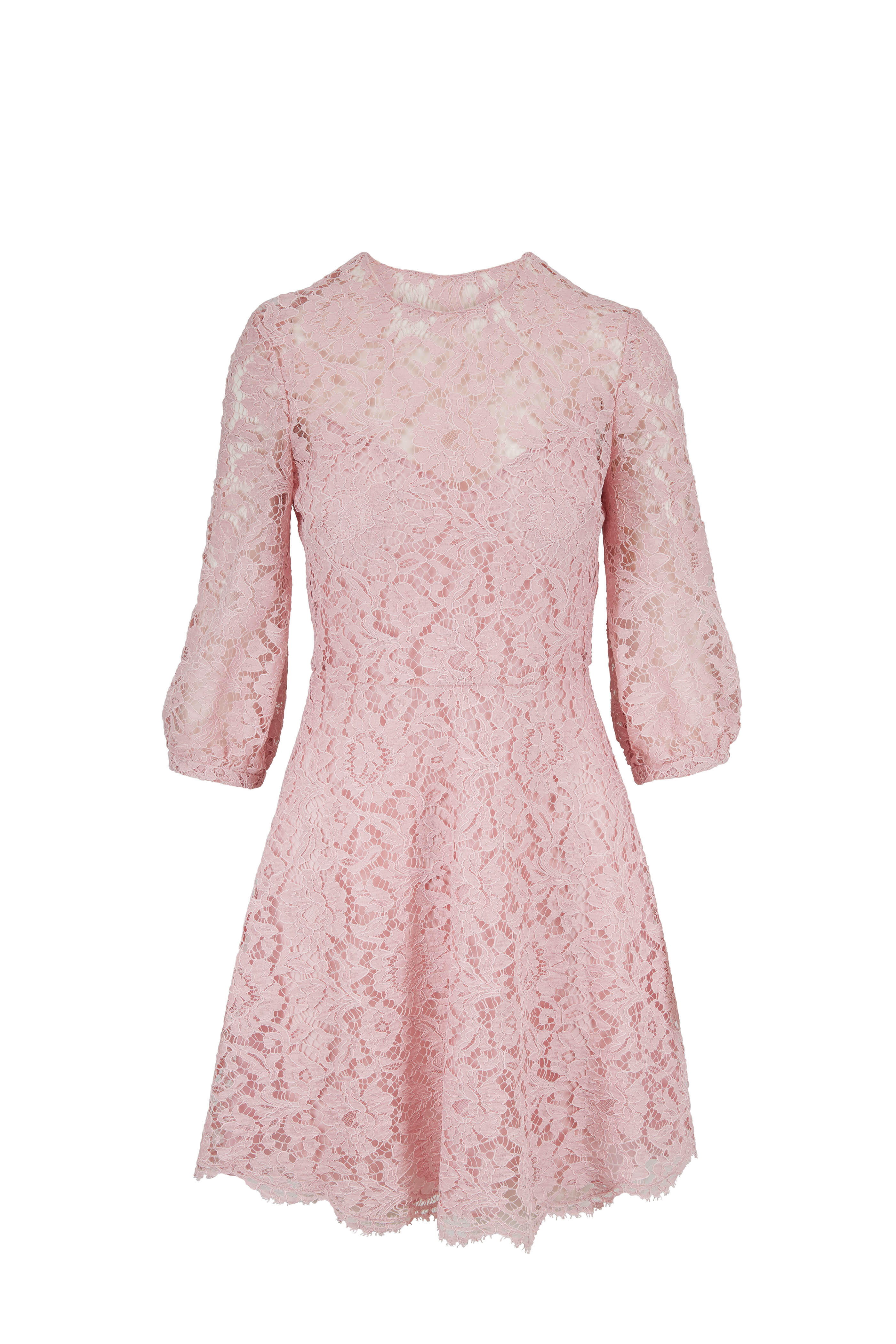 Blush Heavy Lace Three-Quarter Sleeve Dress