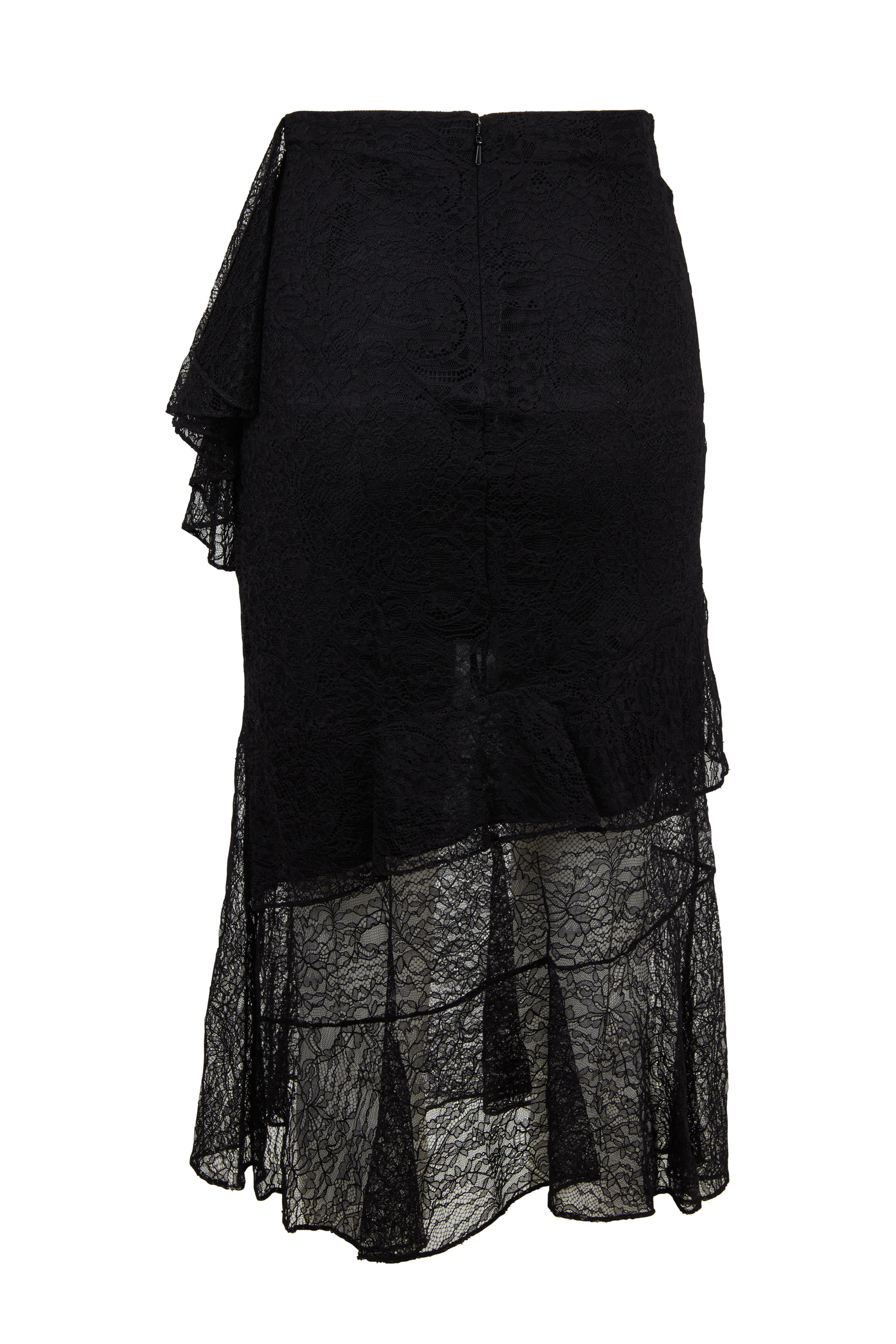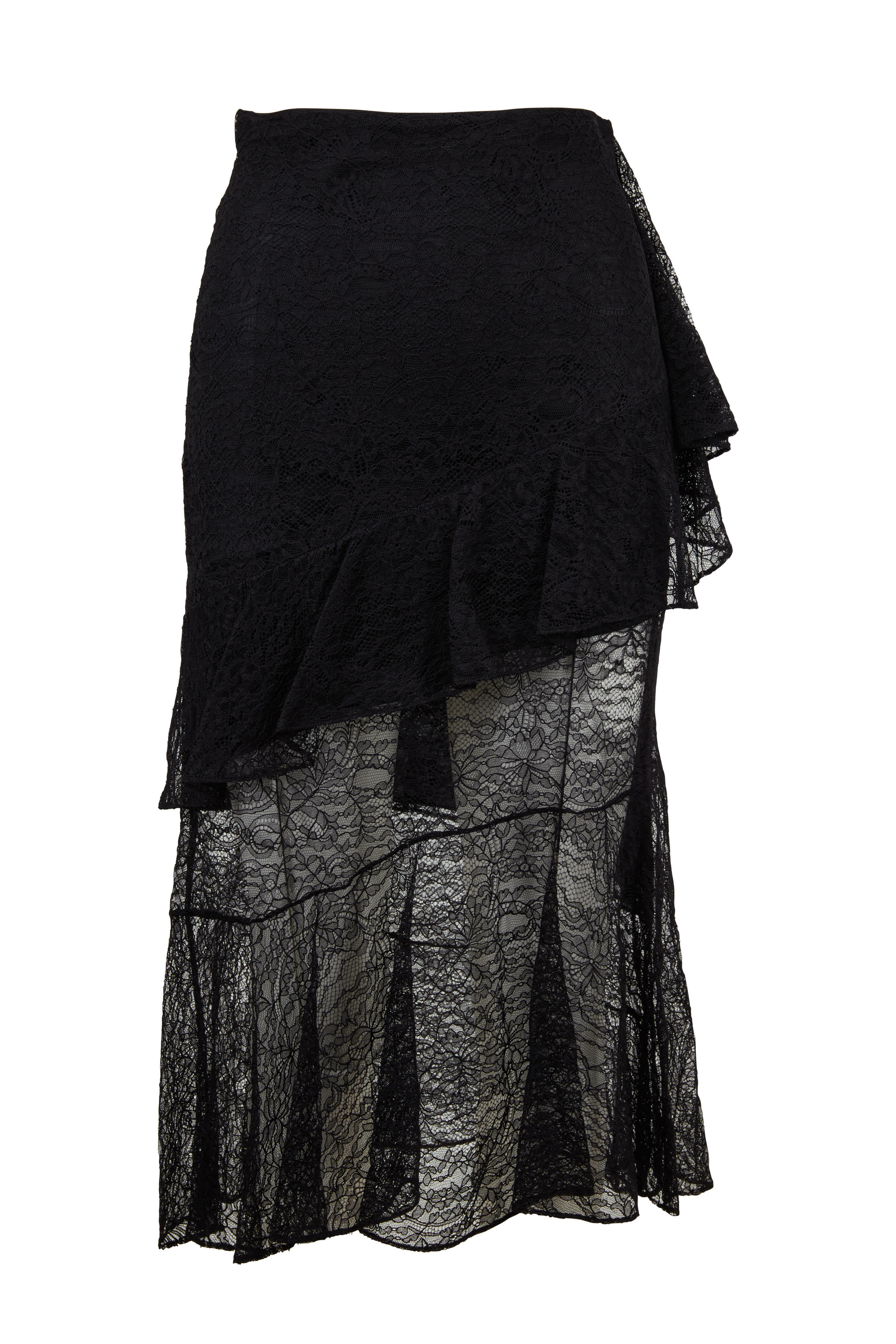 Black High-Waist Lace Midi Skirt