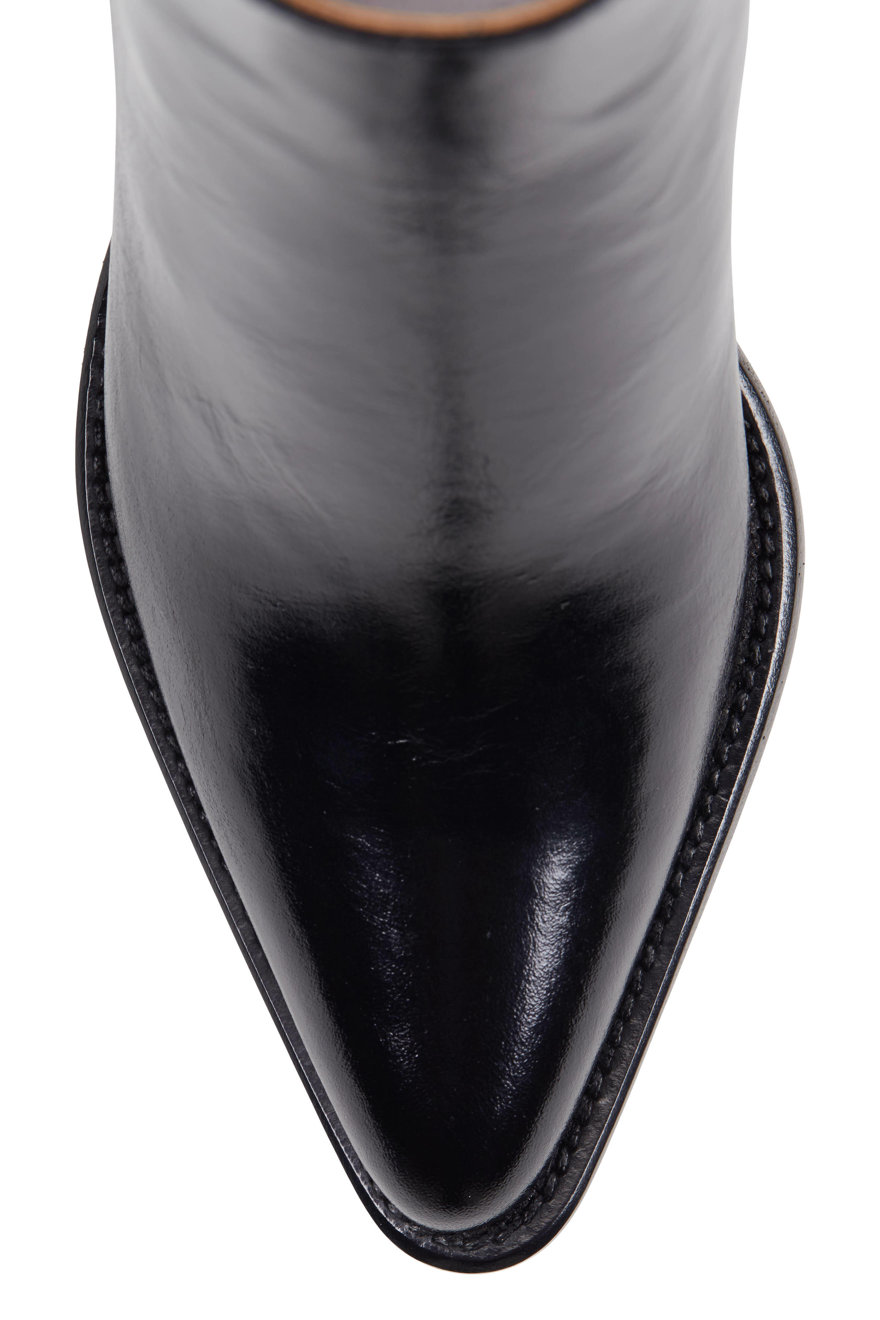 Calfskin upper. Pointed toe. Side zip closure. Stacked leather chunky heel. Leather lining and insole. Leather sole. Made in Italy. Heel measurement: 90mm.